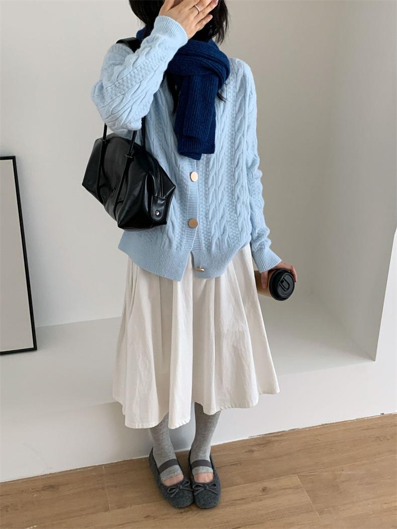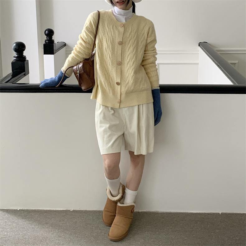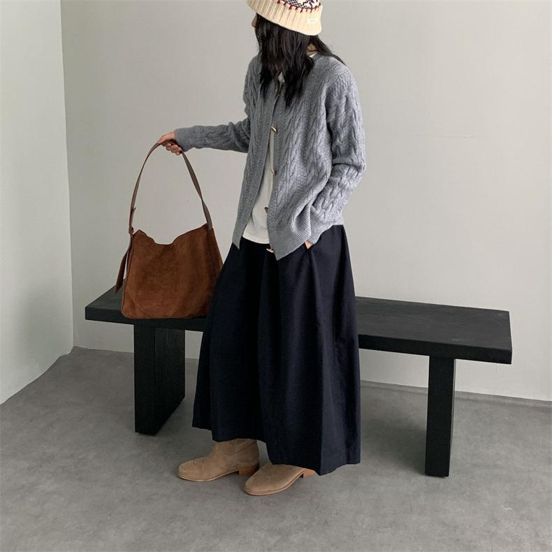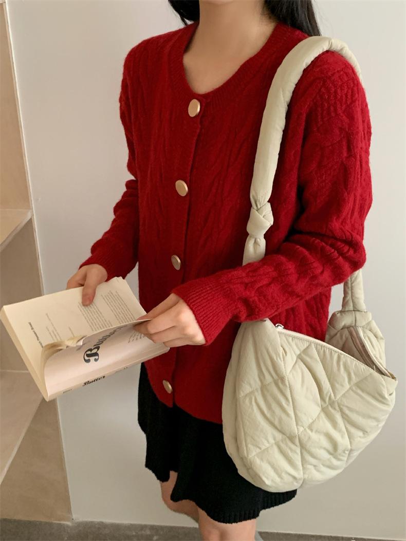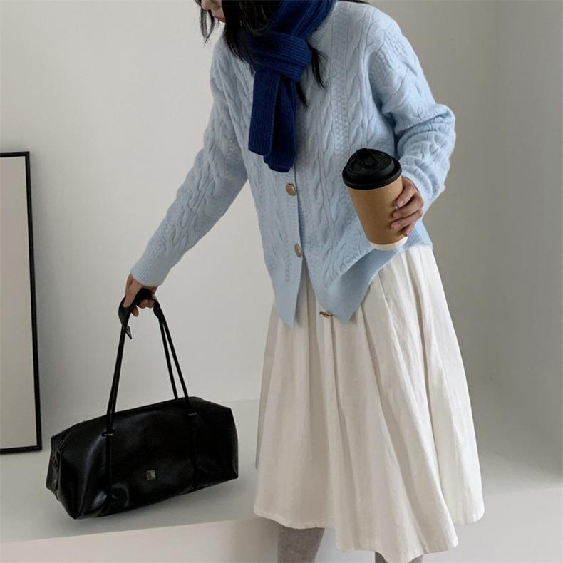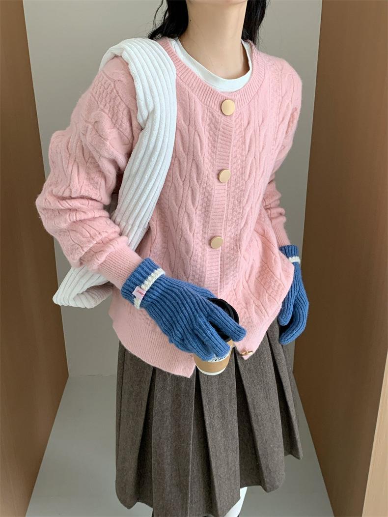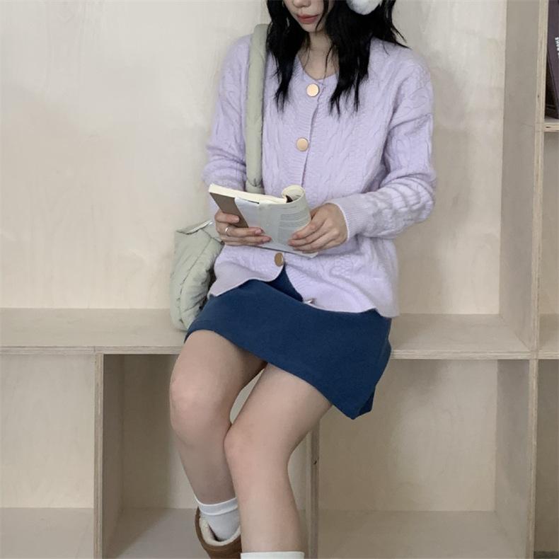 Nuevo Diseño para Mujer Cárdigan Tejido Chaqueta Suéter Holgado de Manga Larga con Torcido de Botonadura Sencilla Otoño e Invierno Top de Color Puro