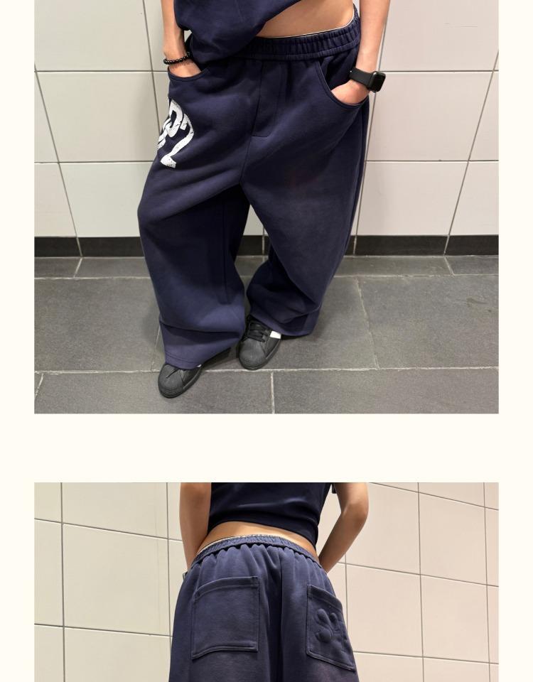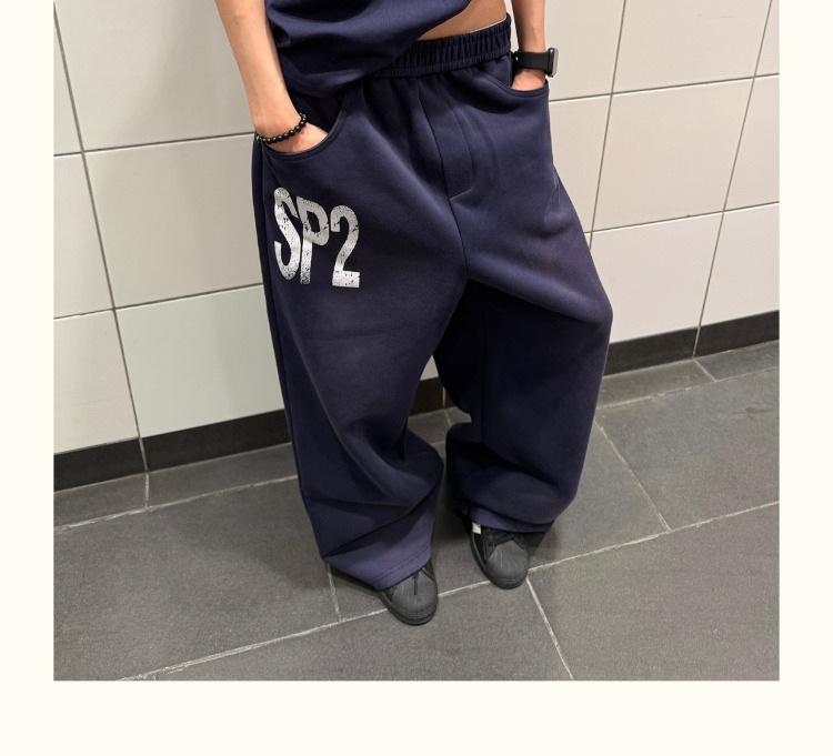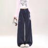 Pantalones de Sudor Casuales Holgados Americanos Retro para Mujer Verano Nuevo Rectos de Pierna Ancha Estampado de Letras Largo hasta el Piso