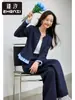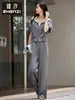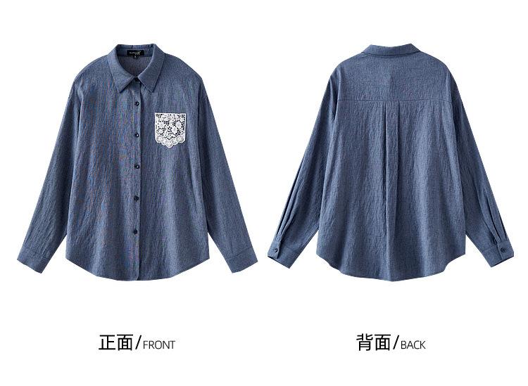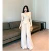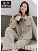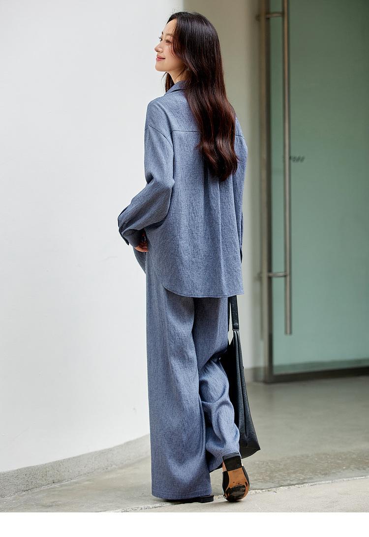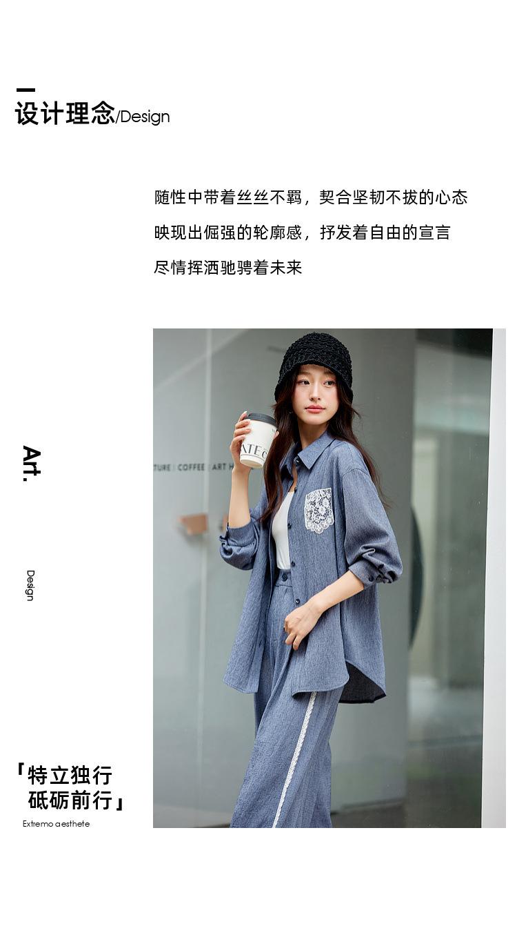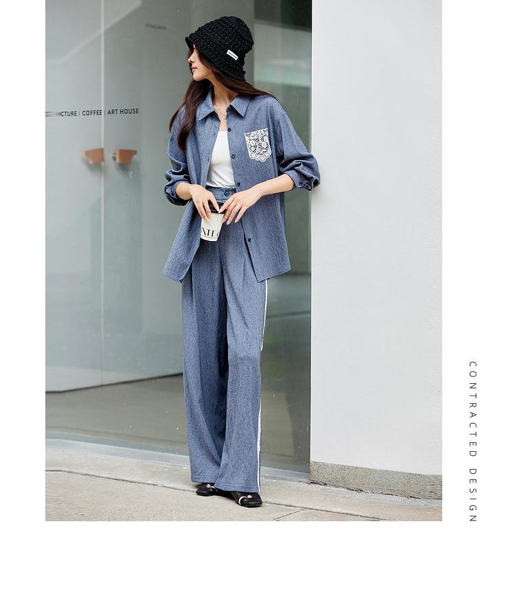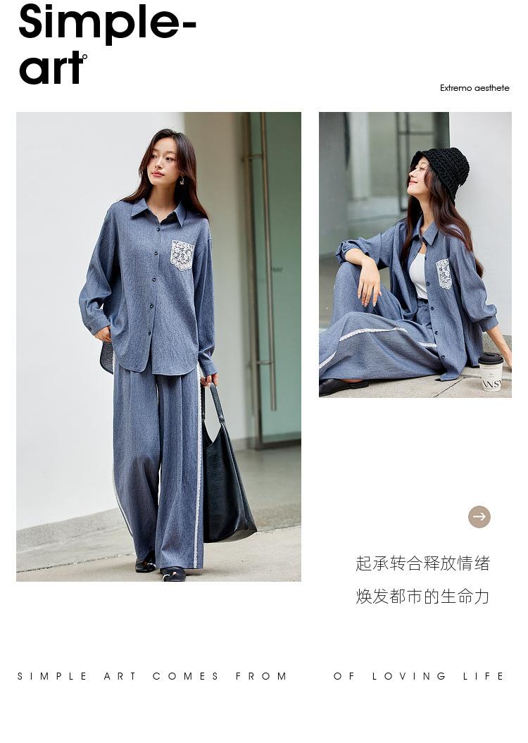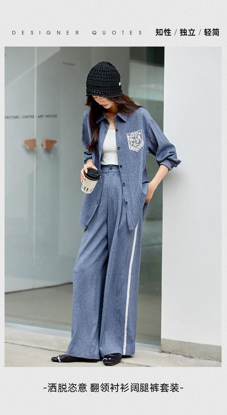 Zhenxi Nuevo Conjunto de Camisa de Encaje con Bolsillo y Cuello Vuelto y Pantalón Largo para Mujer, Conjunto Casual Completo de Dos Piezas SQ935