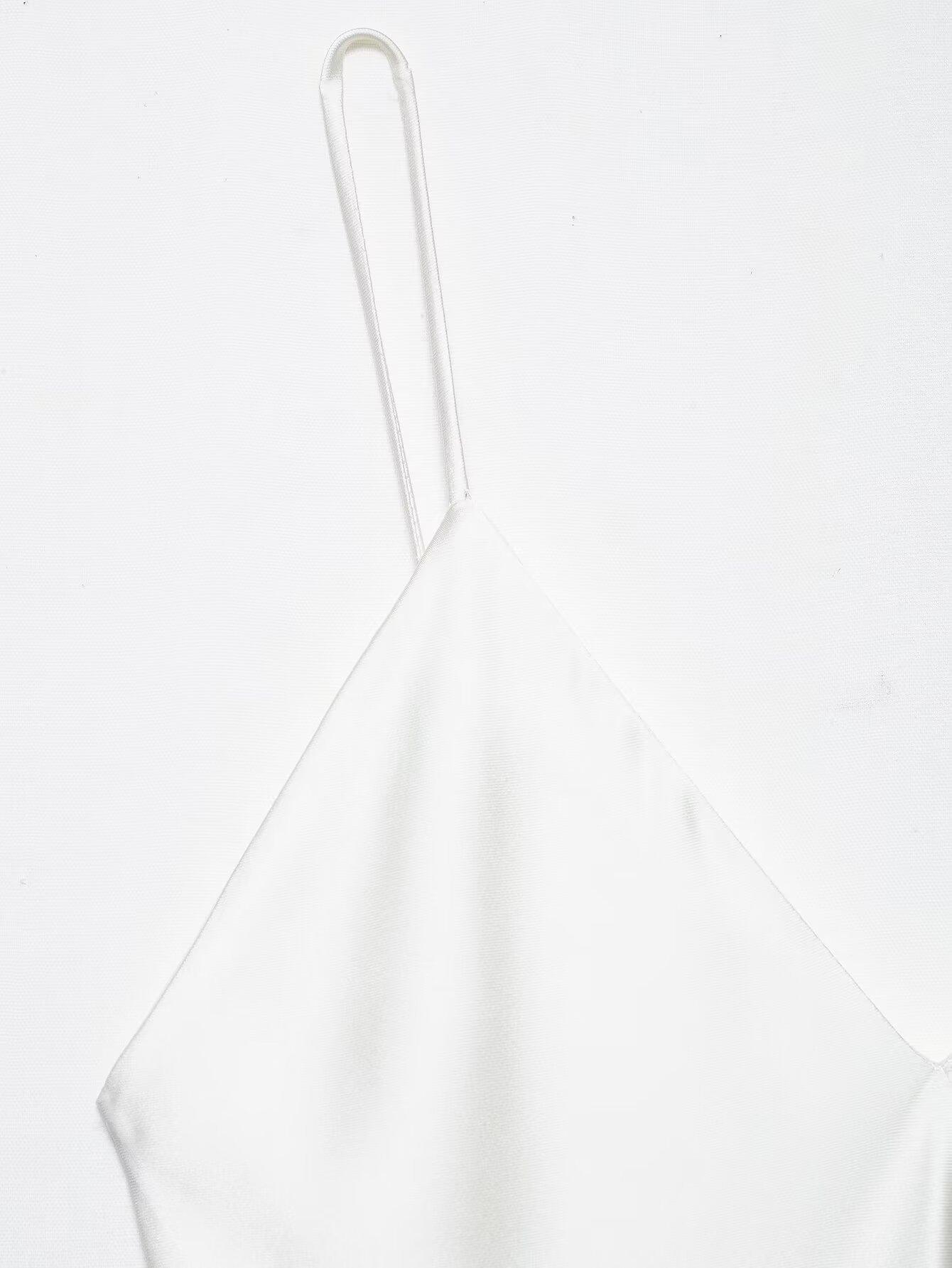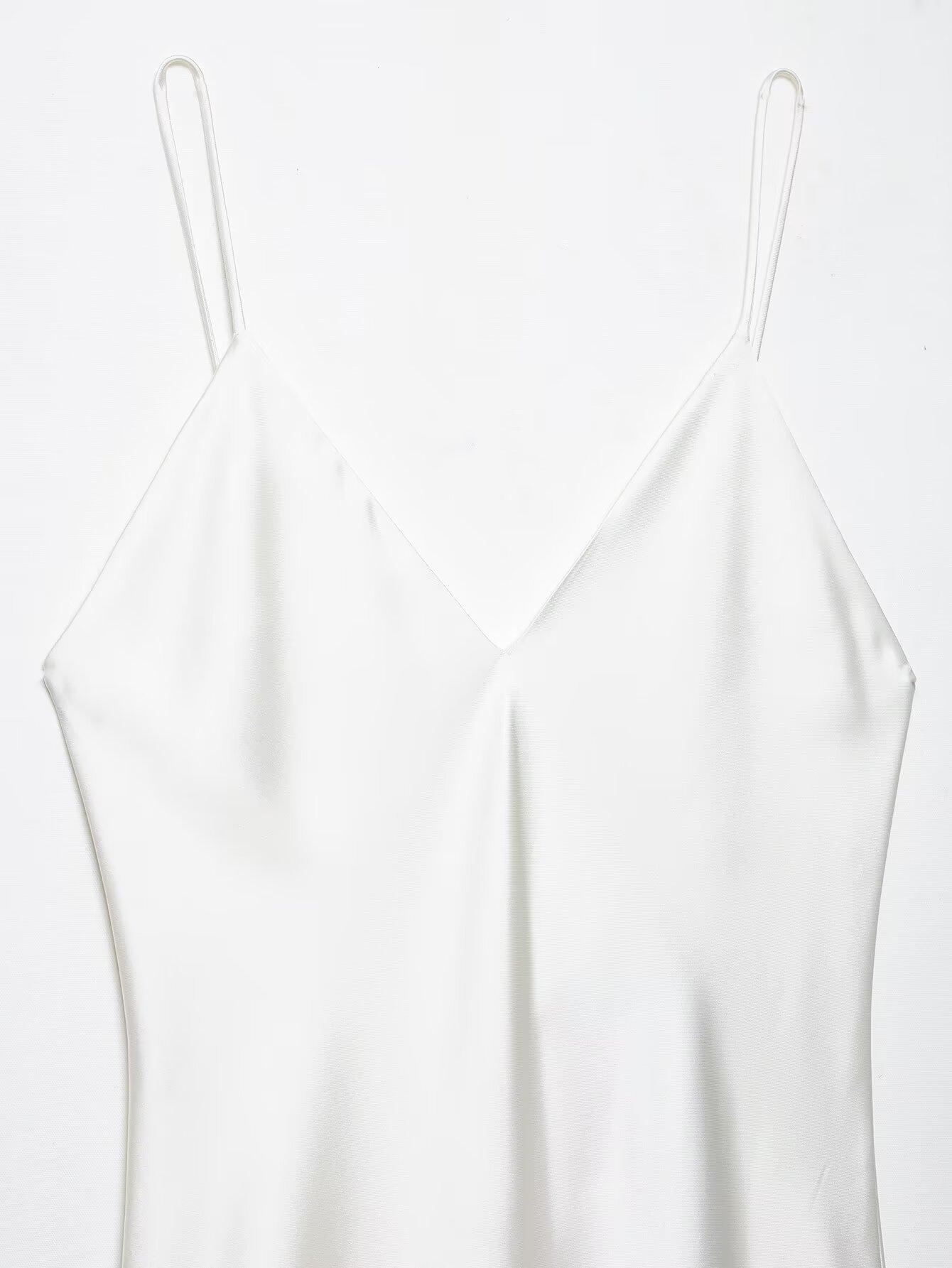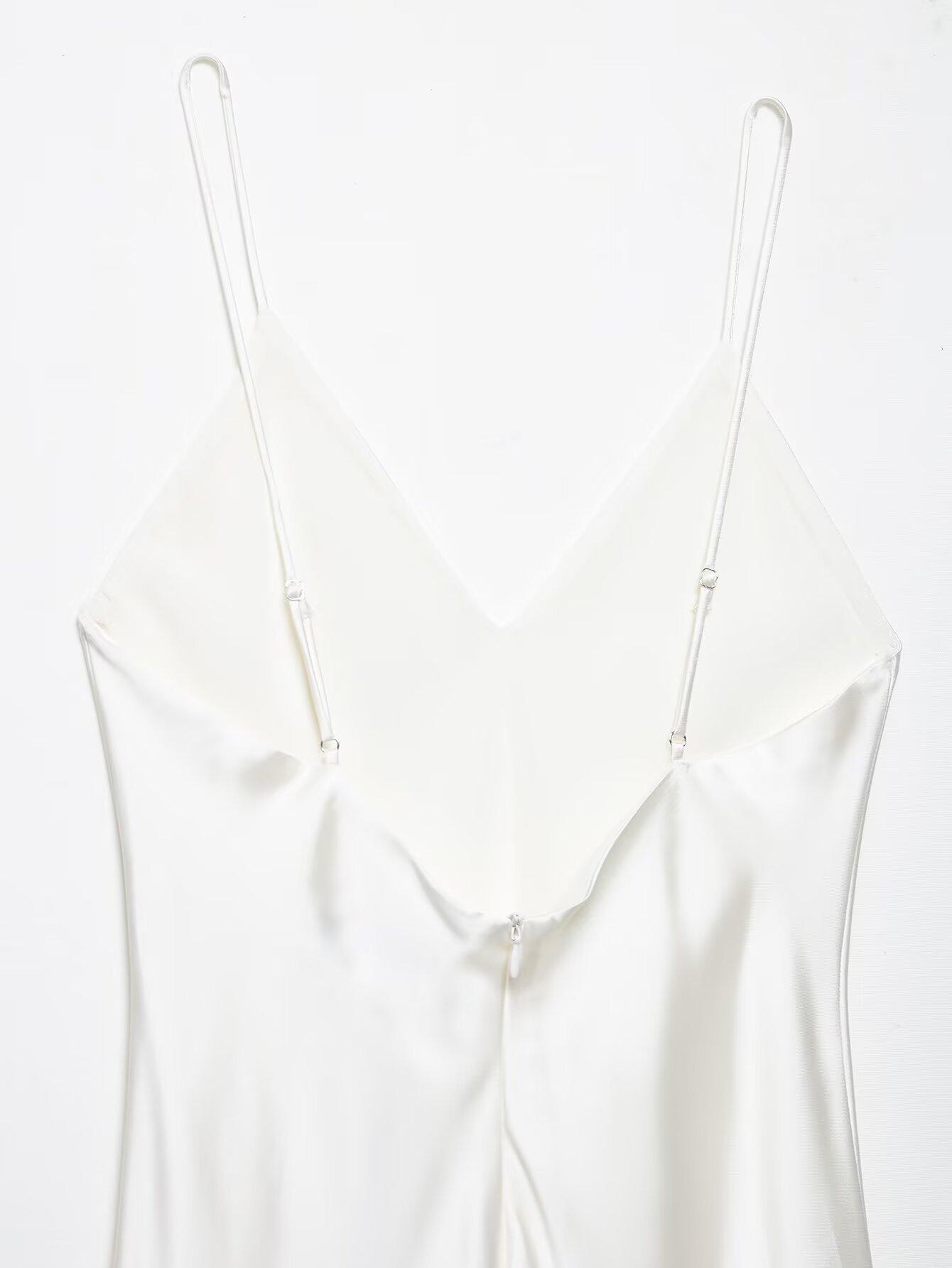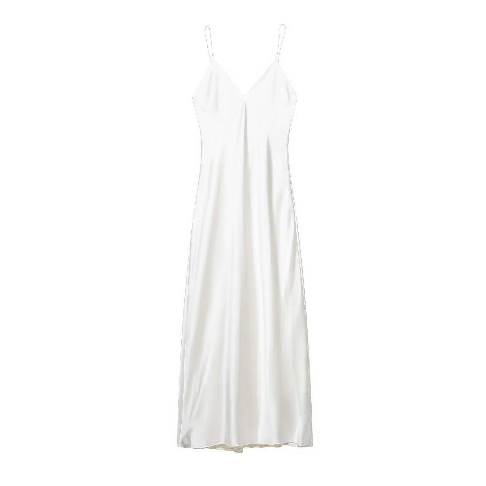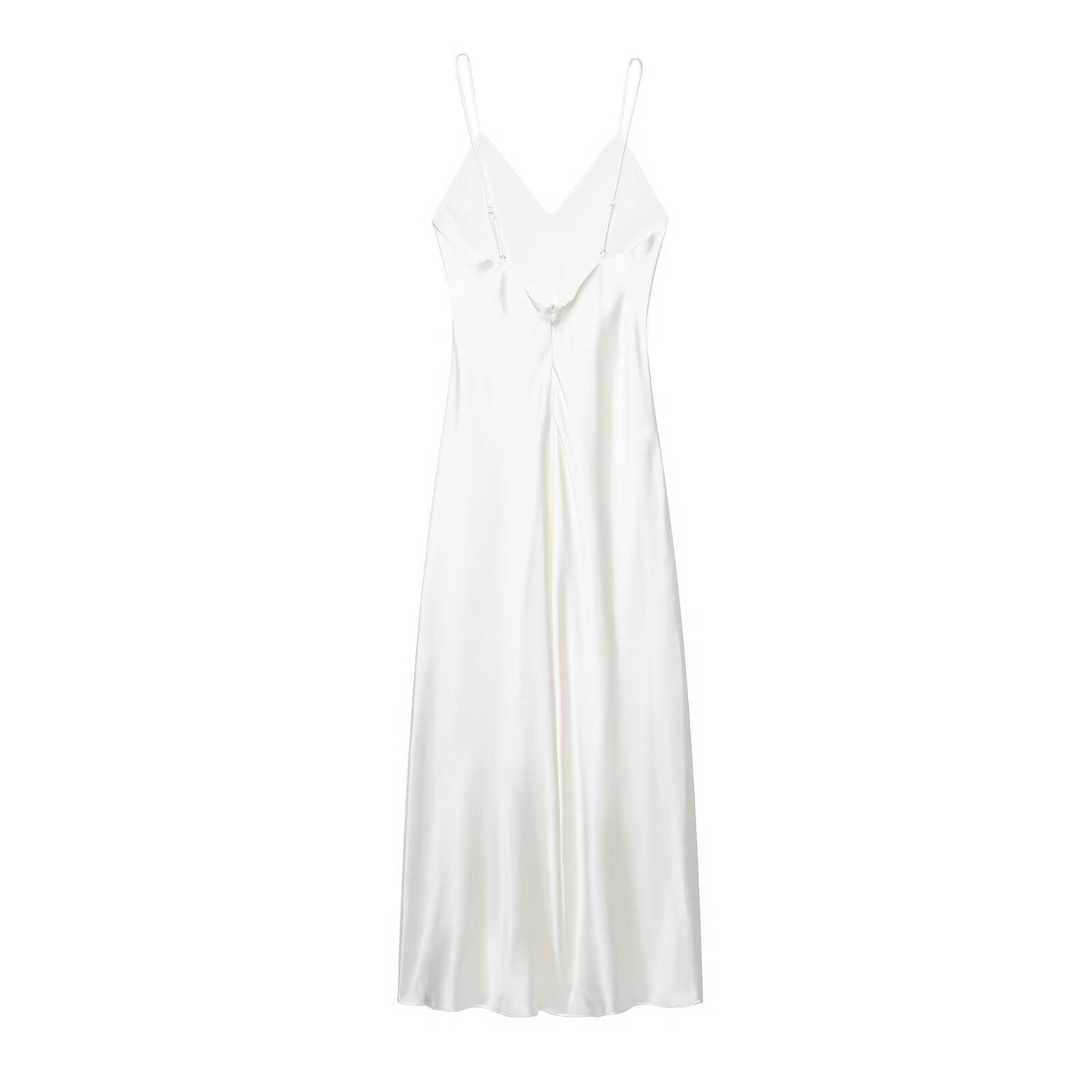 Venta al por mayor de exportación transfronteriza Verano Nuevo Estilo Europeo y Americano Suéter de Mujer Cuello en V Sin Mangas Vestido Midi de Satén de Seda