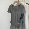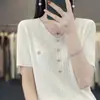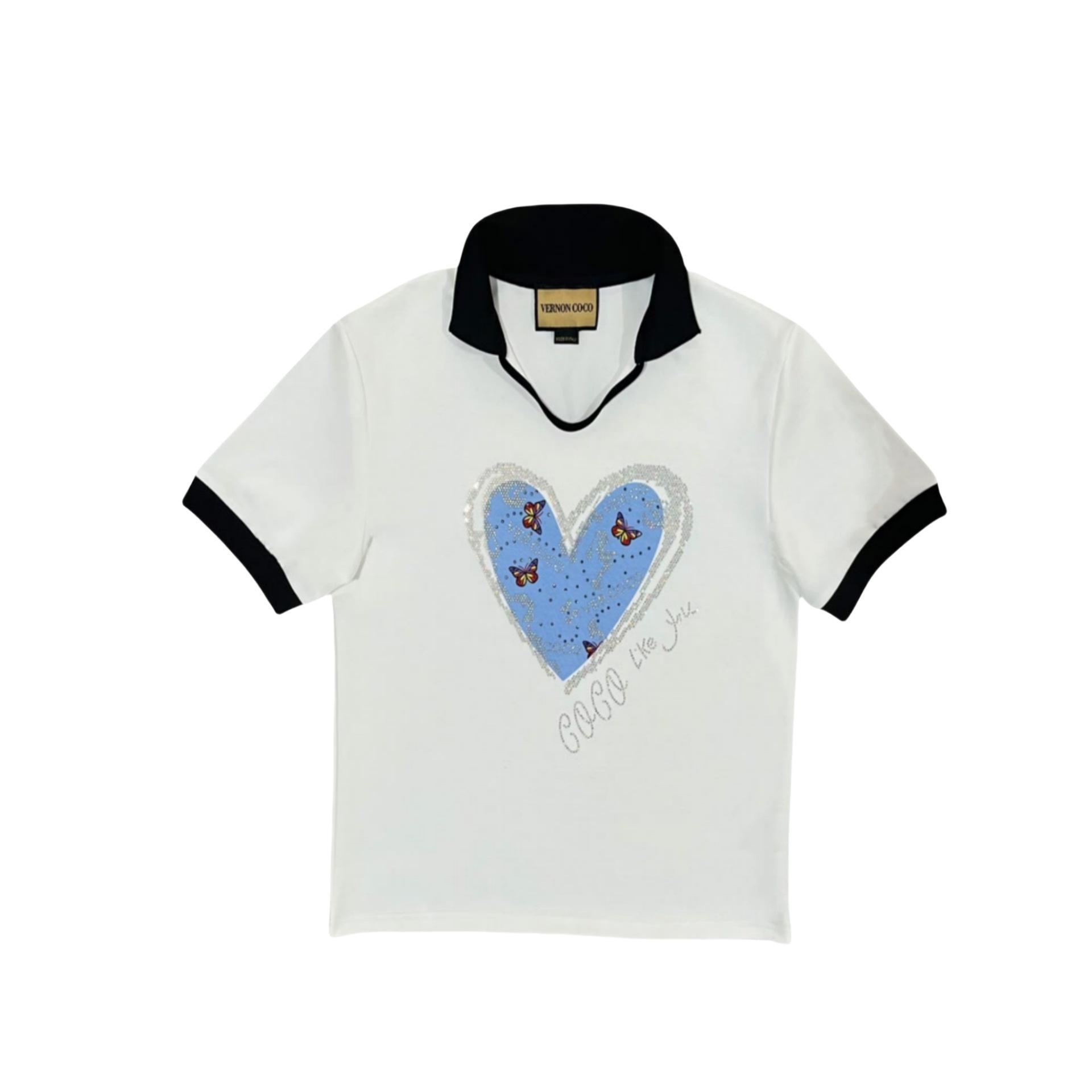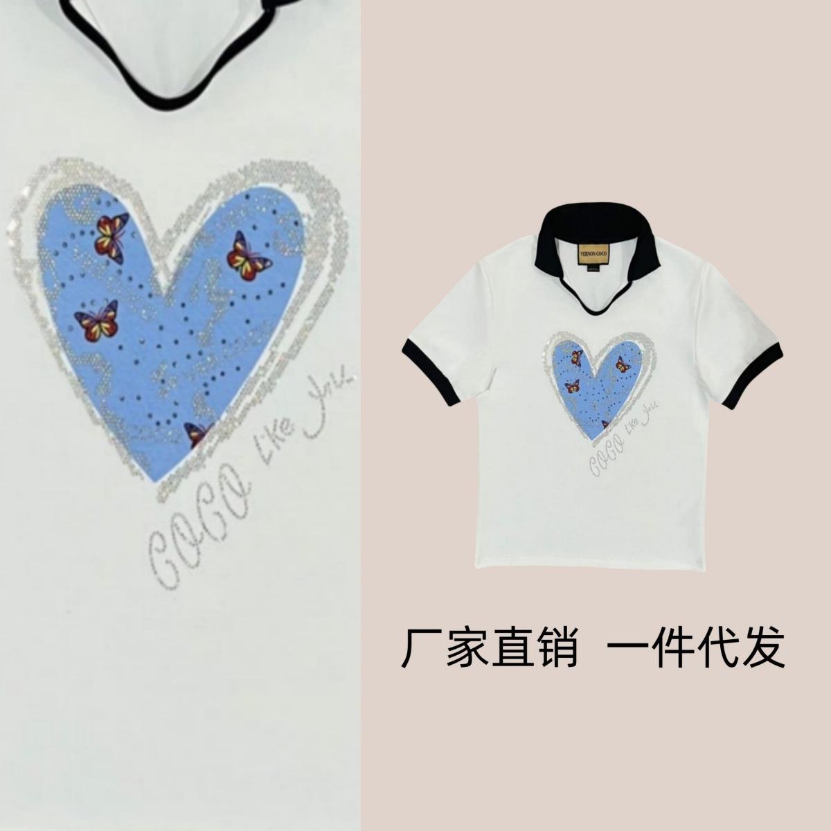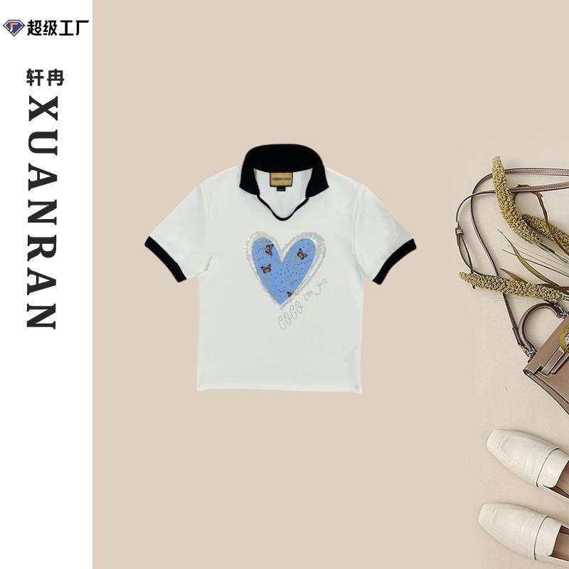 Serie Primavera y Verano Cuello en V Elegante Mariposa Corazón Manga Corta Camiseta Sentido del Diseño Nicho Tops Diseño Versátil para el Día a Día Ropa de Mujer