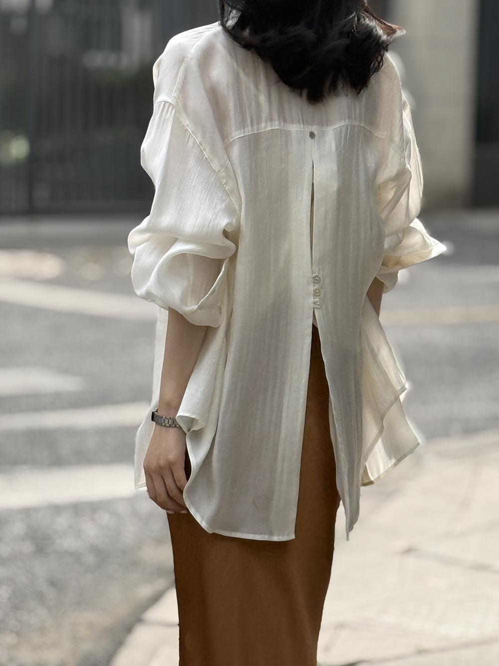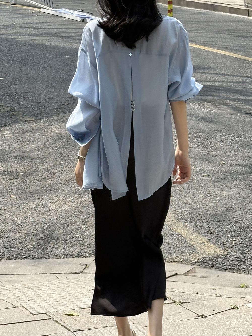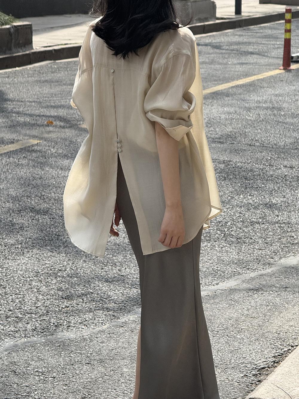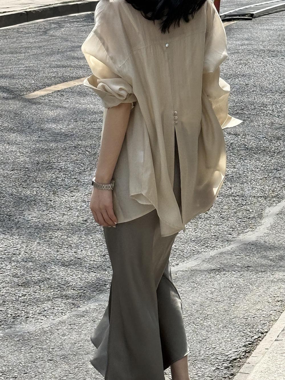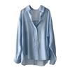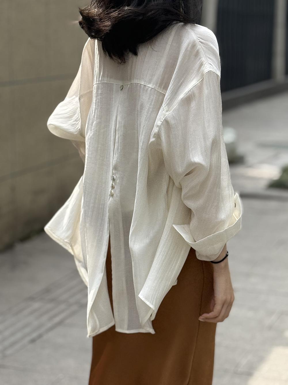 Camisa Tencel con Abertura Trasera para Mujer Verano Diseño Delgado Nicho Blusa Exterior Top Holgado Chaqueta Protección Solar