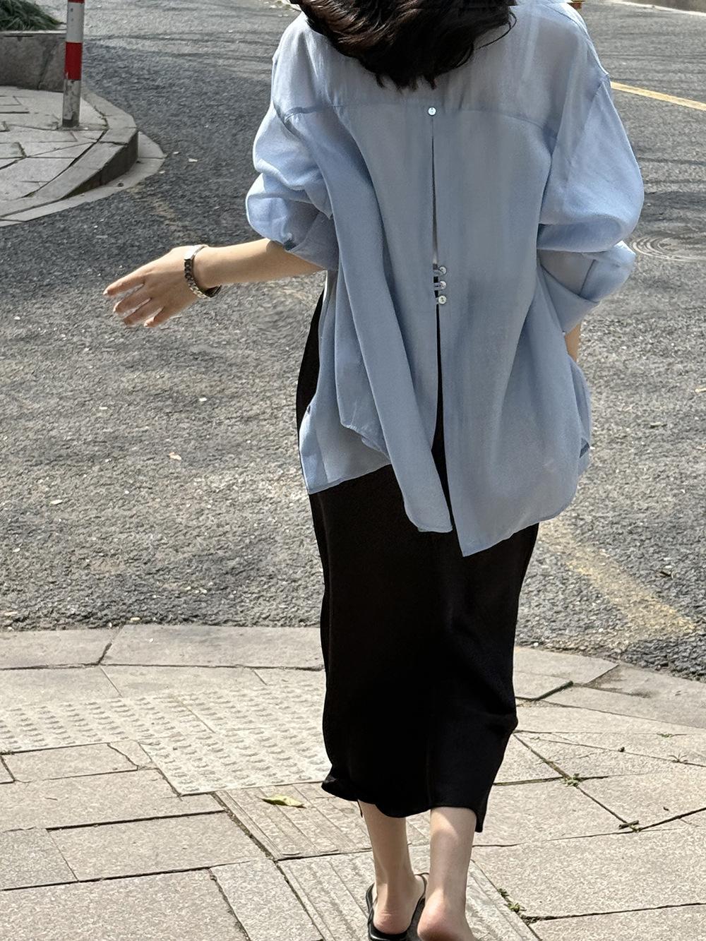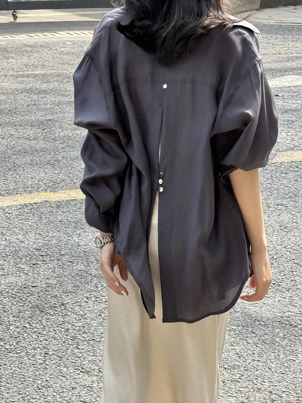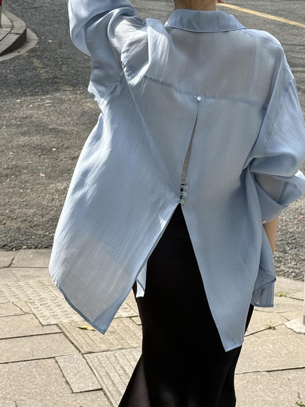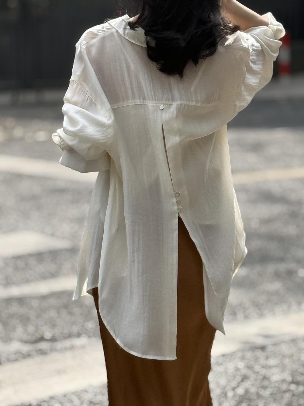 Camisa Tencel con Abertura Trasera para Mujer Verano Diseño Delgado Nicho Blusa Exterior Top Holgado Chaqueta Protección Solar