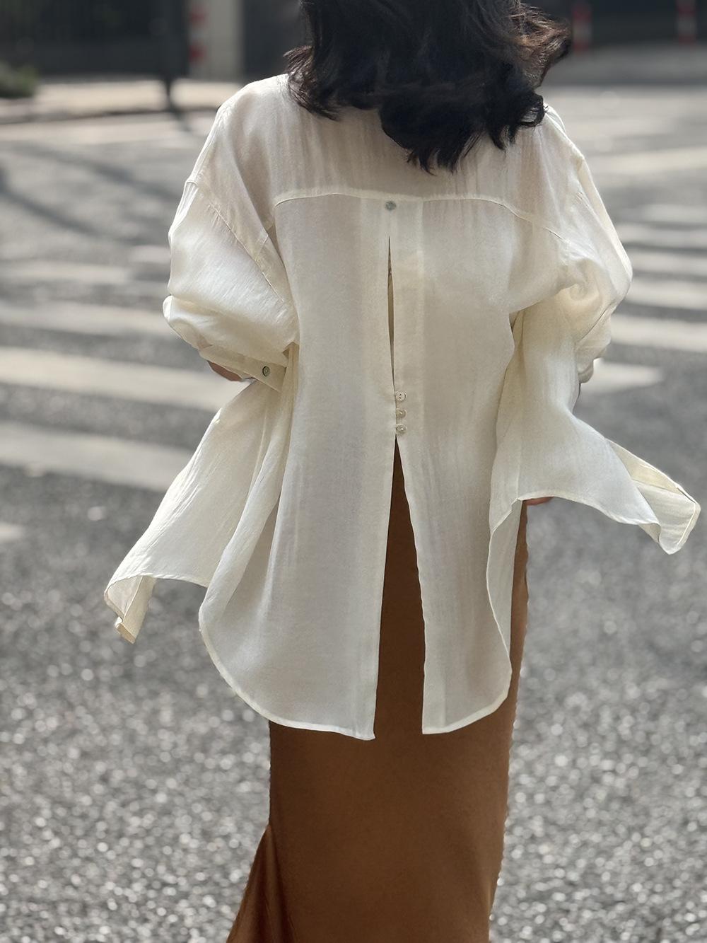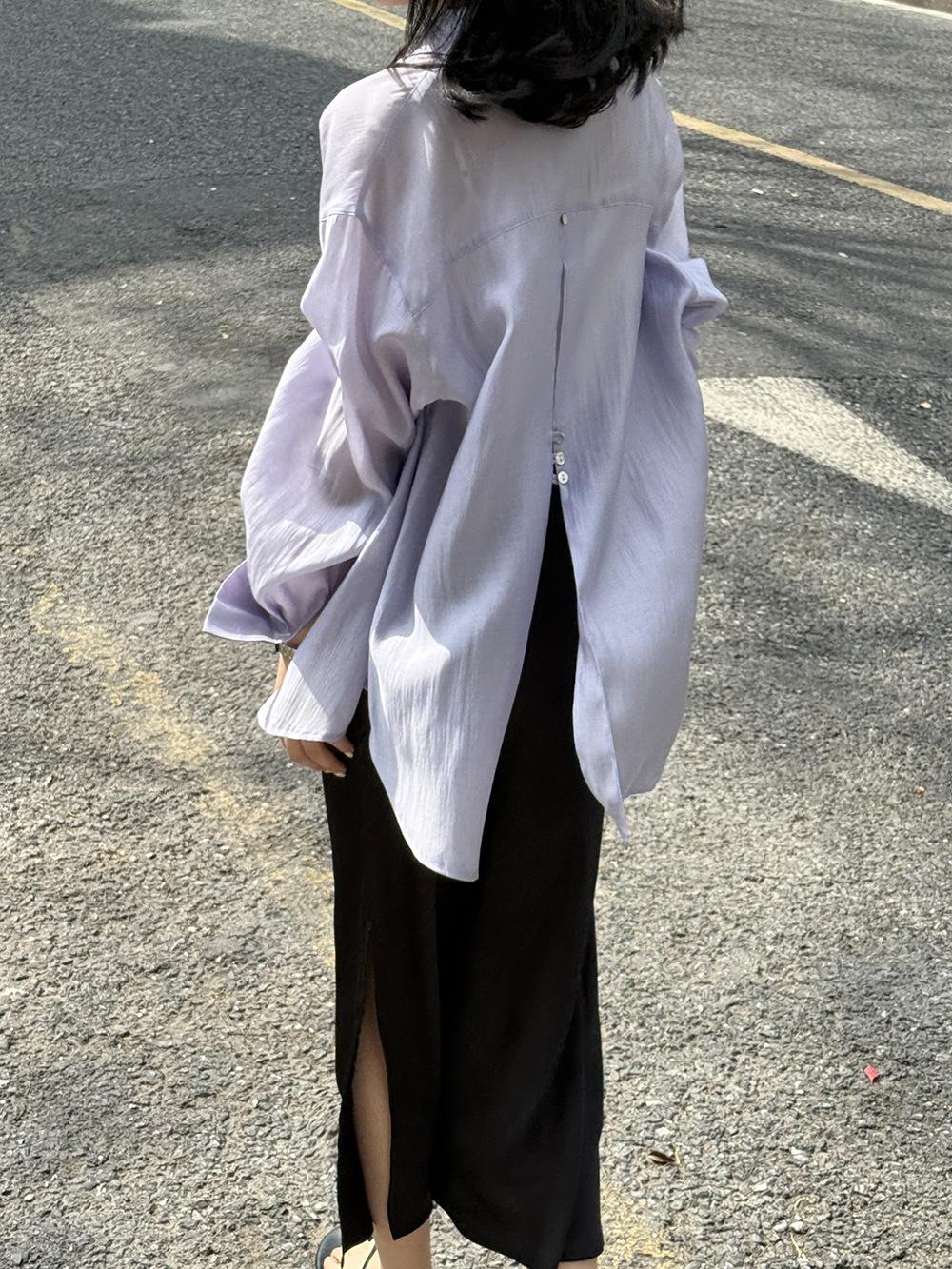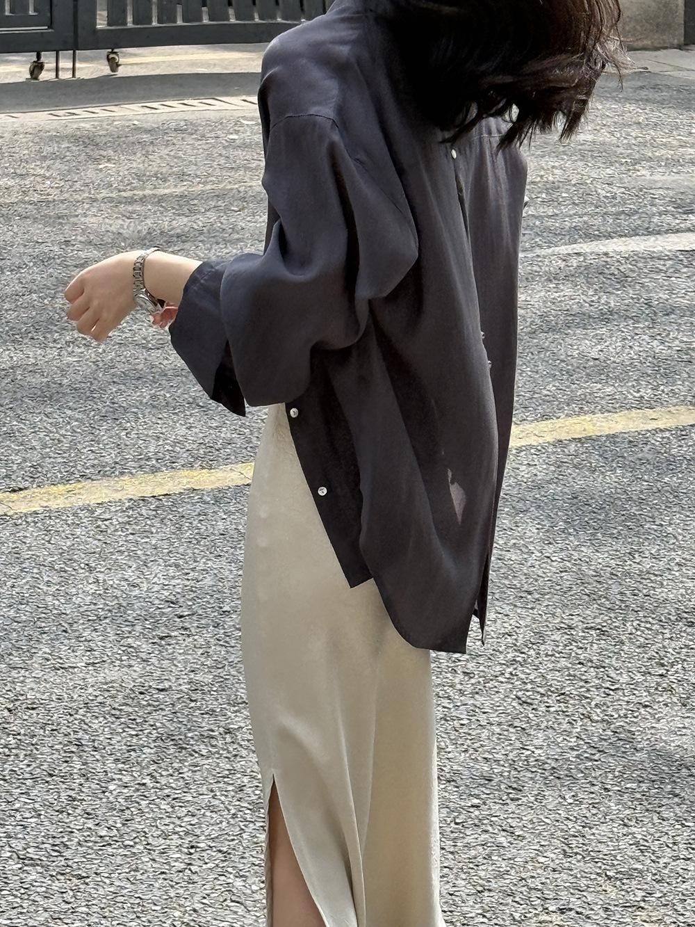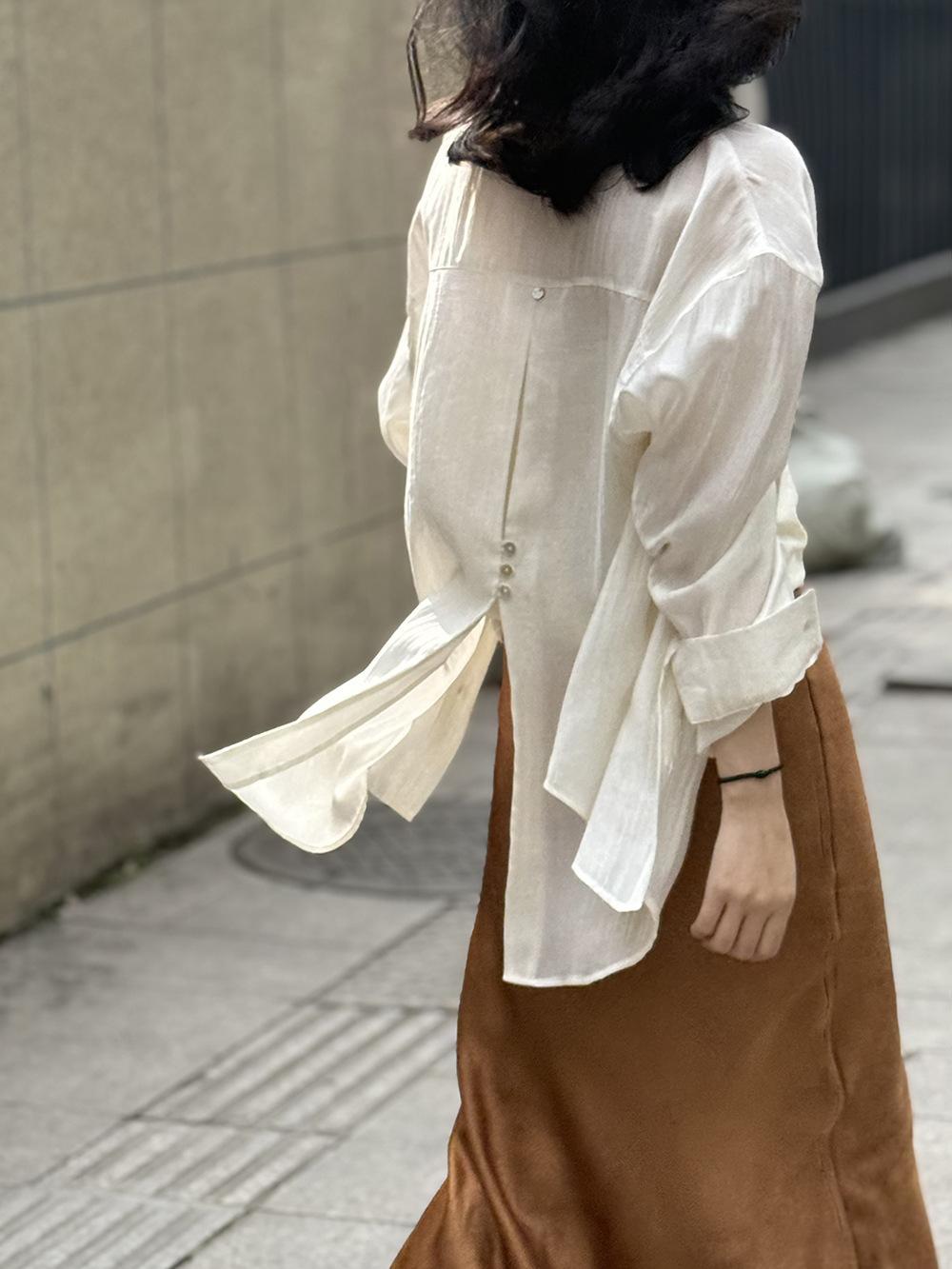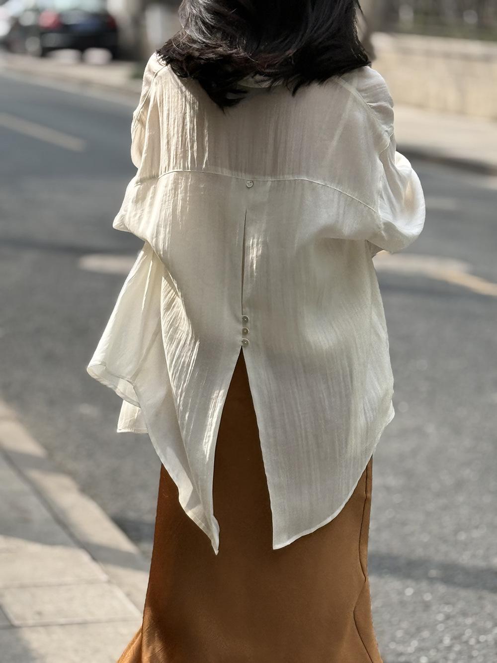 Camisa Tencel con Abertura Trasera para Mujer Verano Diseño Delgado Nicho Blusa Exterior Top Holgado Chaqueta Protección Solar