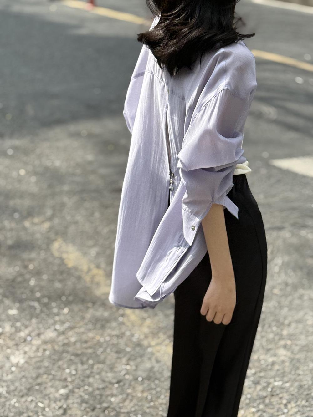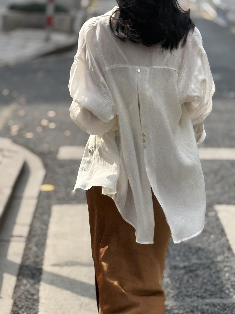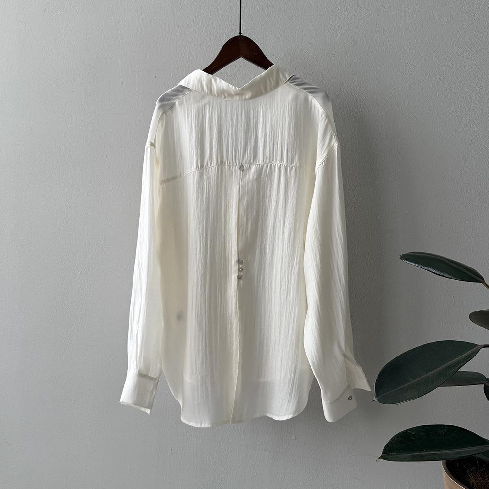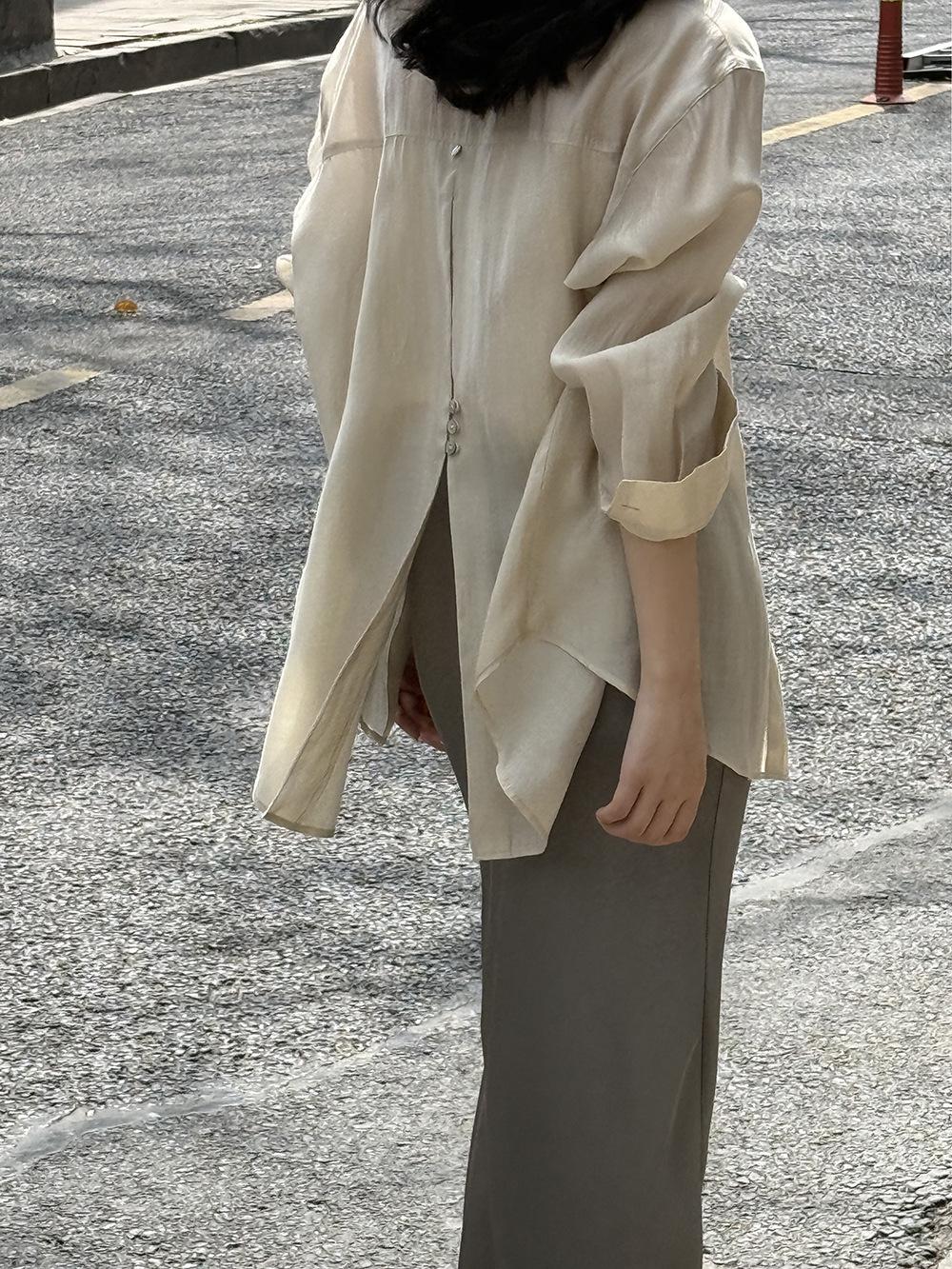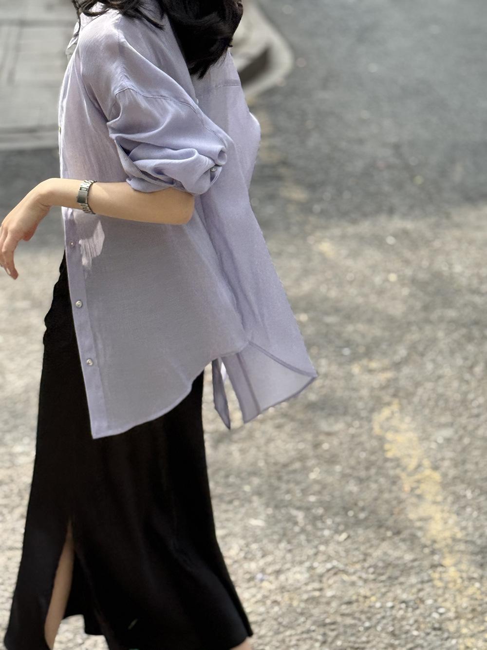 Camisa Tencel con Abertura Trasera para Mujer Verano Diseño Delgado Nicho Blusa Exterior Top Holgado Chaqueta Protección Solar