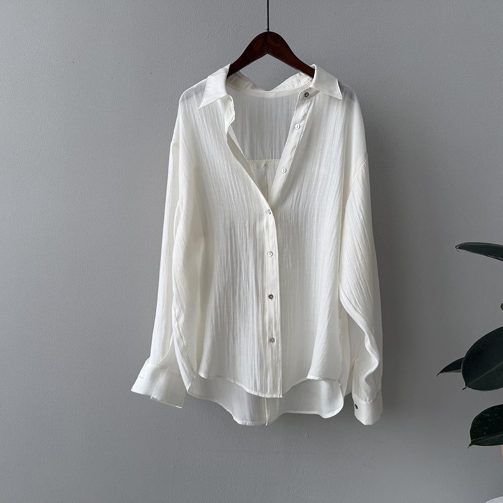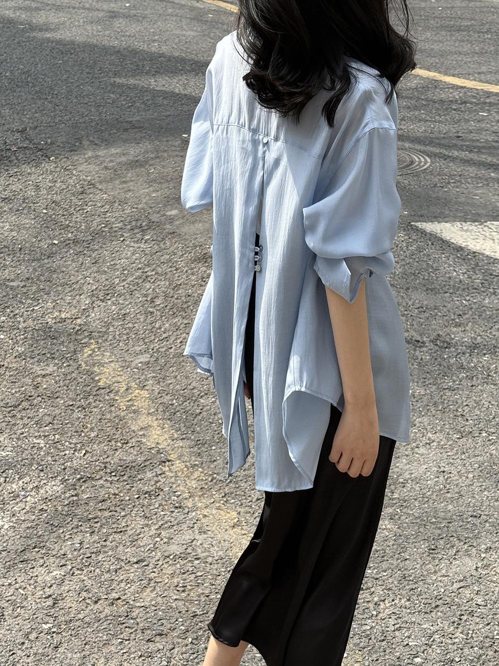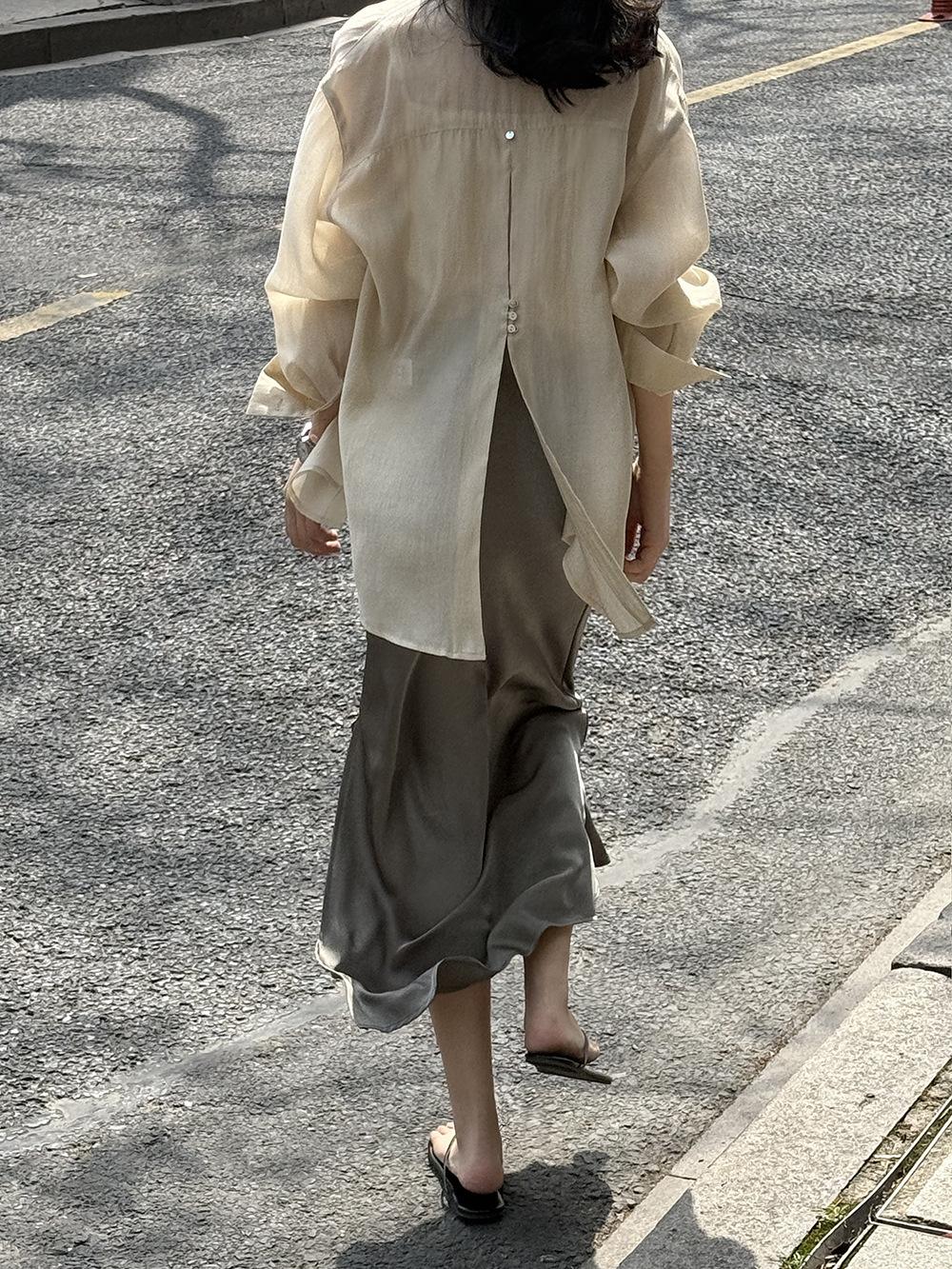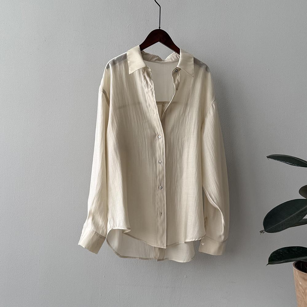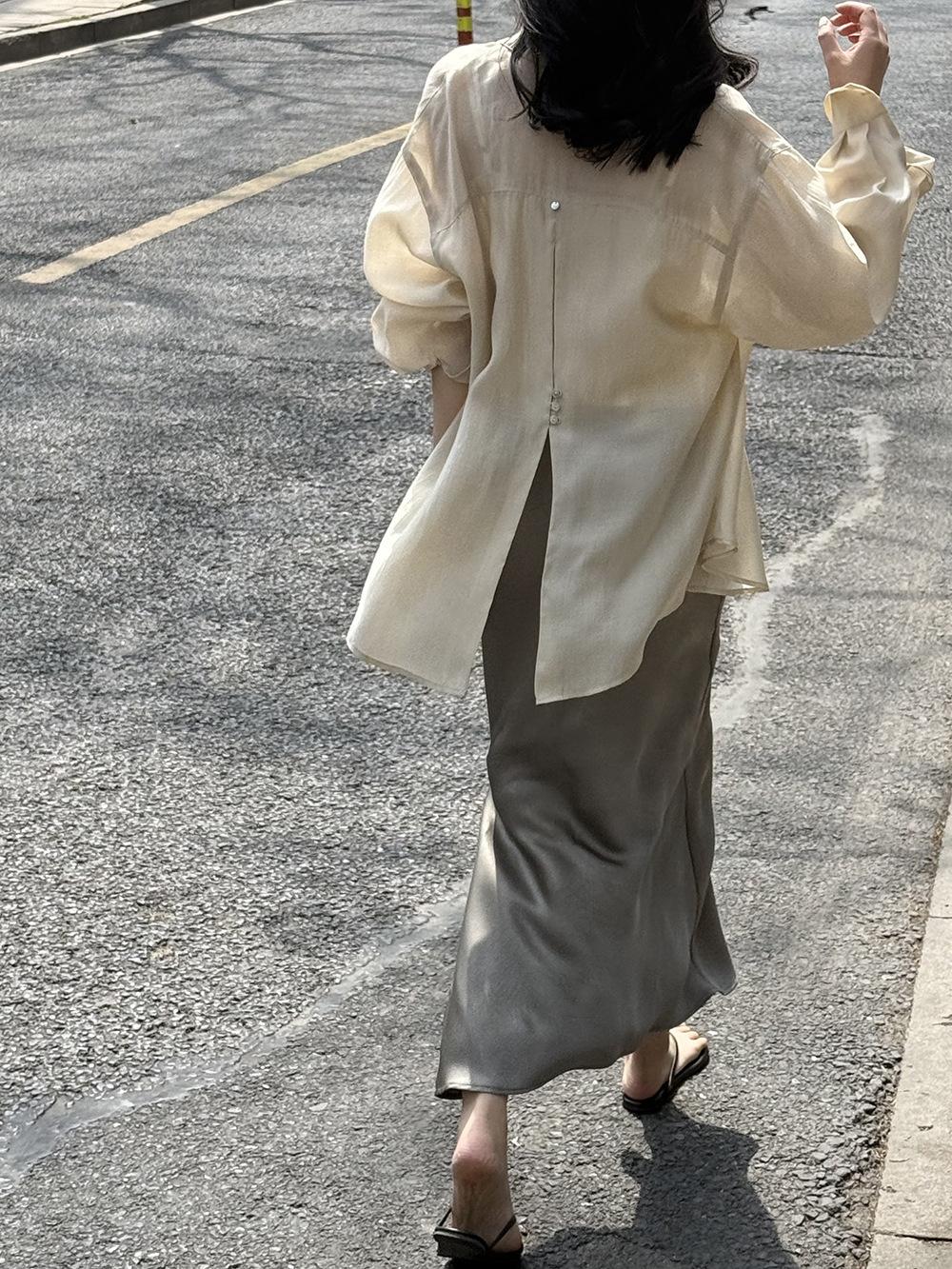 Camisa Tencel con Abertura Trasera para Mujer Verano Diseño Delgado Nicho Blusa Exterior Top Holgado Chaqueta Protección Solar