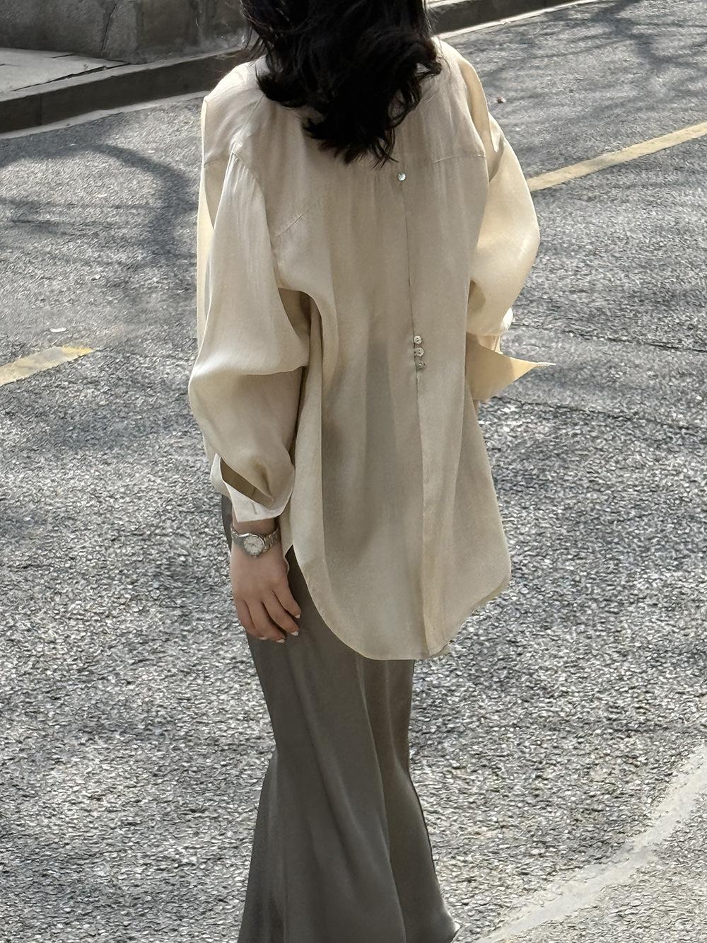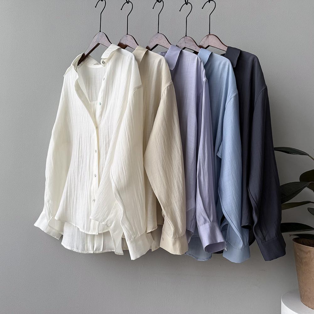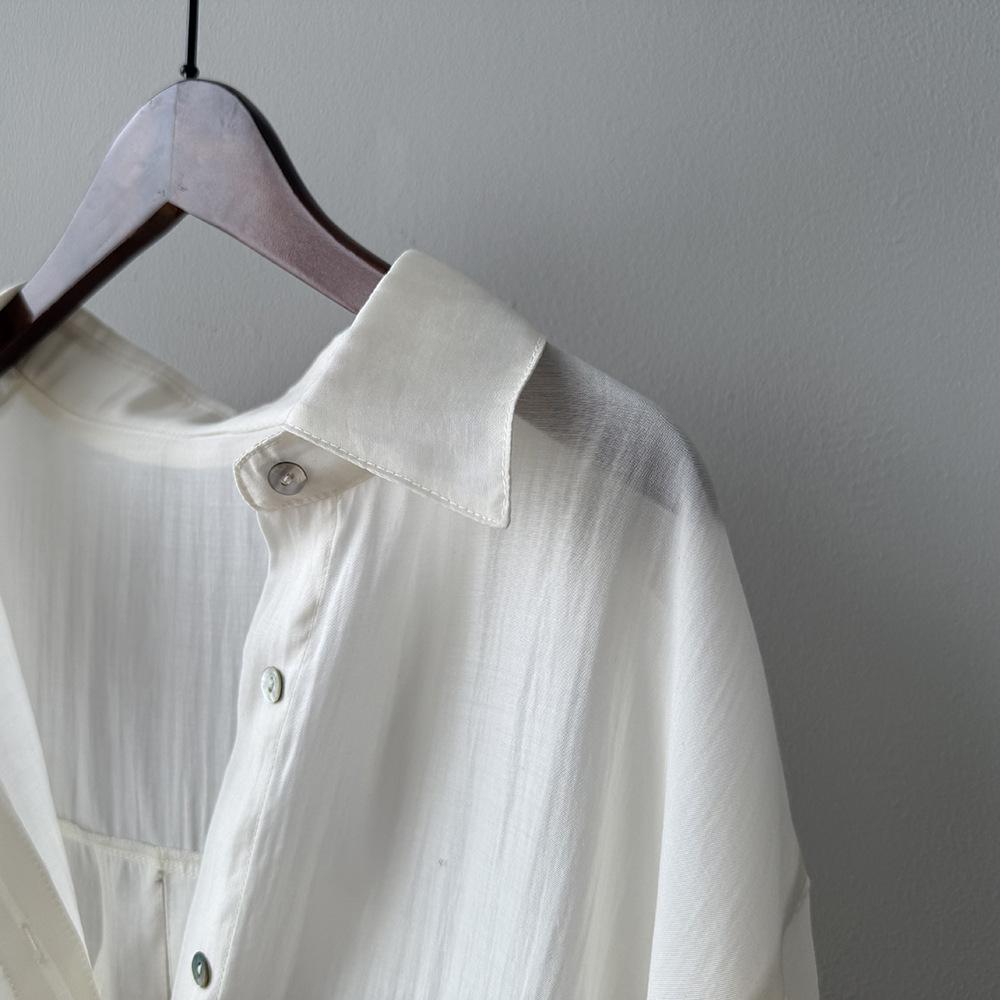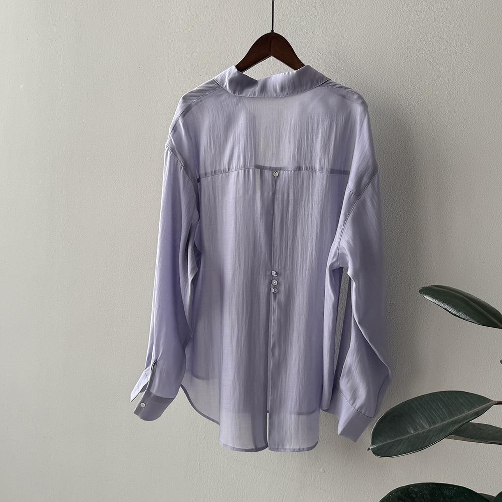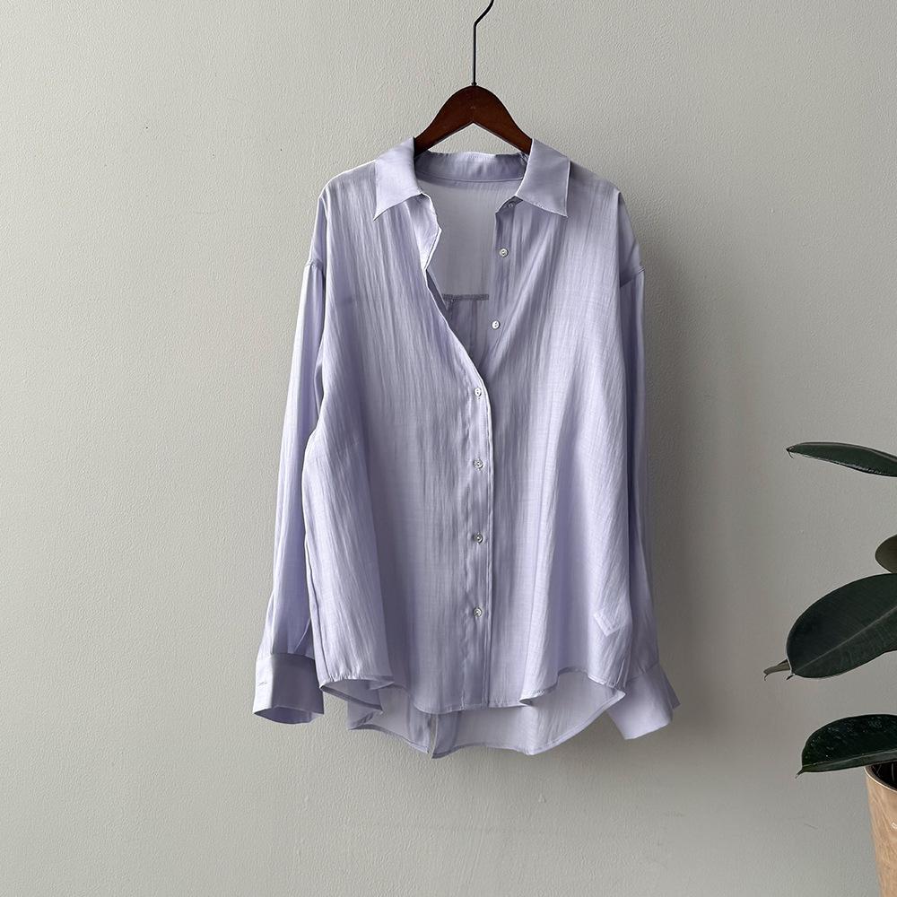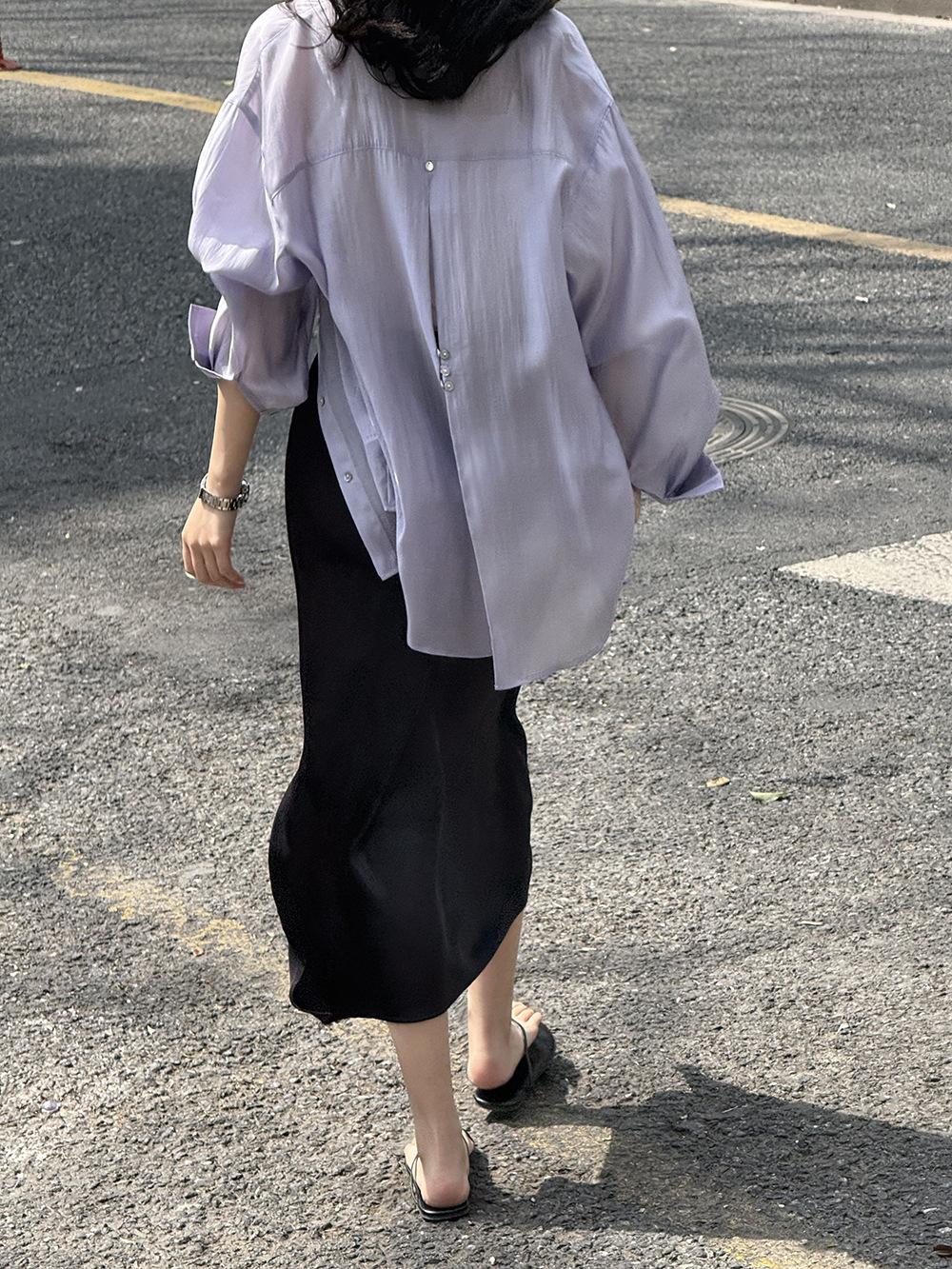 Camisa Tencel con Abertura Trasera para Mujer Verano Diseño Delgado Nicho Blusa Exterior Top Holgado Chaqueta Protección Solar