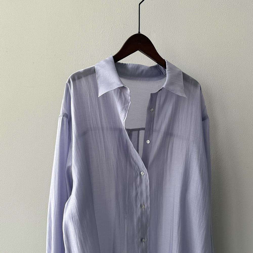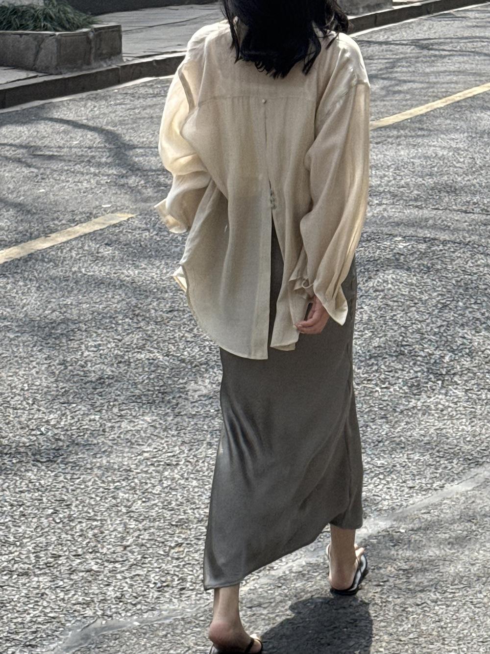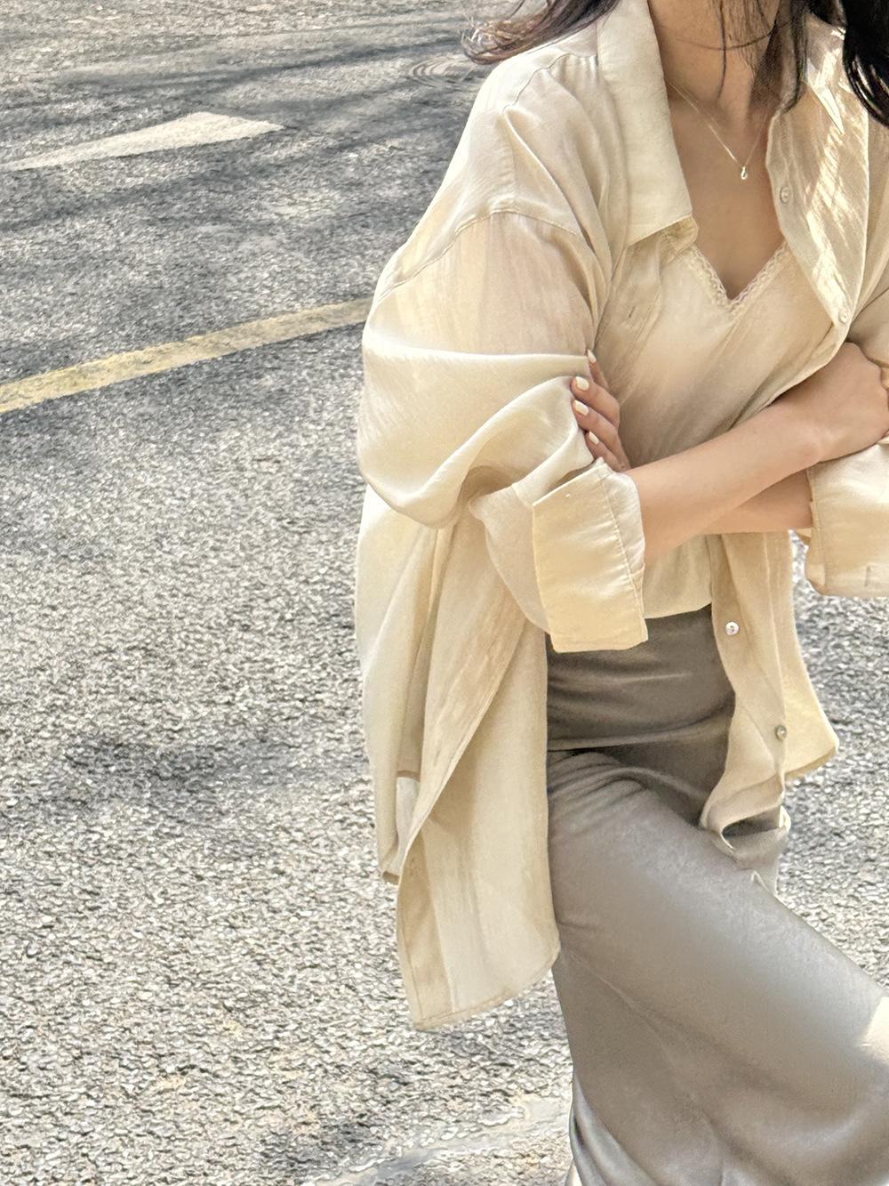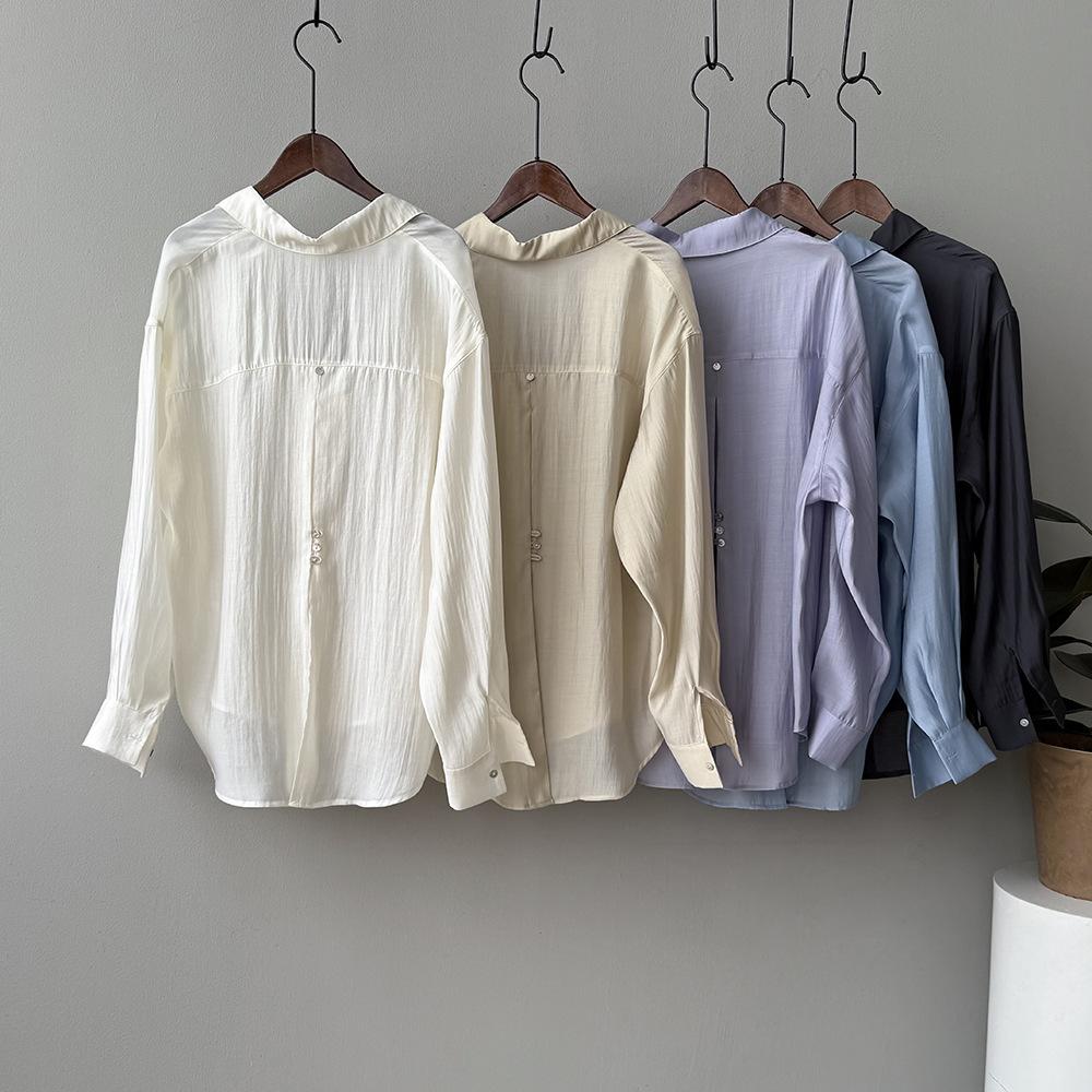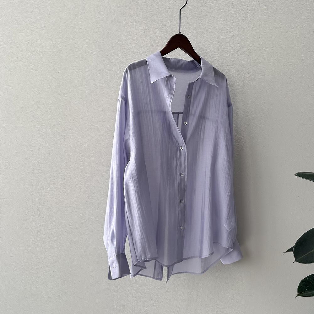Camisa Tencel con Abertura Trasera para Mujer Verano Diseño Delgado Nicho Blusa Exterior Top Holgado Chaqueta Protección Solar