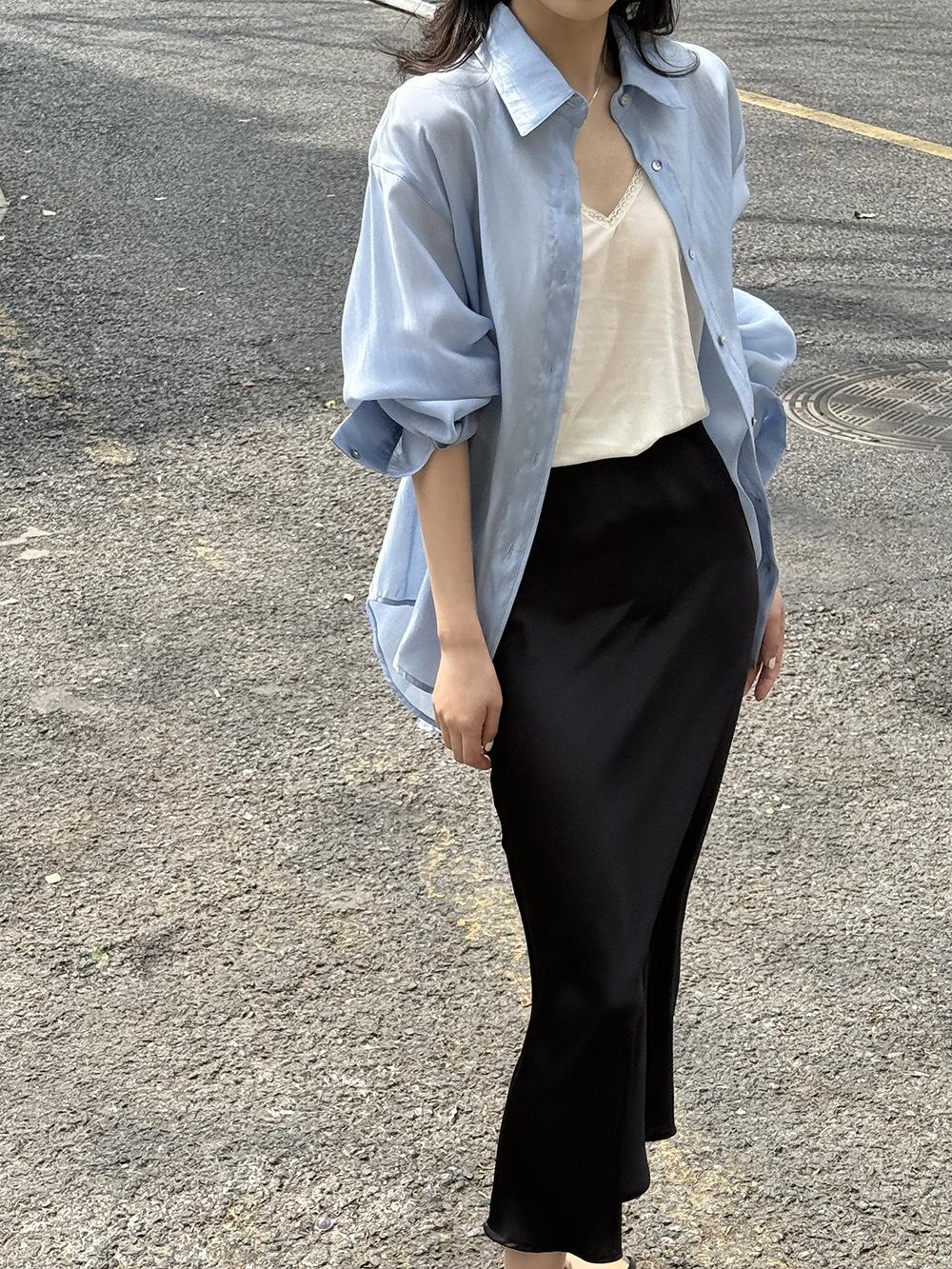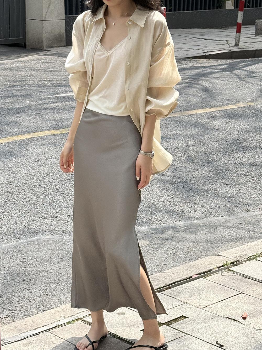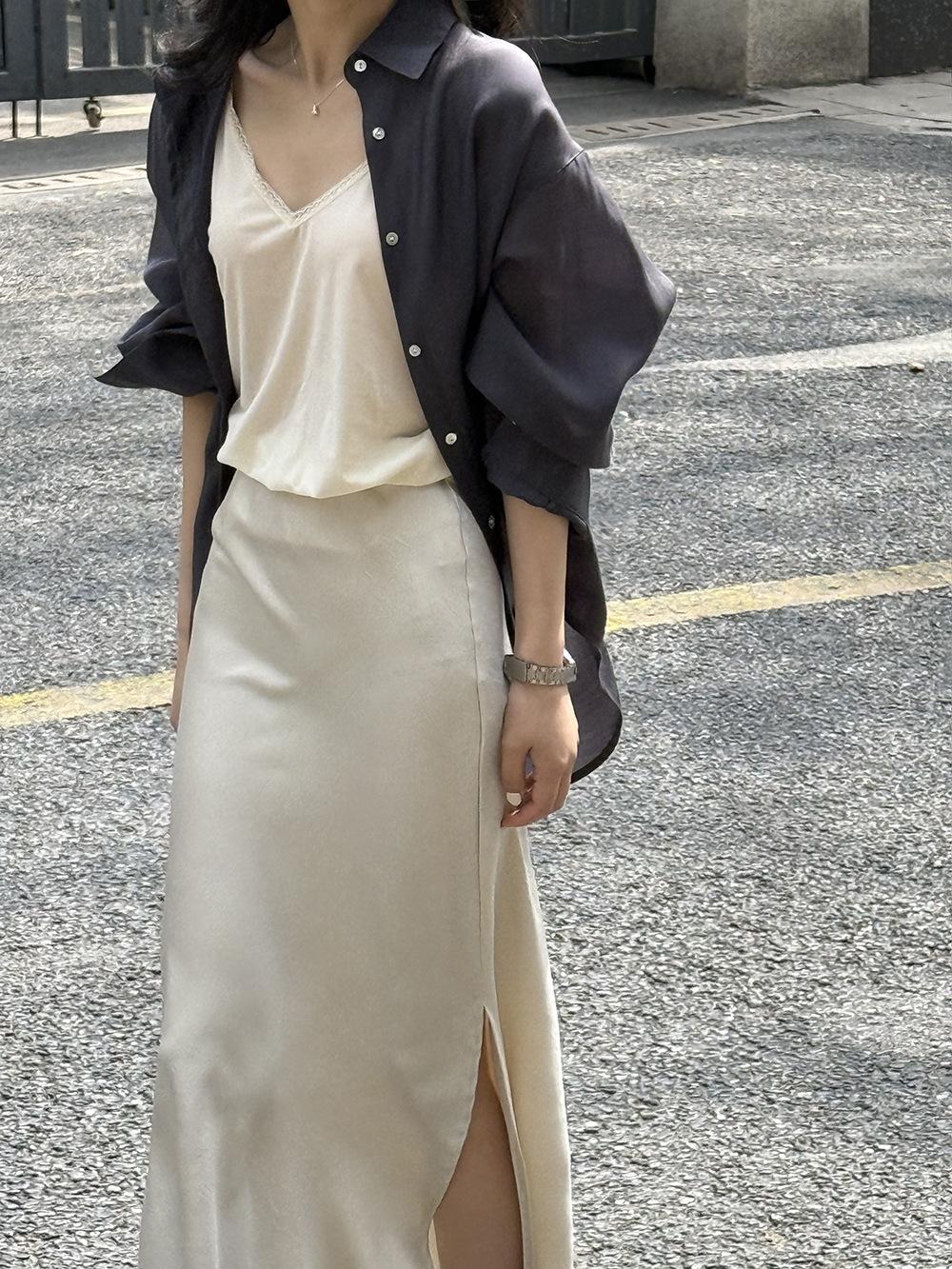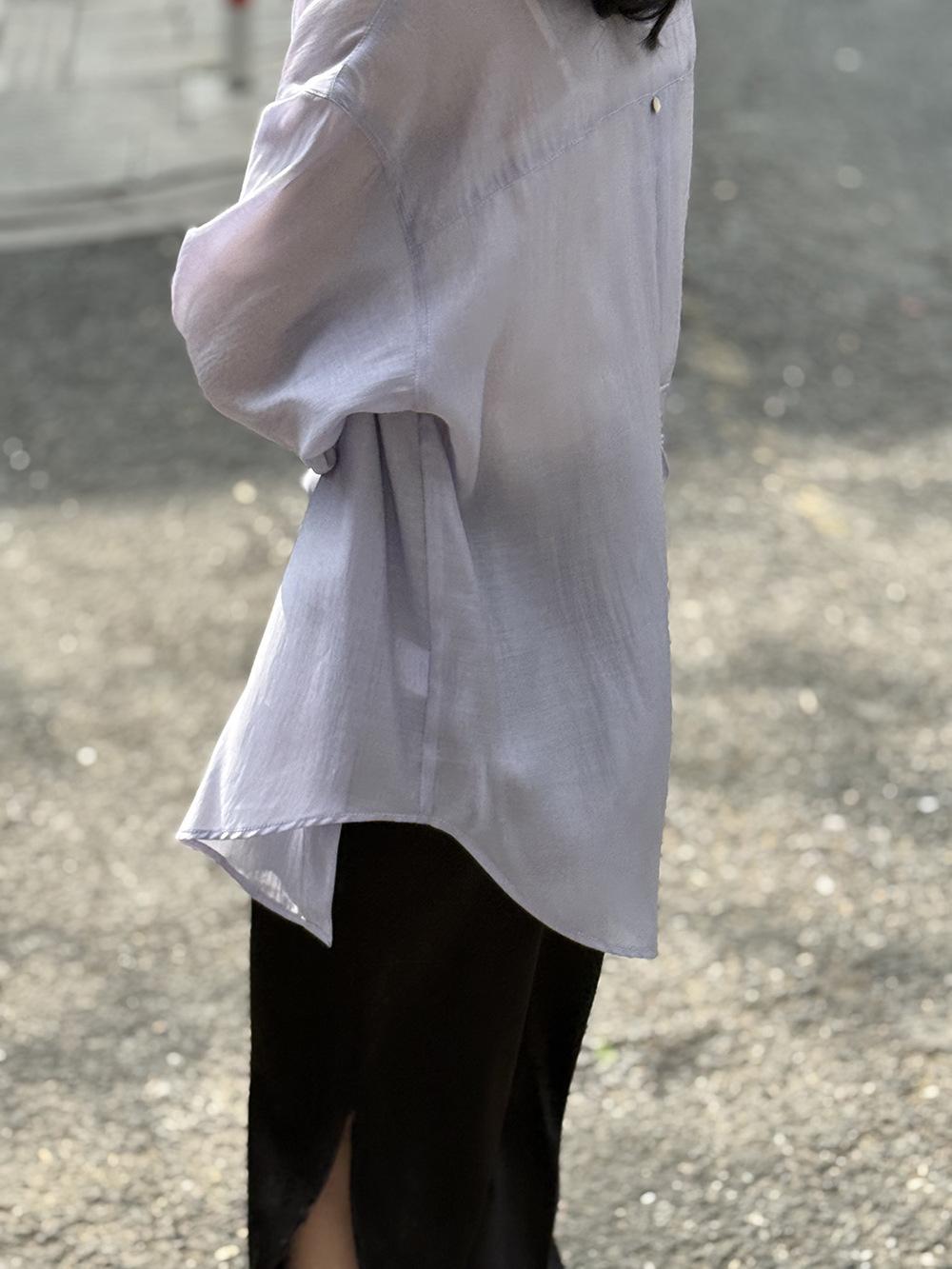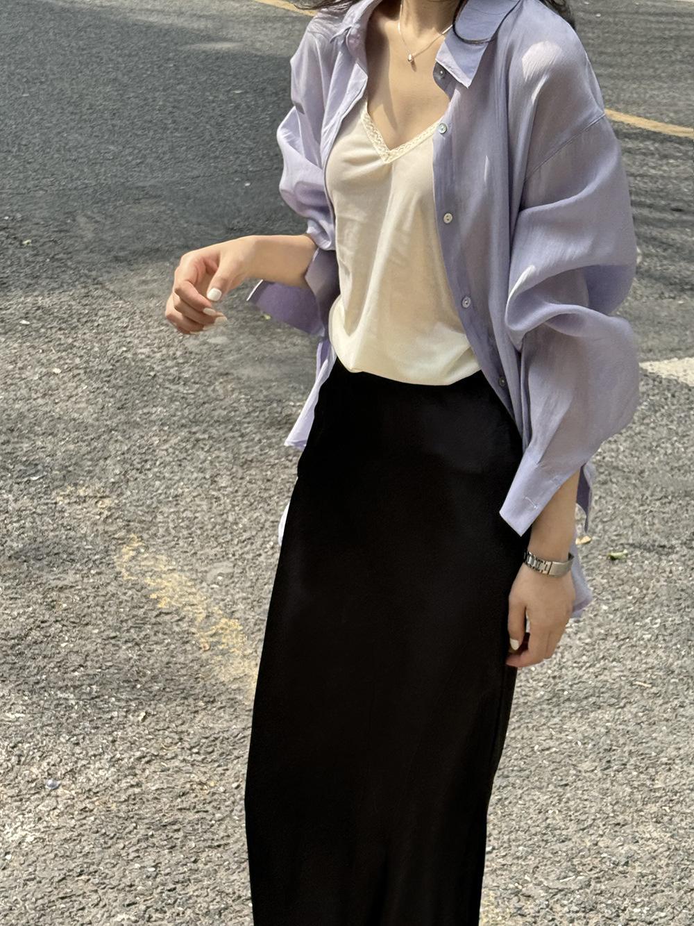 Camisa Tencel con Abertura Trasera para Mujer Verano Diseño Delgado Nicho Blusa Exterior Top Holgado Chaqueta Protección Solar