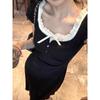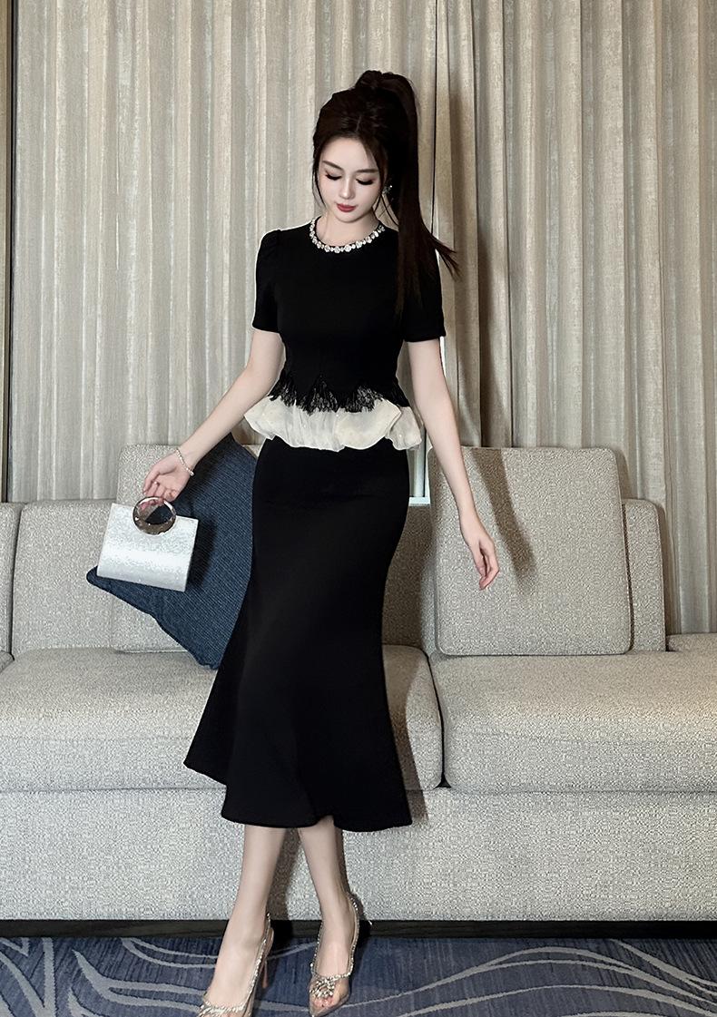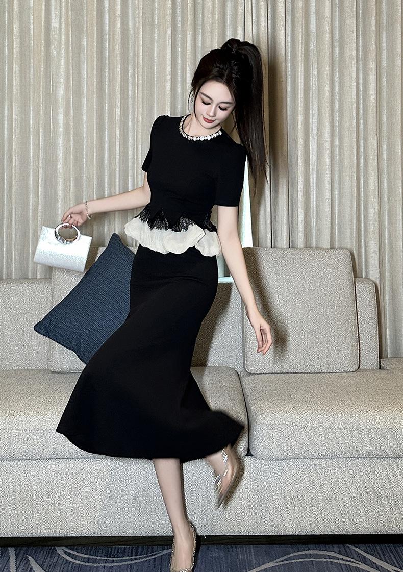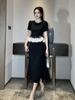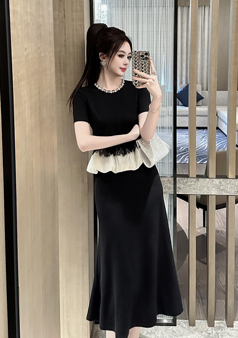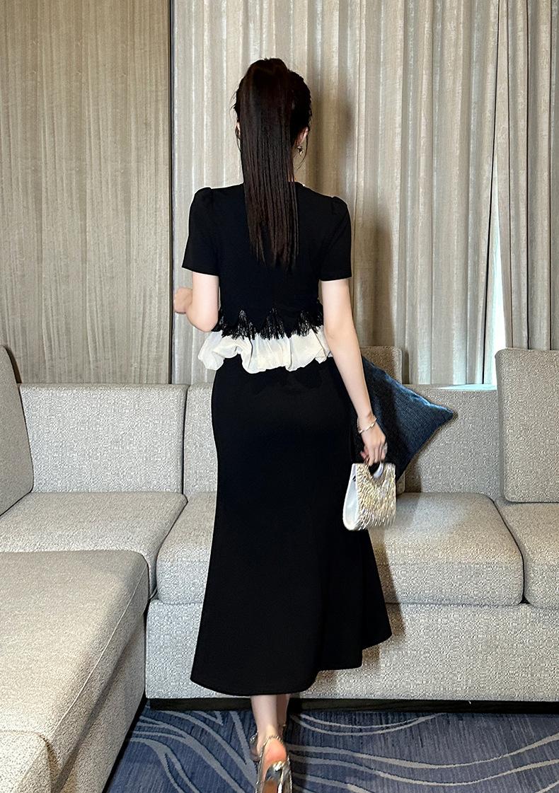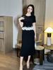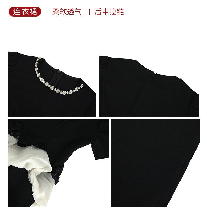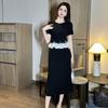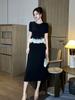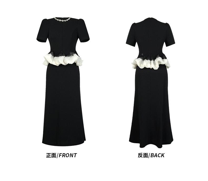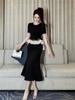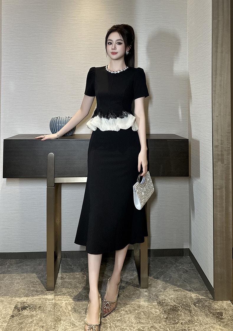 2025 verano nuevo vestido francés de cuello redondo para mujer, cintura con volantes, adelgazante de cadera, falso de dos piezas 45102