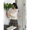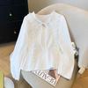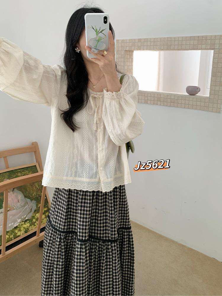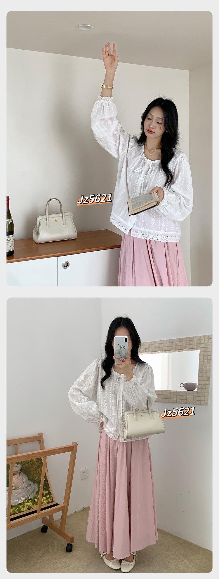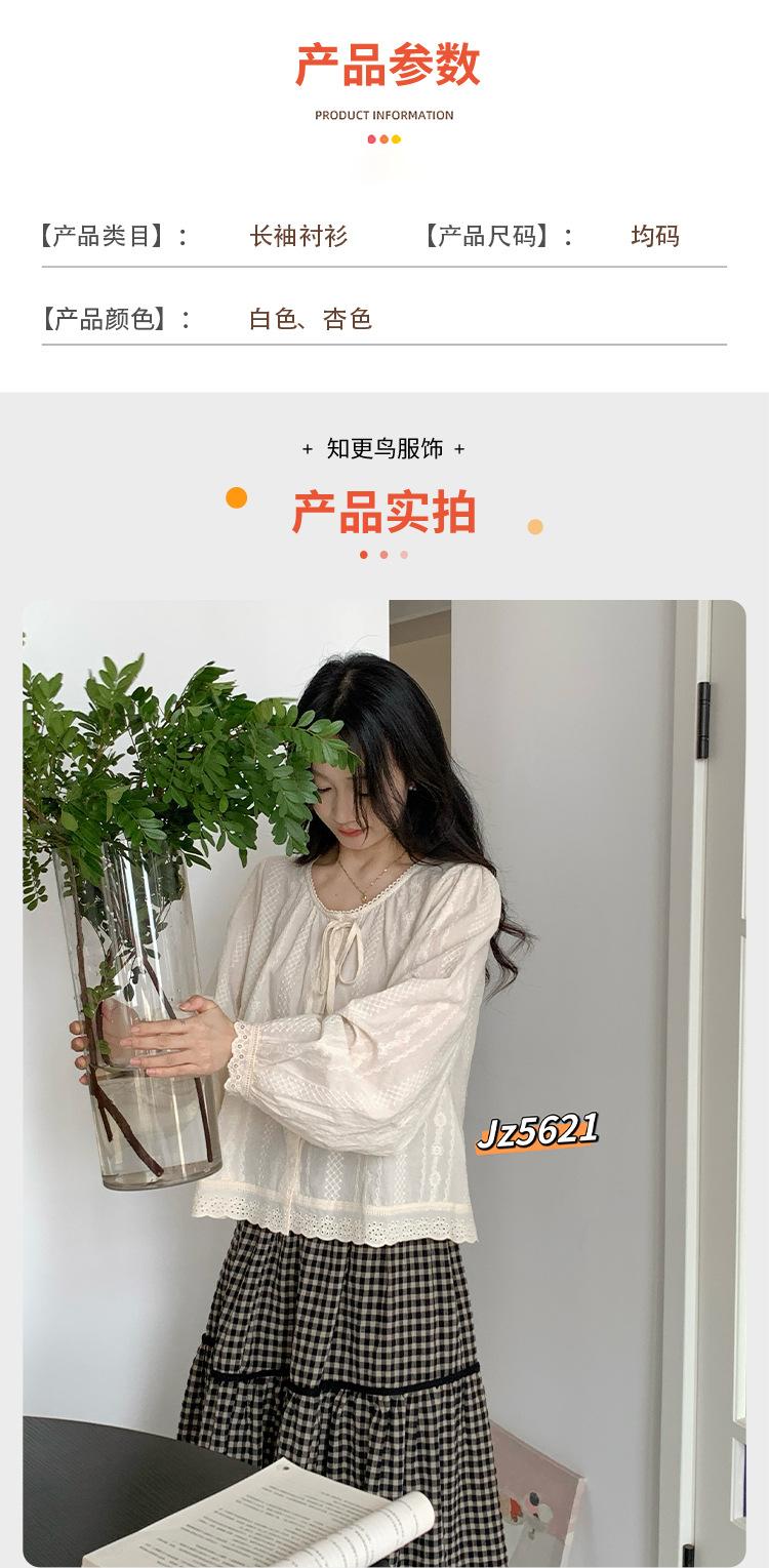 Camisa Retro Francesa Delicada Delgada Encaje Bordado Lazo Manga Larga Caída Holgada Cuello Redondo Top Mujer