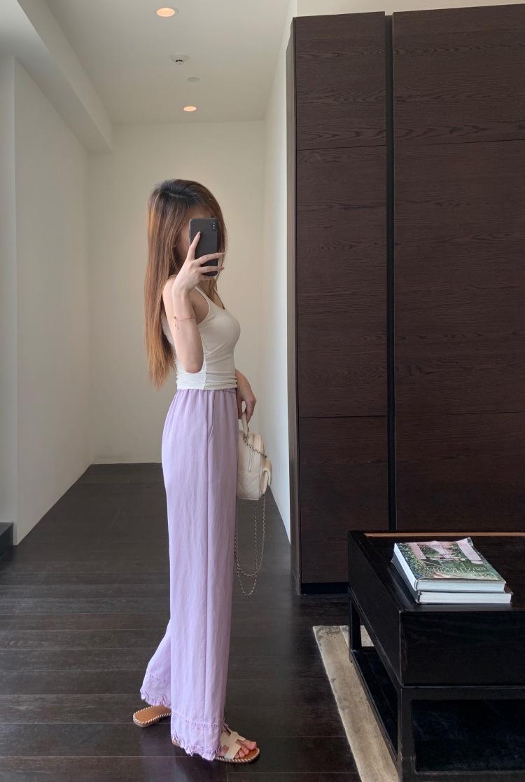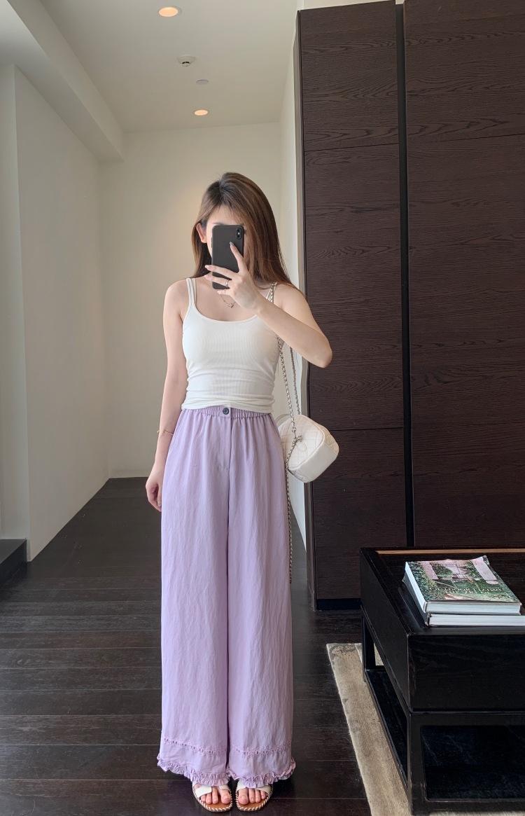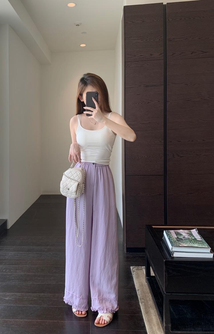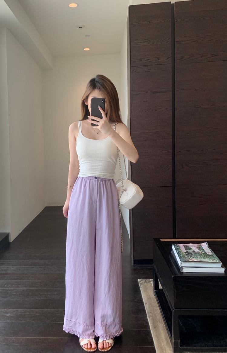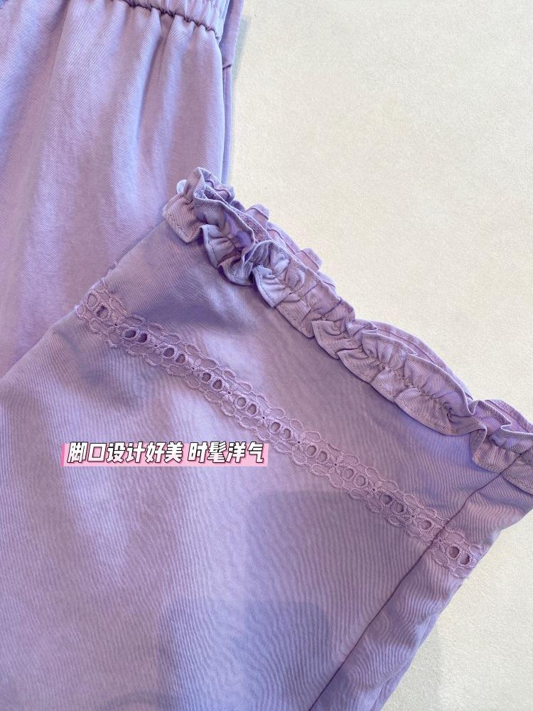 Pantalones Morados de Encaje Lyocell Tencel Sensación Hielo Versátiles con Caída Acondicionamiento de Aire Pierna Ancha