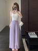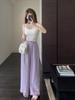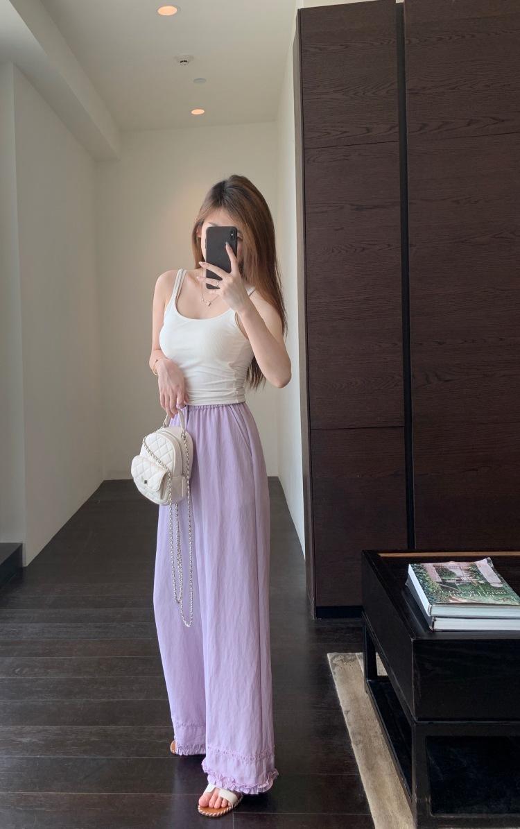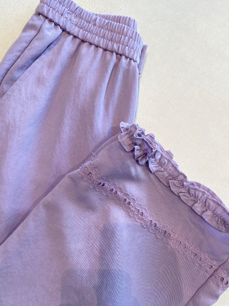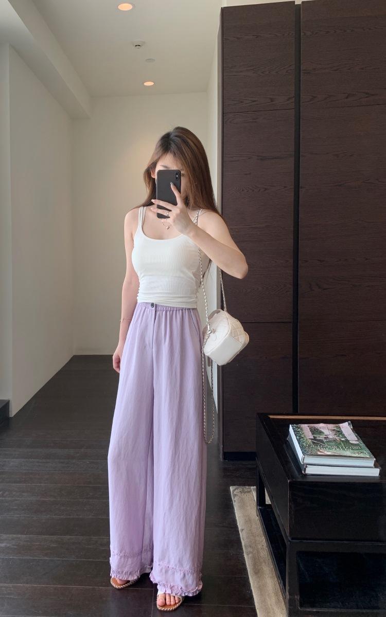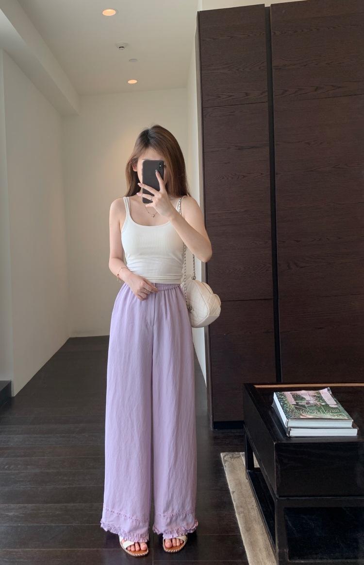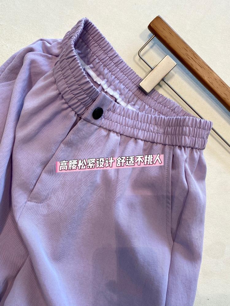 Pantalones Morados de Encaje Lyocell Tencel Sensación Hielo Versátiles con Caída Acondicionamiento de Aire Pierna Ancha