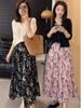 Nueva Falda Negra de Cintura Alta Corte A para Mujer Primavera y Verano Tela de Traje Talla Grande Cubre Caderas Falda de Verano con Cordón