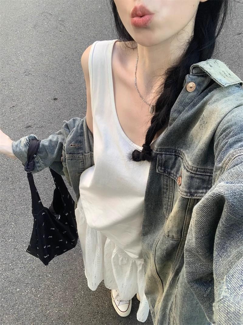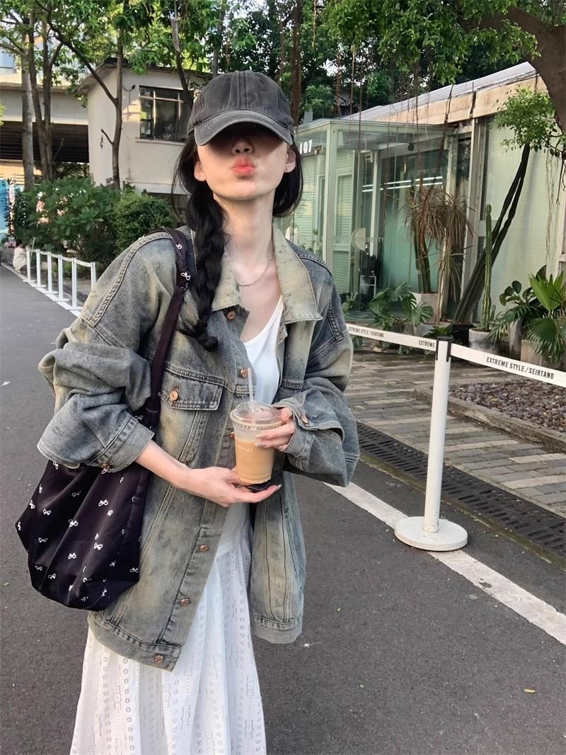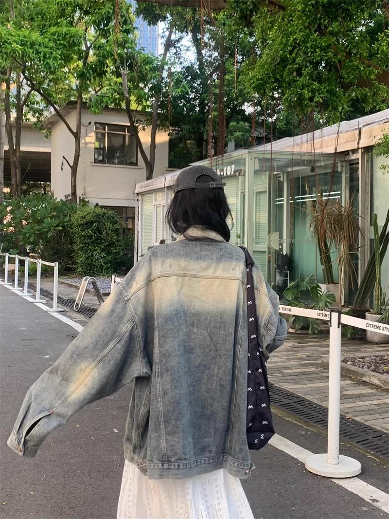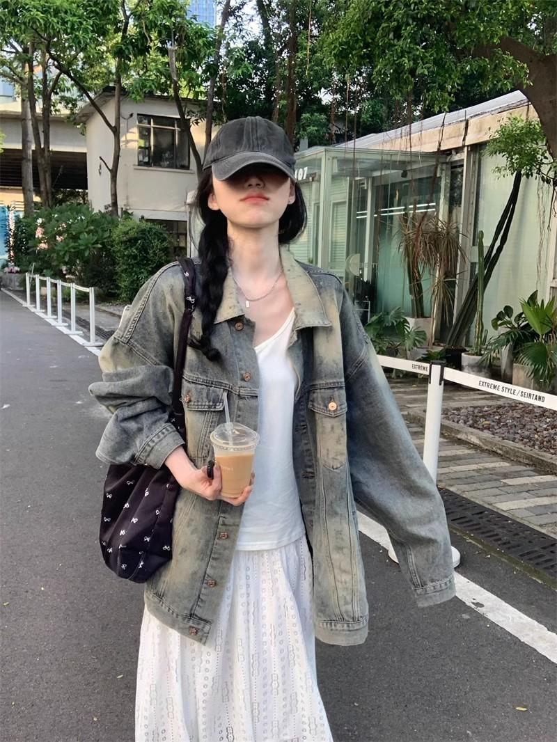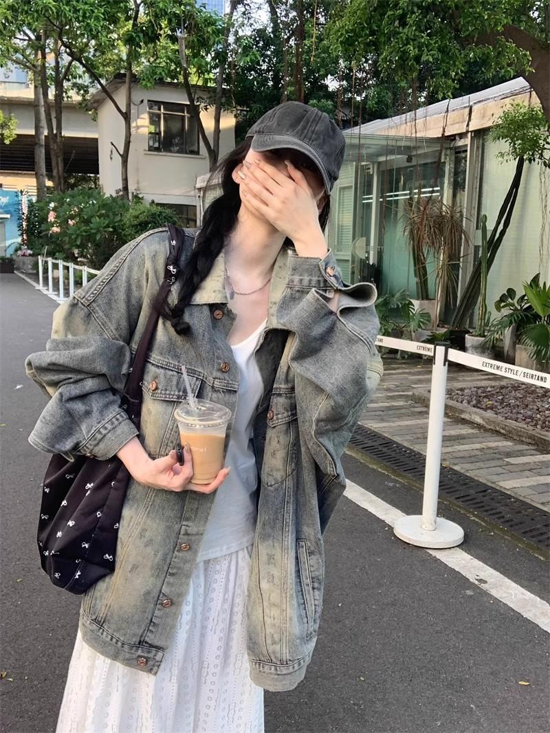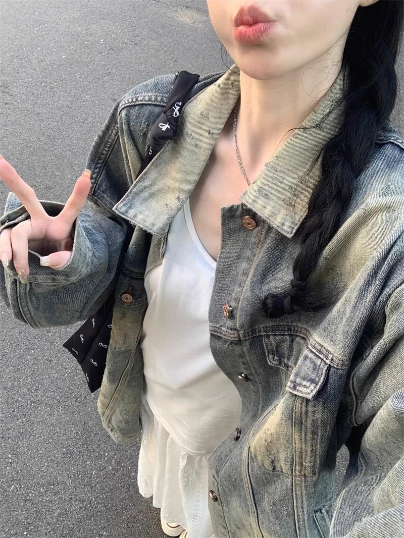 Chaqueta de mezclilla delgada retro de estilo americano para mujer, principios de otoño, diseño de nicho, holgada, casual, top
