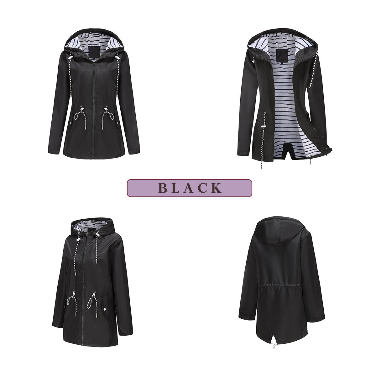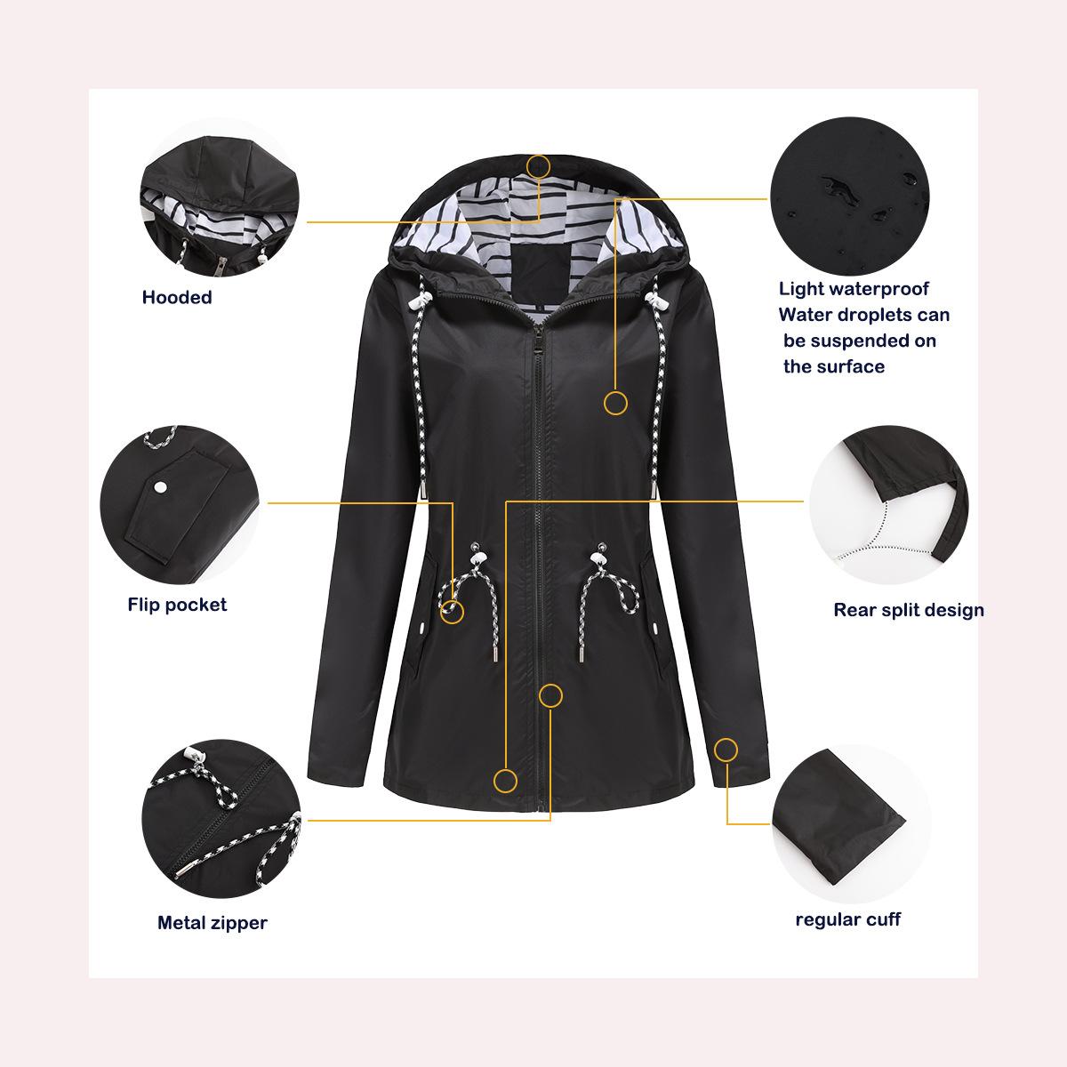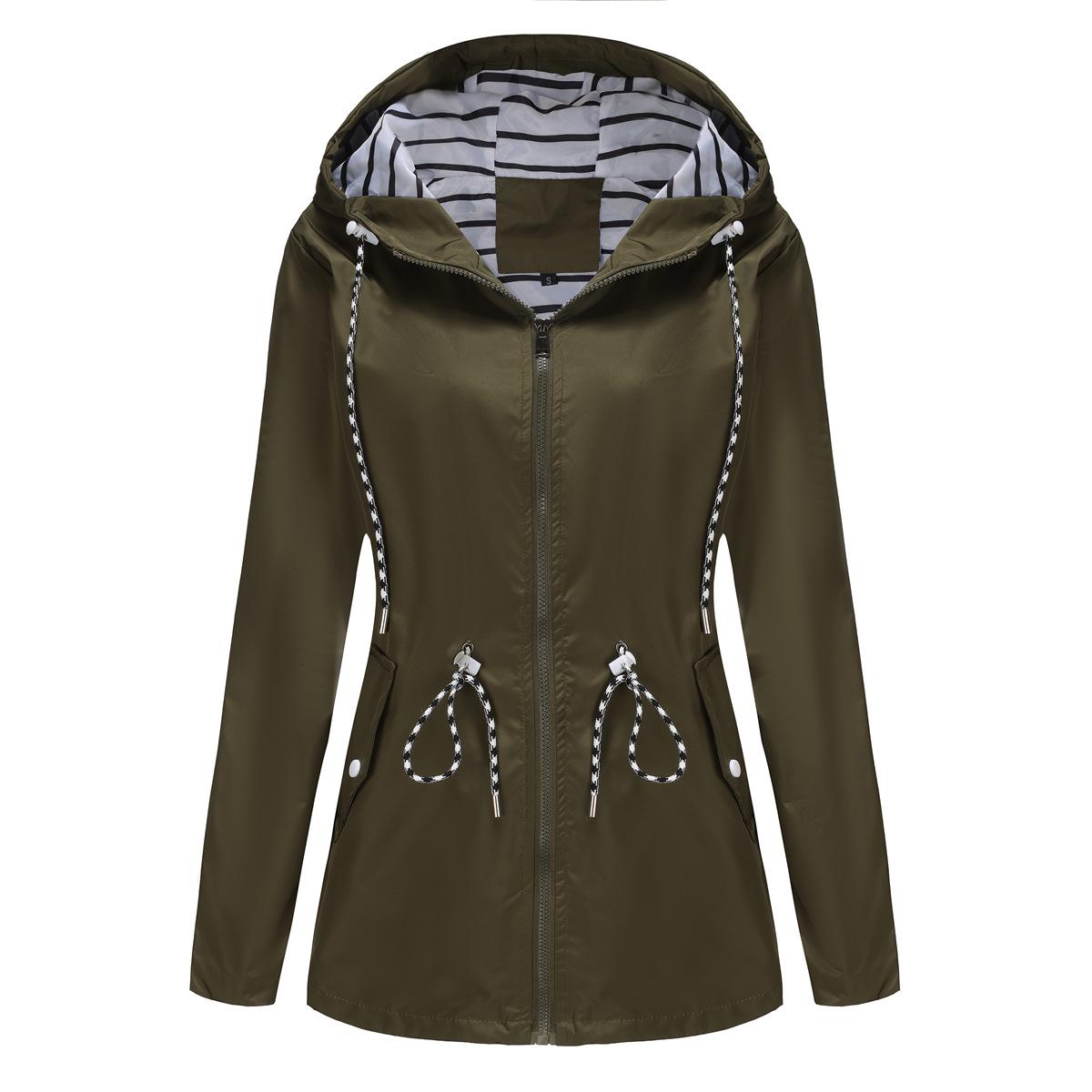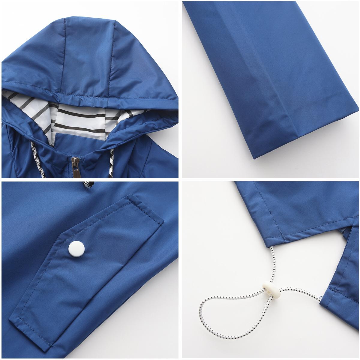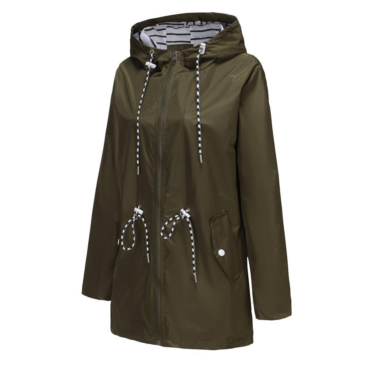 2024 Nuevo Cortavientos Europeo y Americano de Manga Larga Anti-salpicaduras de Largo Medio para Mujer con Capucha a Rayas Impermeable Talla Grande Transfronterizo Ropa de Mujer