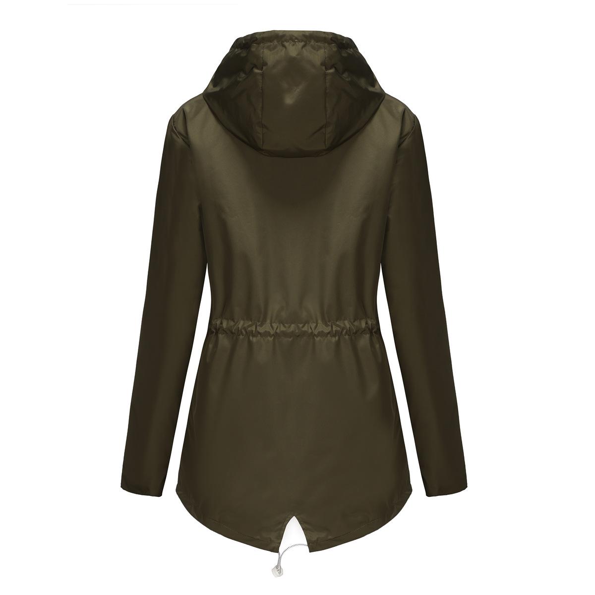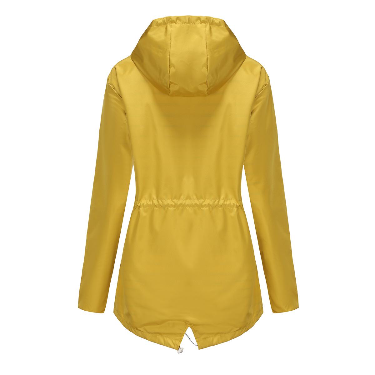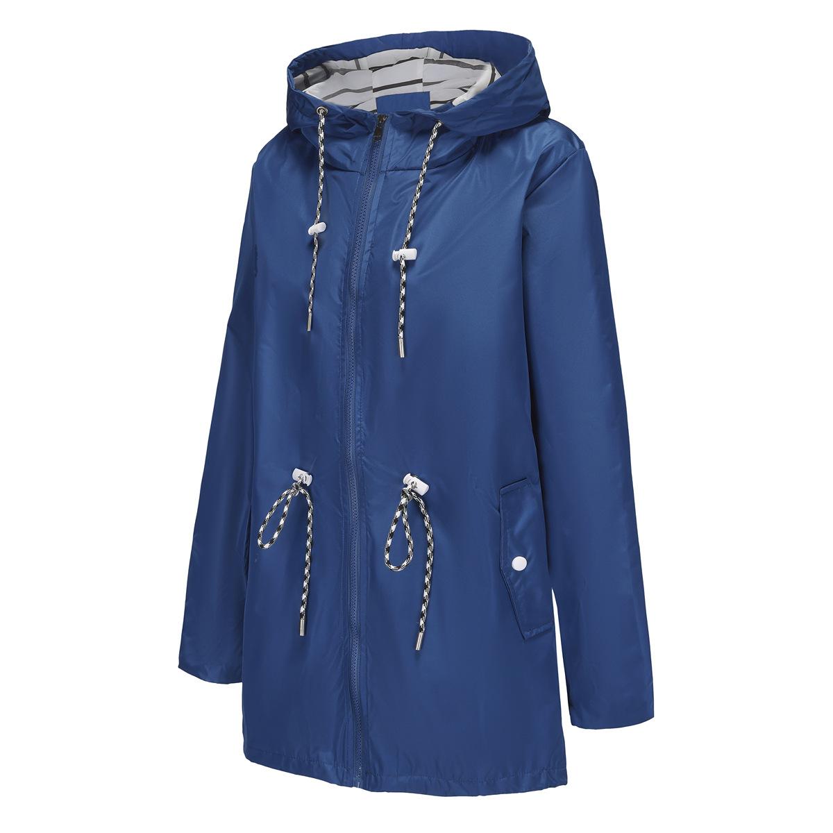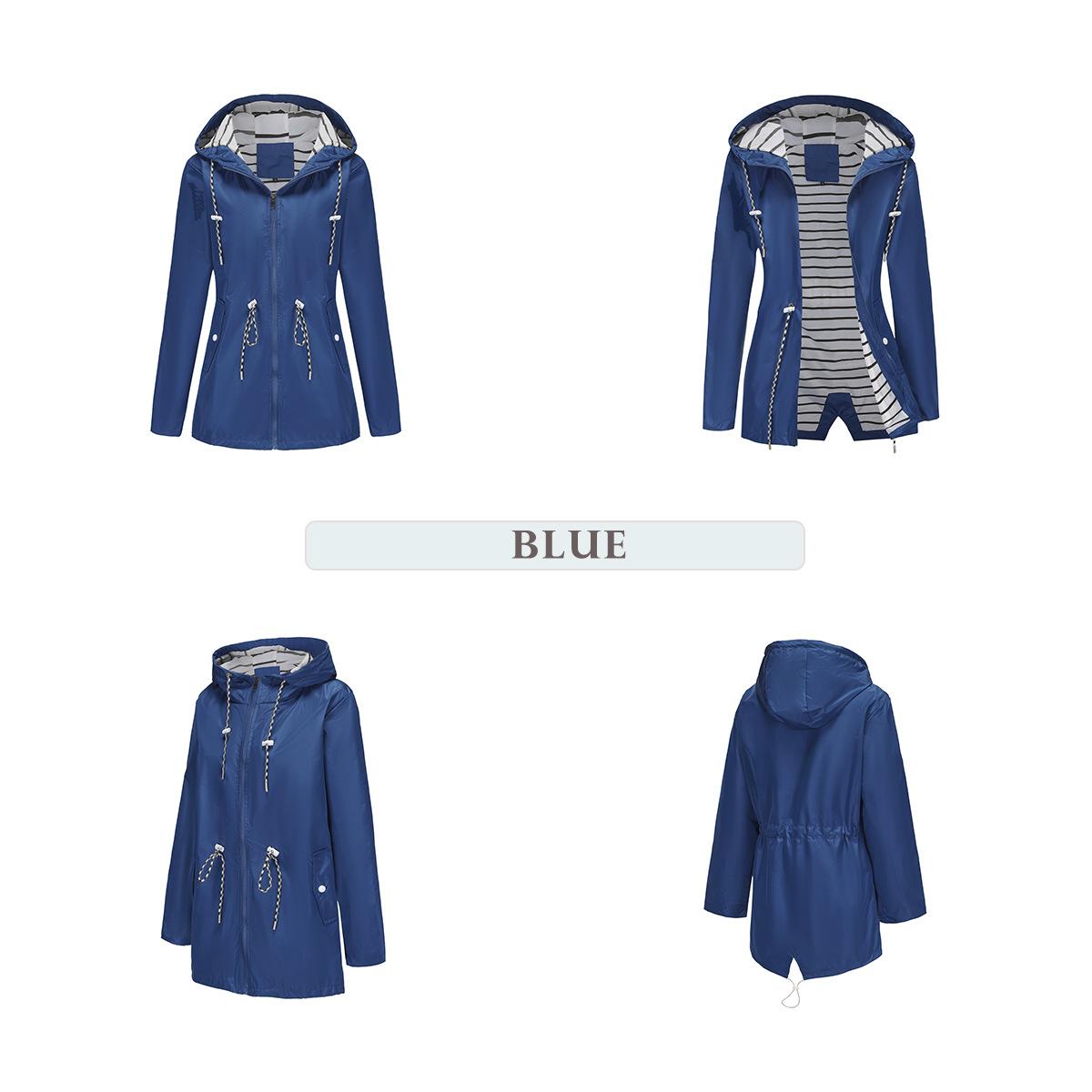 2024 Nuevo Cortavientos Europeo y Americano de Manga Larga Anti-salpicaduras de Largo Medio para Mujer con Capucha a Rayas Impermeable Talla Grande Transfronterizo Ropa de Mujer
