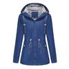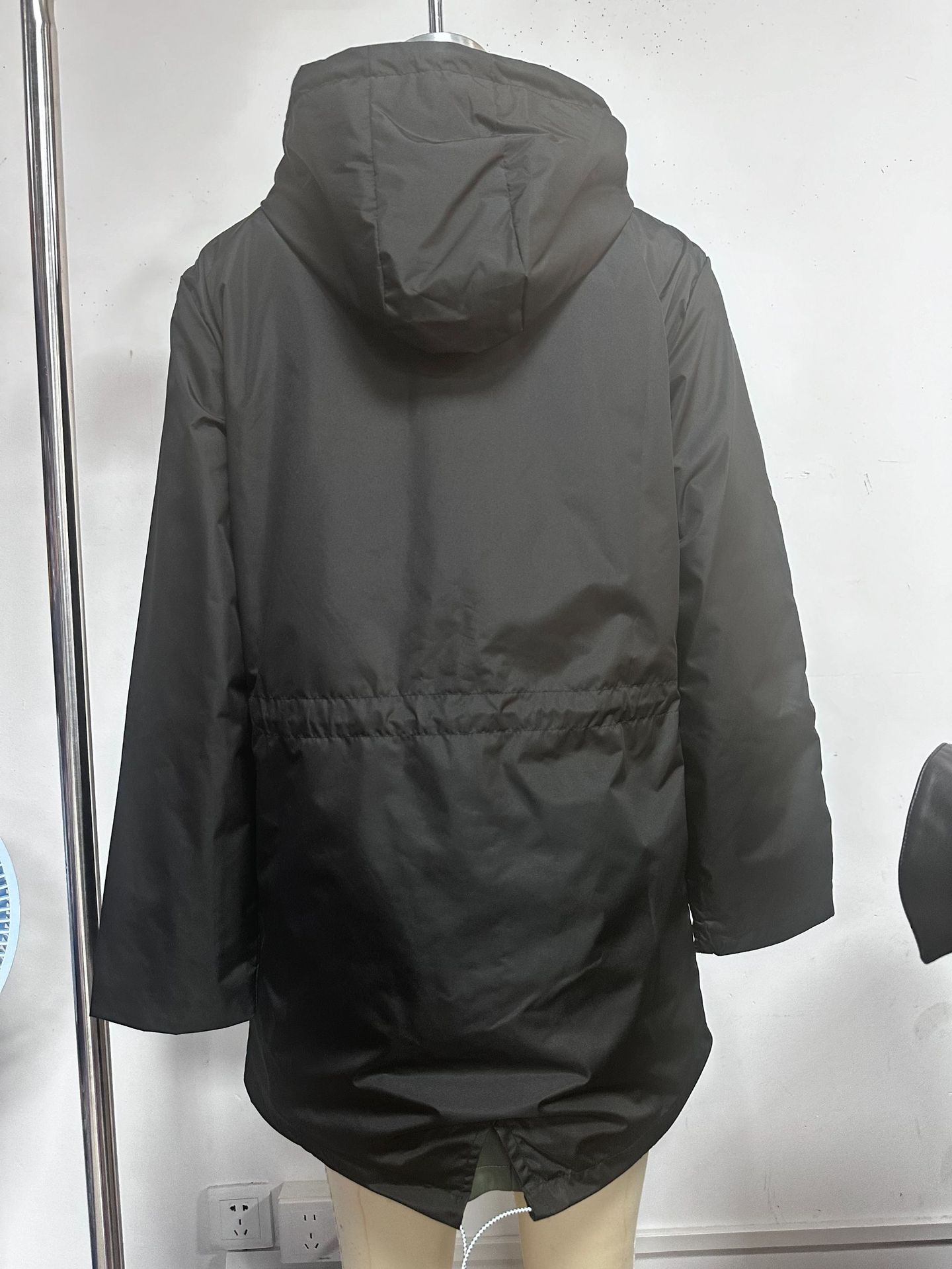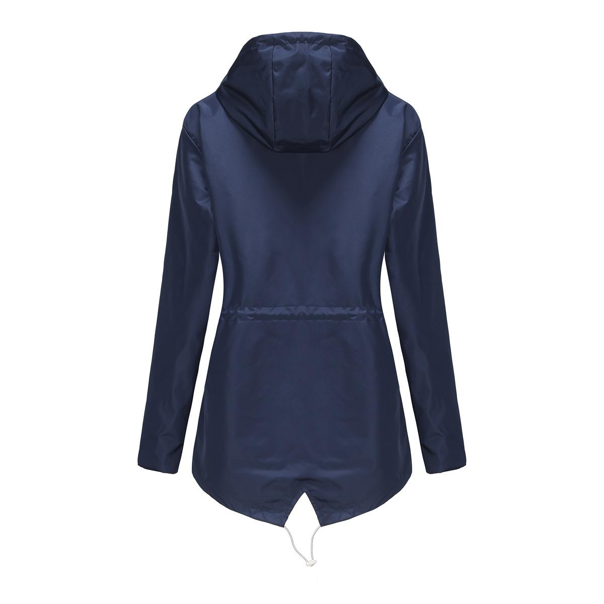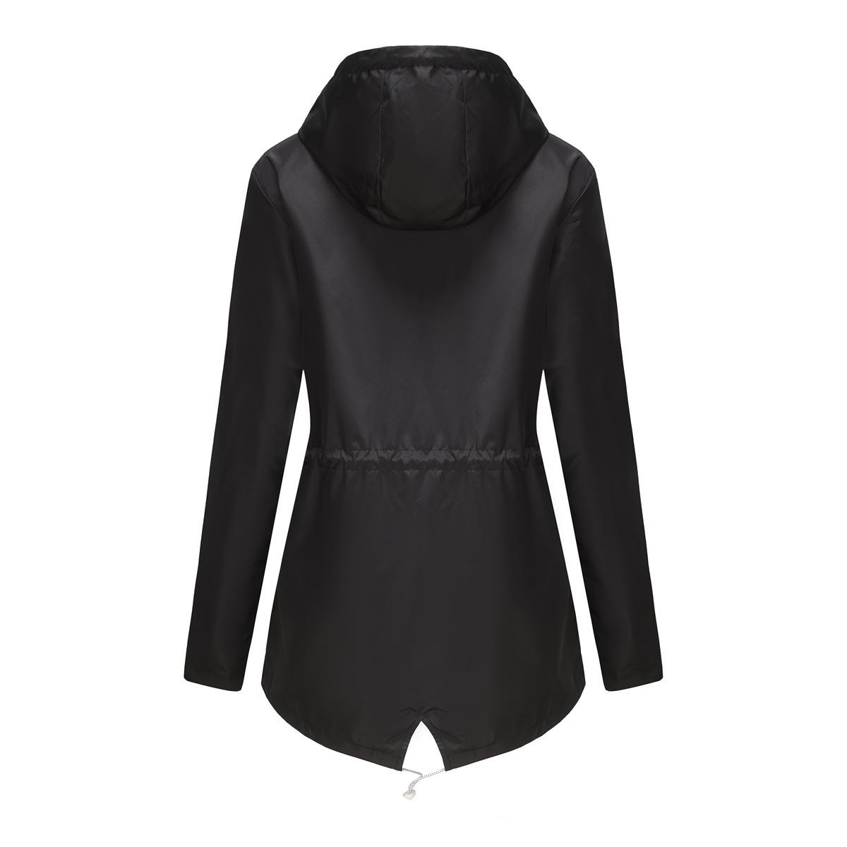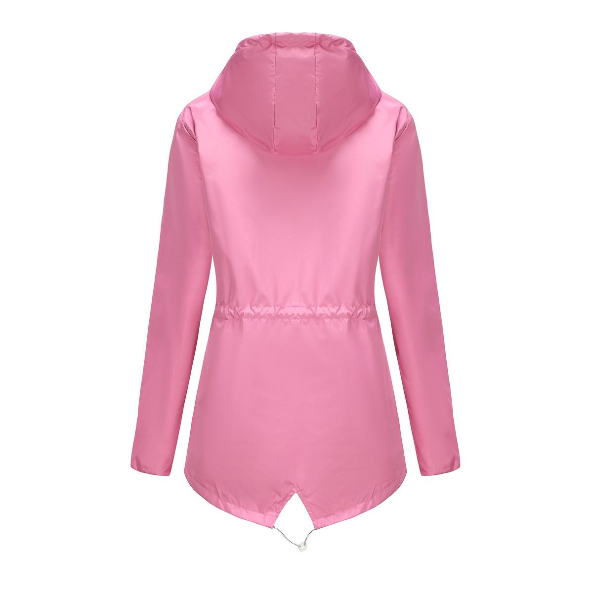 2024 Nuevo Cortavientos Europeo y Americano de Manga Larga Anti-salpicaduras de Largo Medio para Mujer con Capucha a Rayas Impermeable Talla Grande Transfronterizo Ropa de Mujer