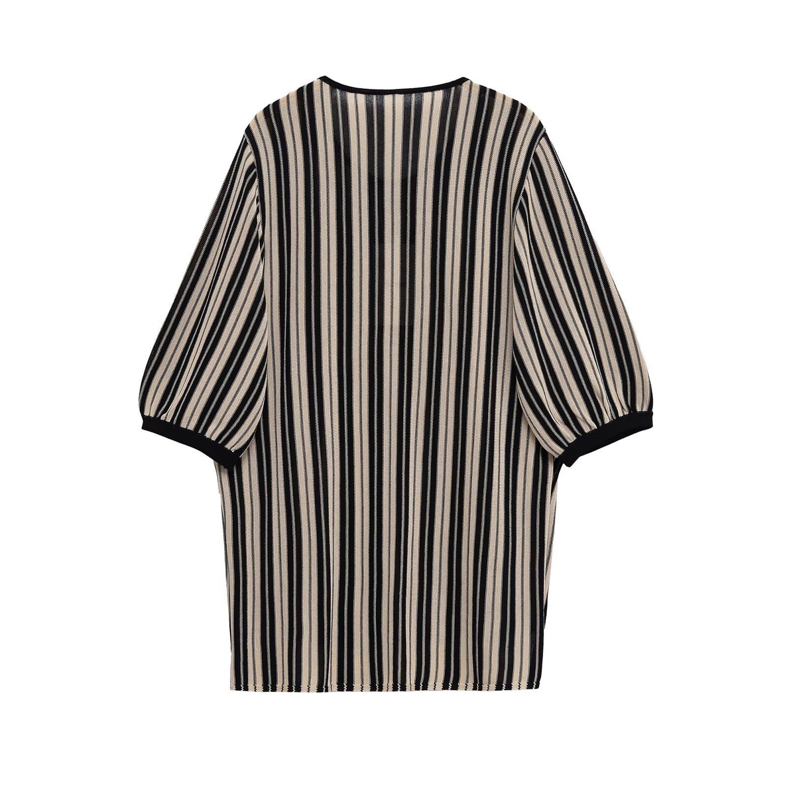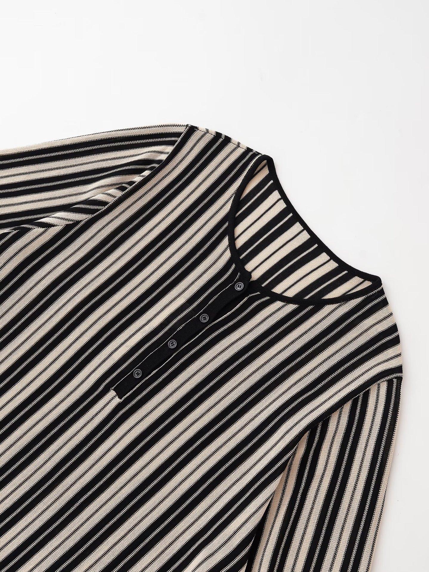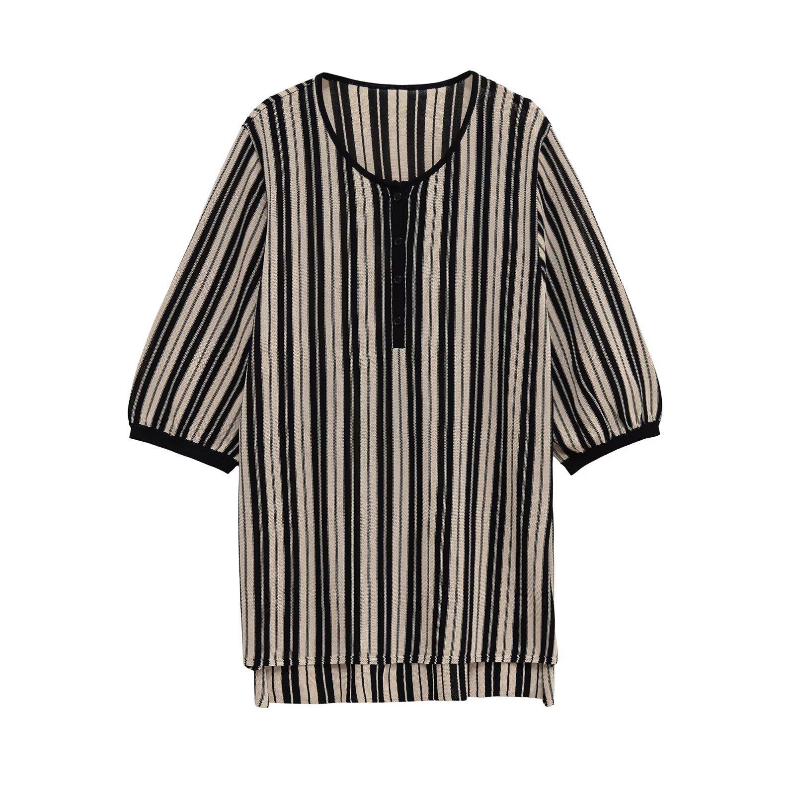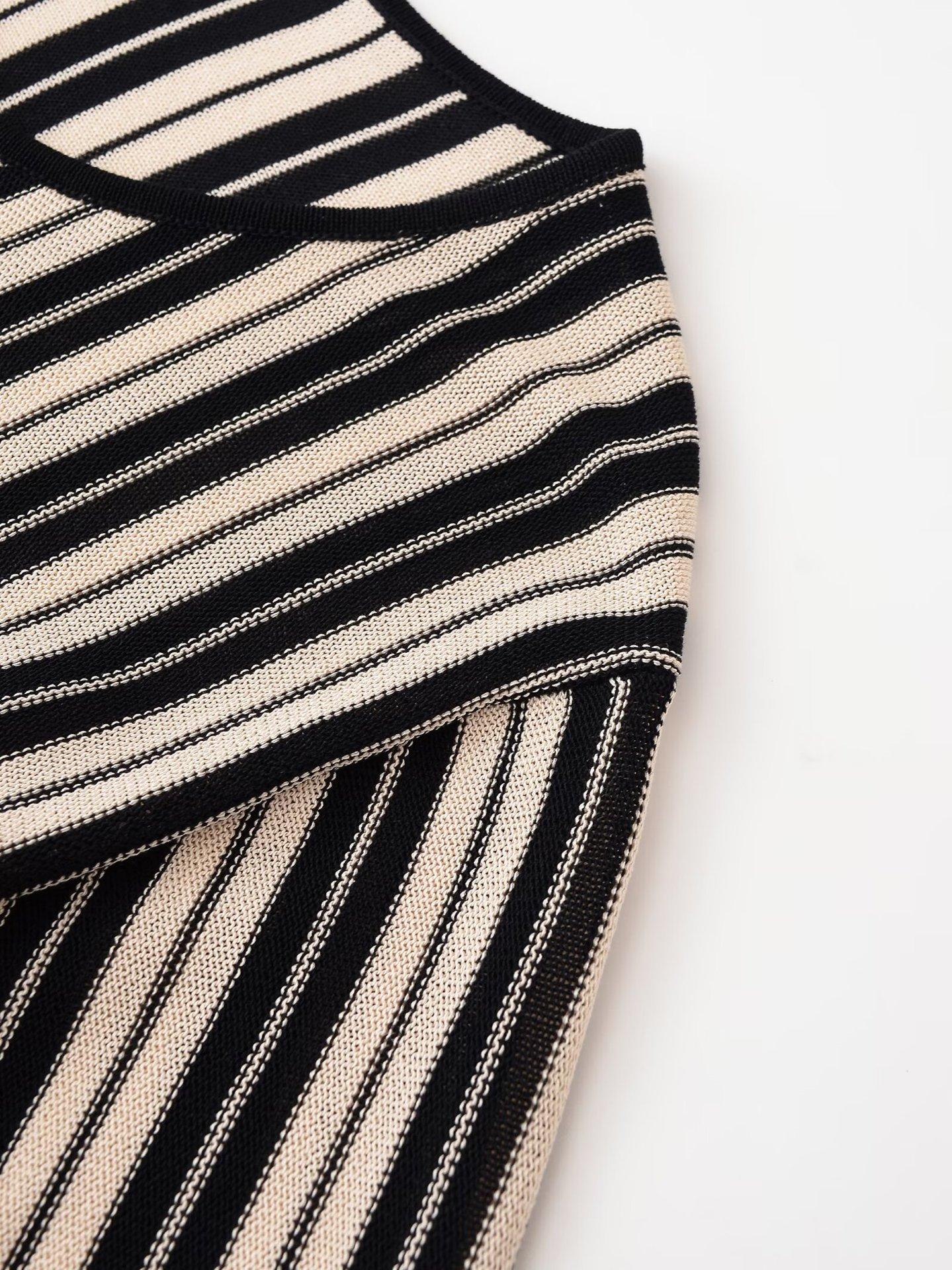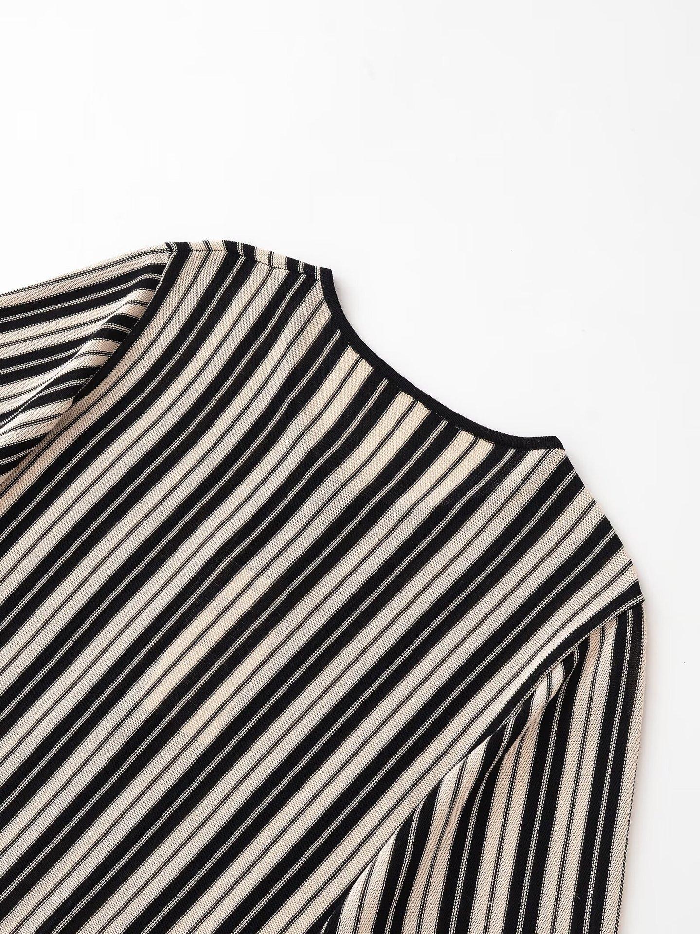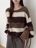 Otoño 2025 Ropa Nueva para Mujer Estilo Europeo y Americano Moda Suéter de Punto Holgado a Rayas de Cuello Redondo 5536006