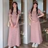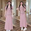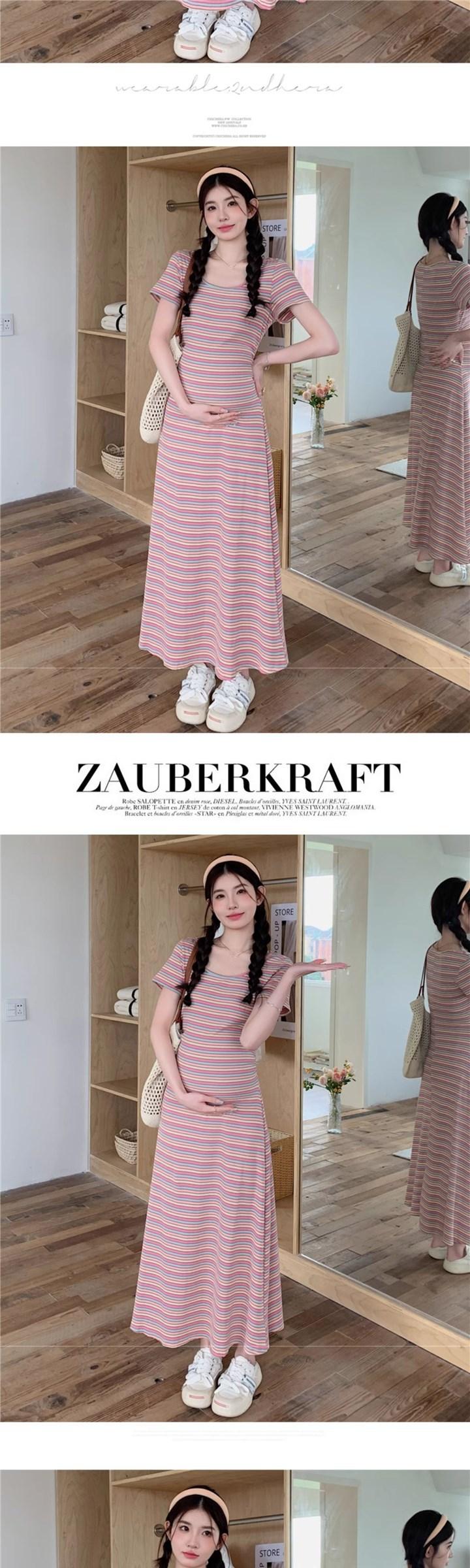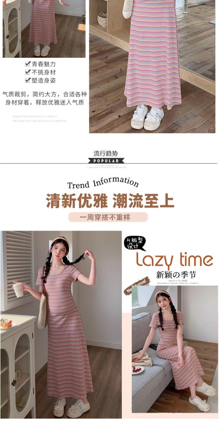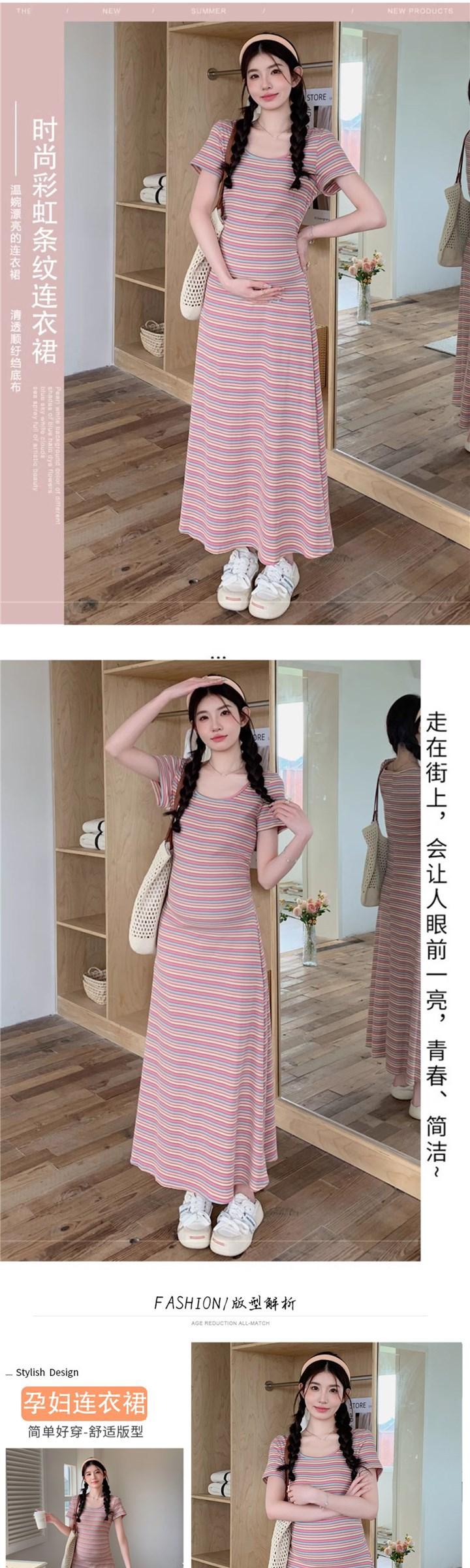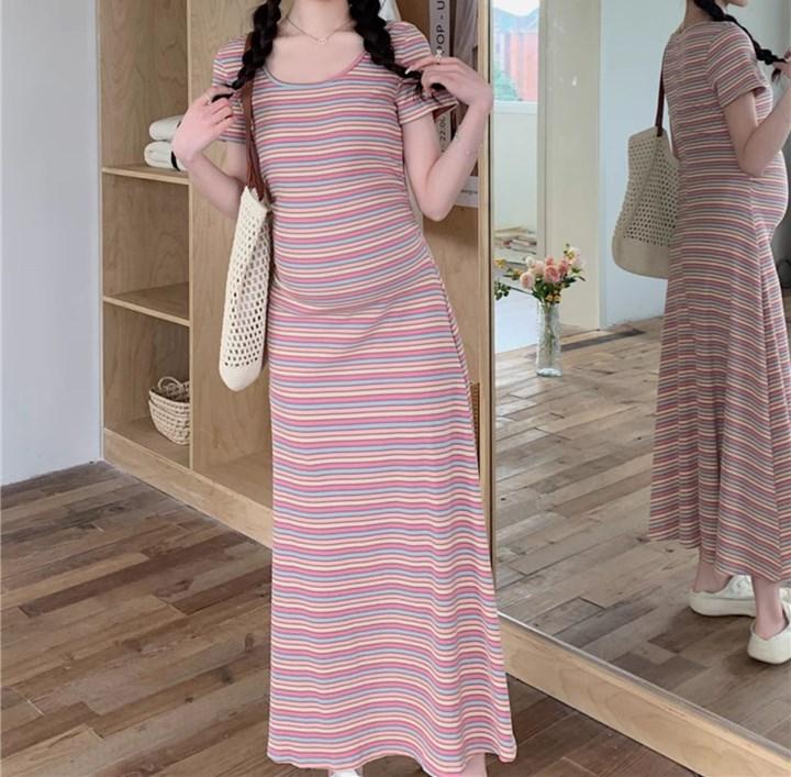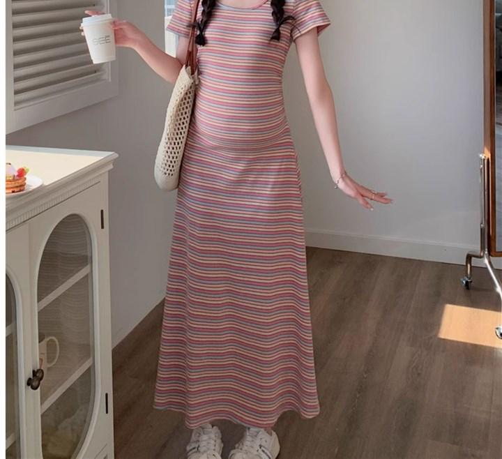 Vestido de maternidad verano 2025 nuevo estilo cubre vientre ajuste ceñido adelgazante rayas manga corta vestido de maternidad verano largo