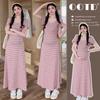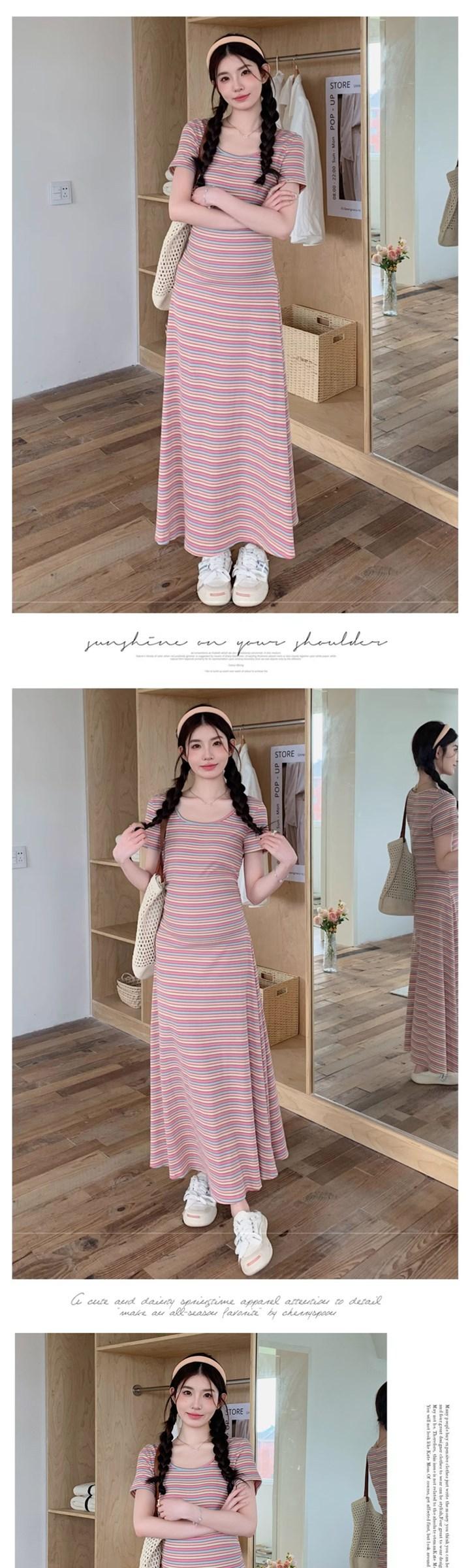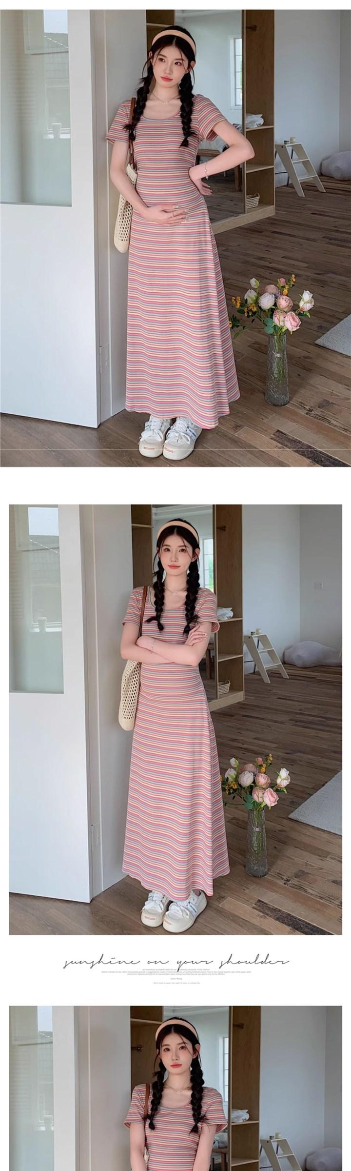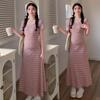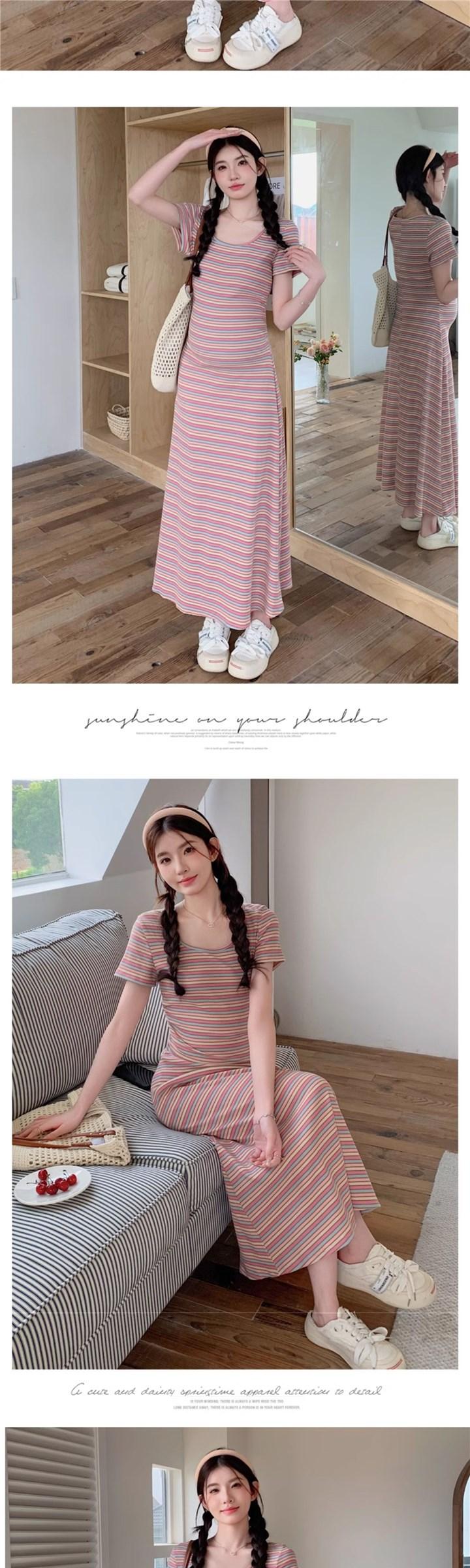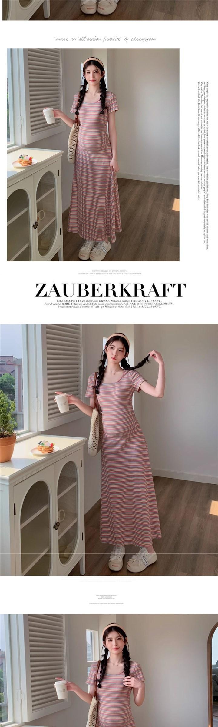 Vestido de maternidad verano 2025 nuevo estilo cubre vientre ajuste ceñido adelgazante rayas manga corta vestido de maternidad verano largo