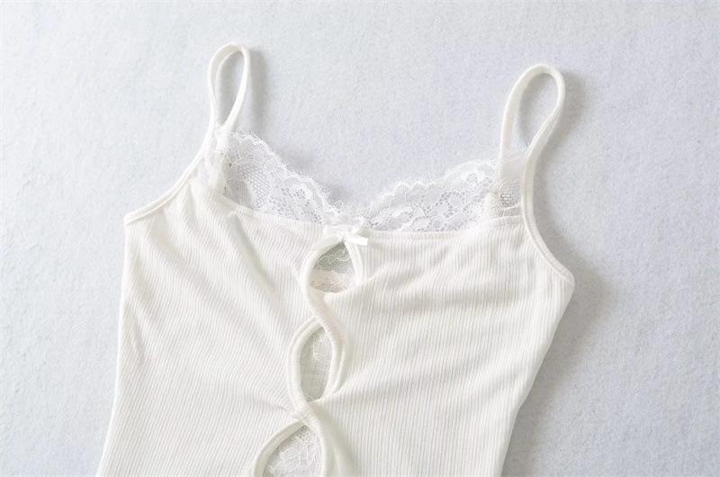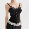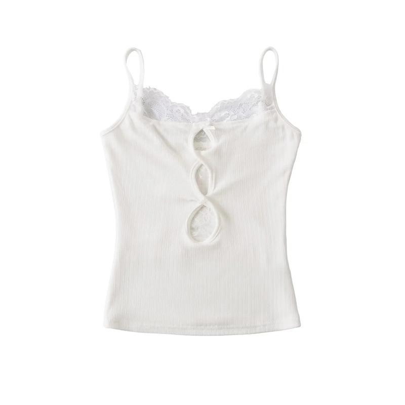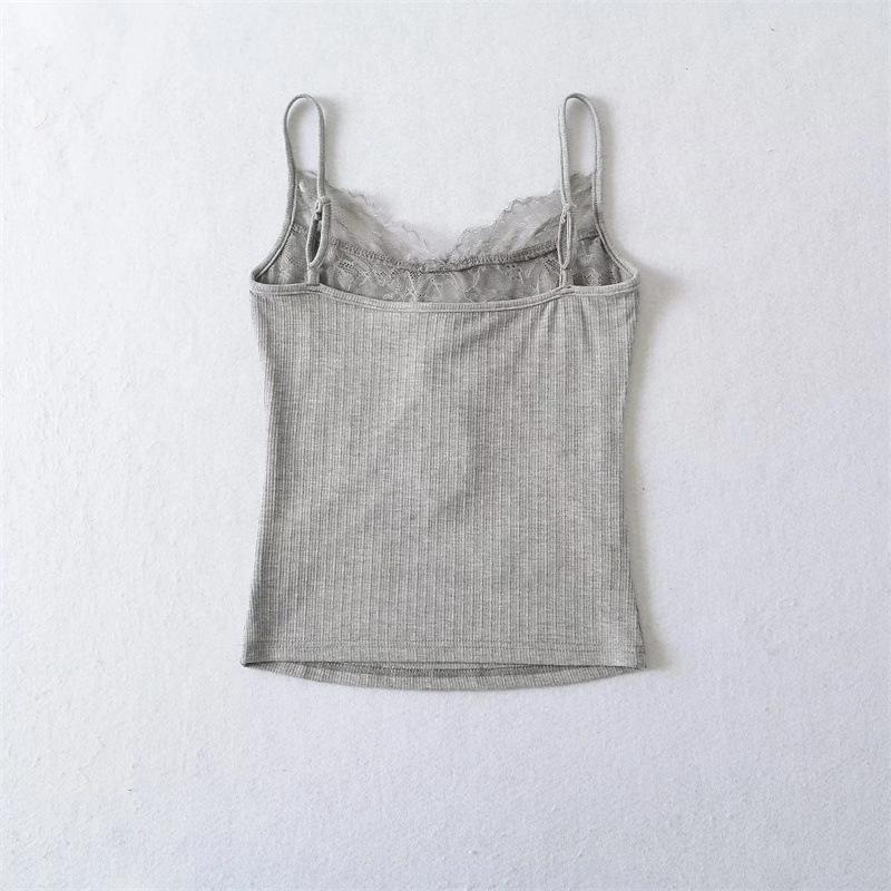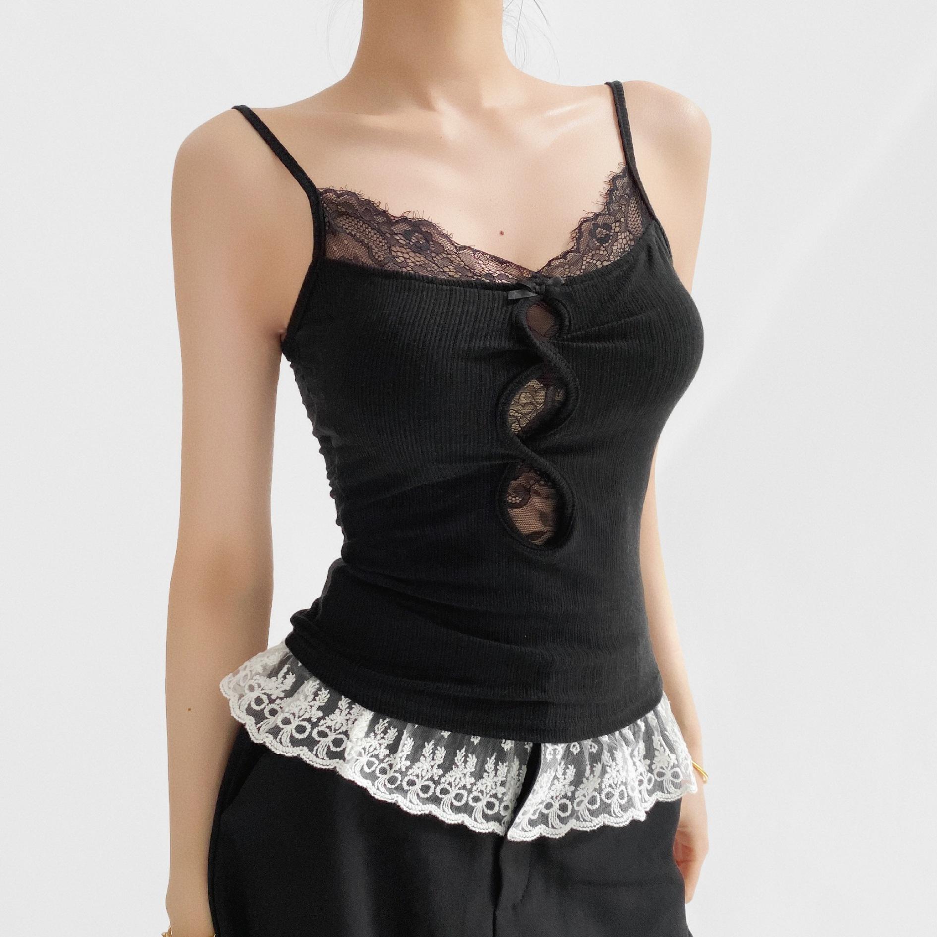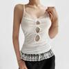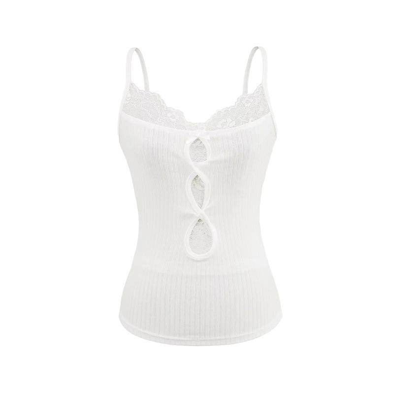 Estilo Deseo Puro Sentido del Diseño Encaje Calado Costuras Camisola Top Base Interior Adelgazante de Verano para Mujer Top de Mujer