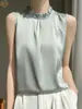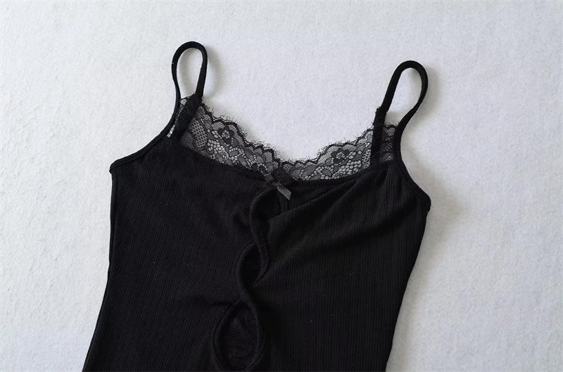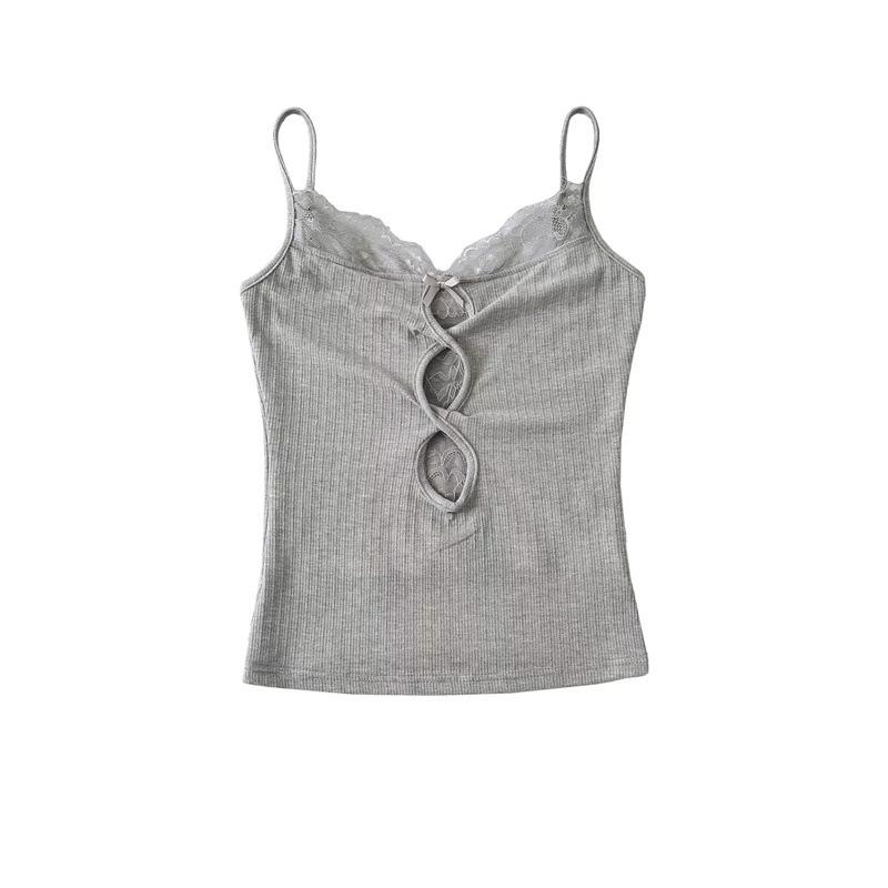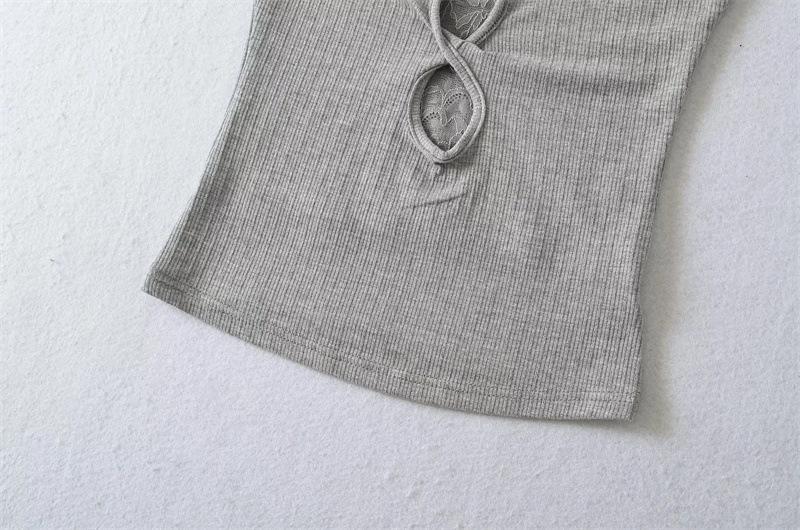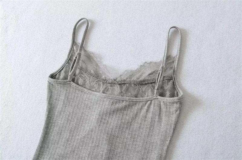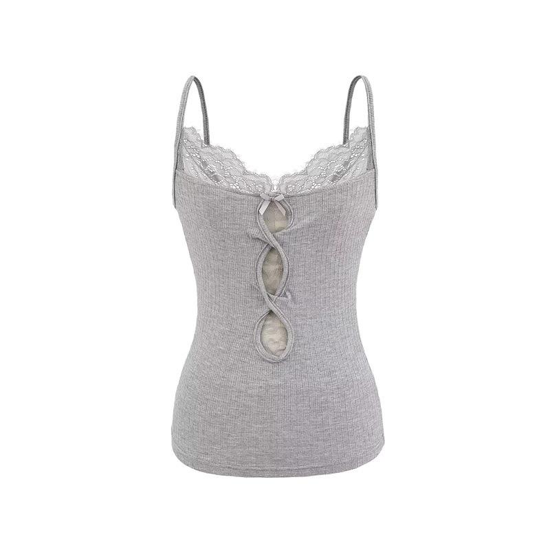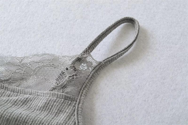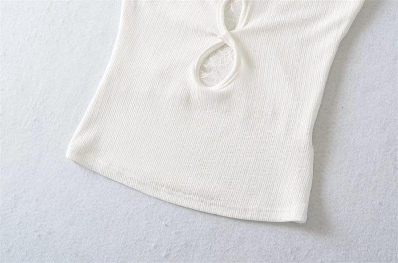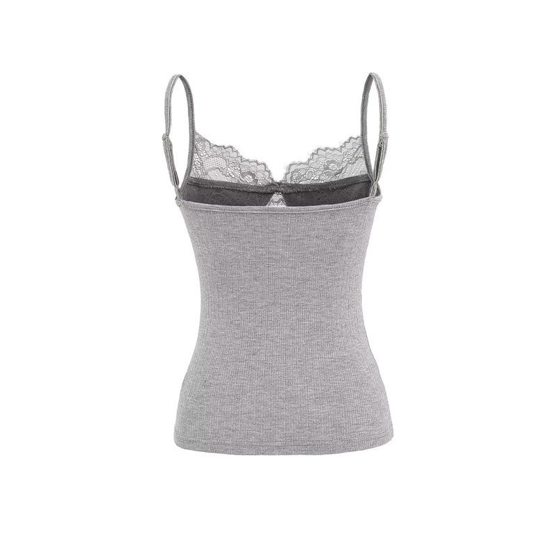 Estilo Deseo Puro Sentido del Diseño Encaje Calado Costuras Camisola Top Base Interior Adelgazante de Verano para Mujer Top de Mujer