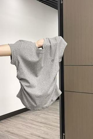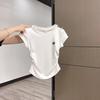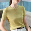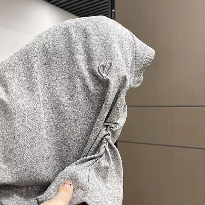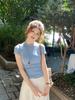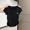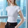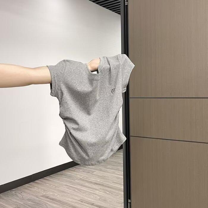Camiseta de Manga Corta con Cuello Redondo y Diseño de Hombro Derecho para Mujer Verano 2025 Nuevo Estilo Top Corto de Aspecto Adelgazante de Cintura Alta