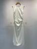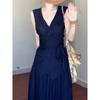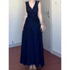 Nuevo Vestido Chaleco Azul de Color Sólido con Cuello en V y Sin Mangas, Temperamento Cintura Ceñida, Vestido Largo