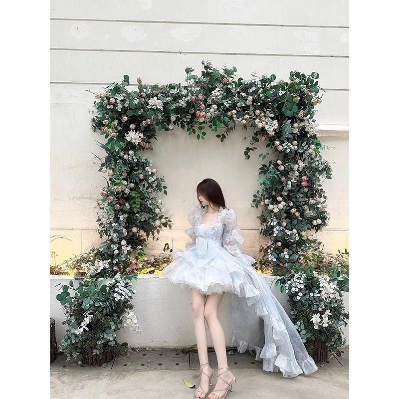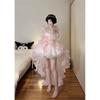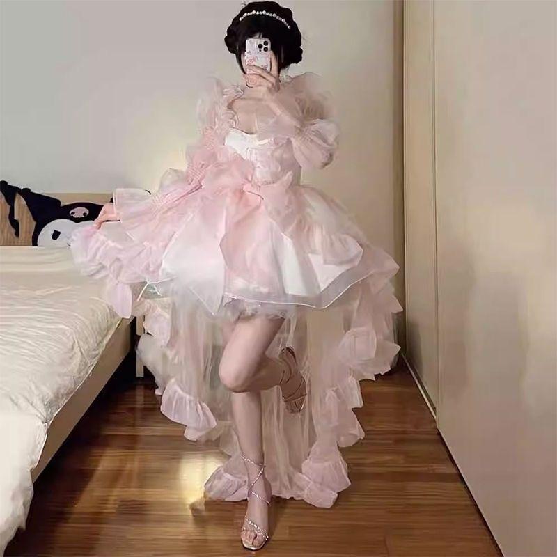 Vestido de Novia Estilo Francés Azul Lolita Strapless con Cola Vestido Lolita Princesa Abullonado Adelgazante
