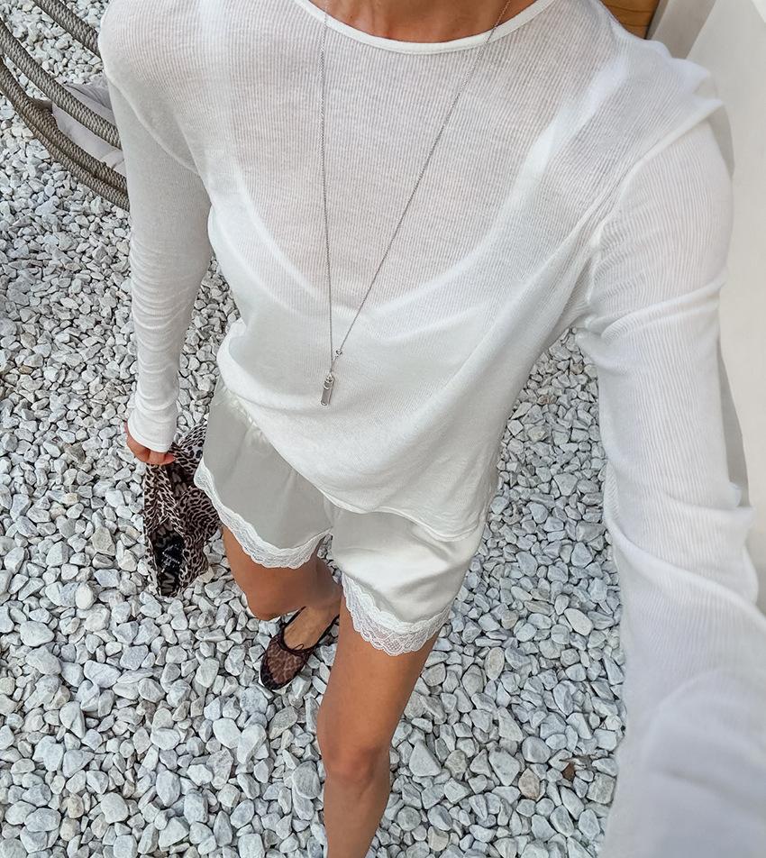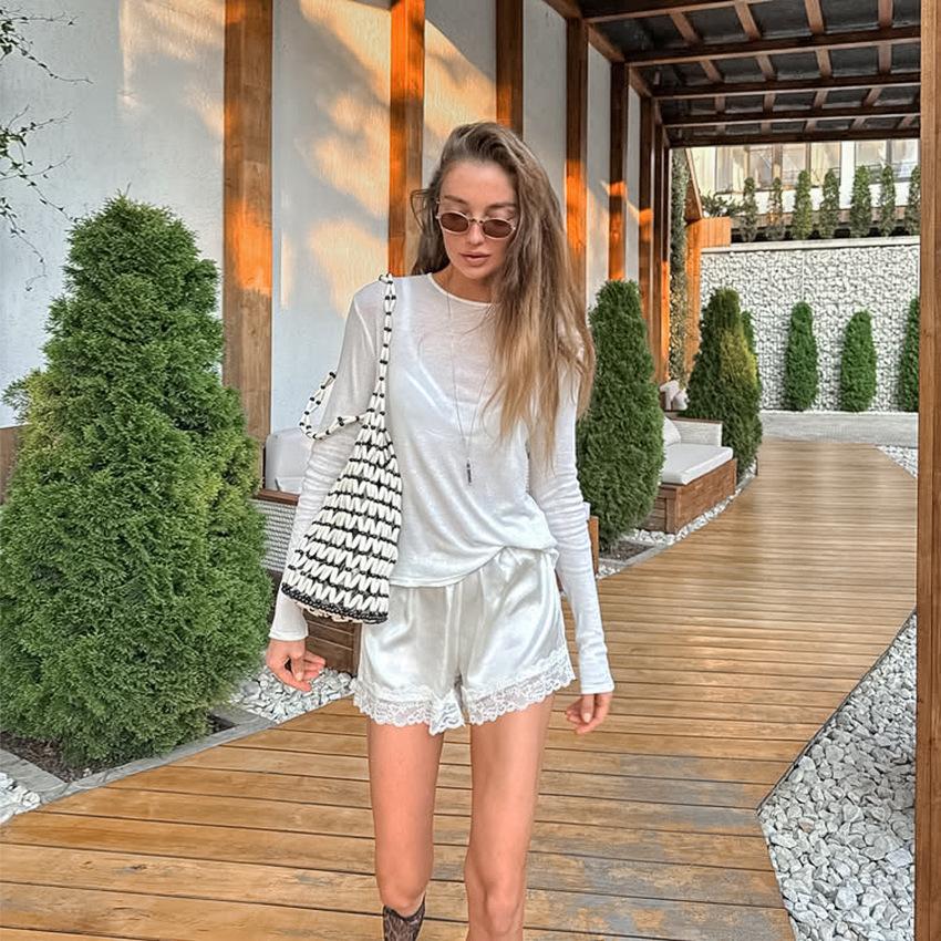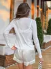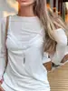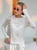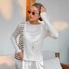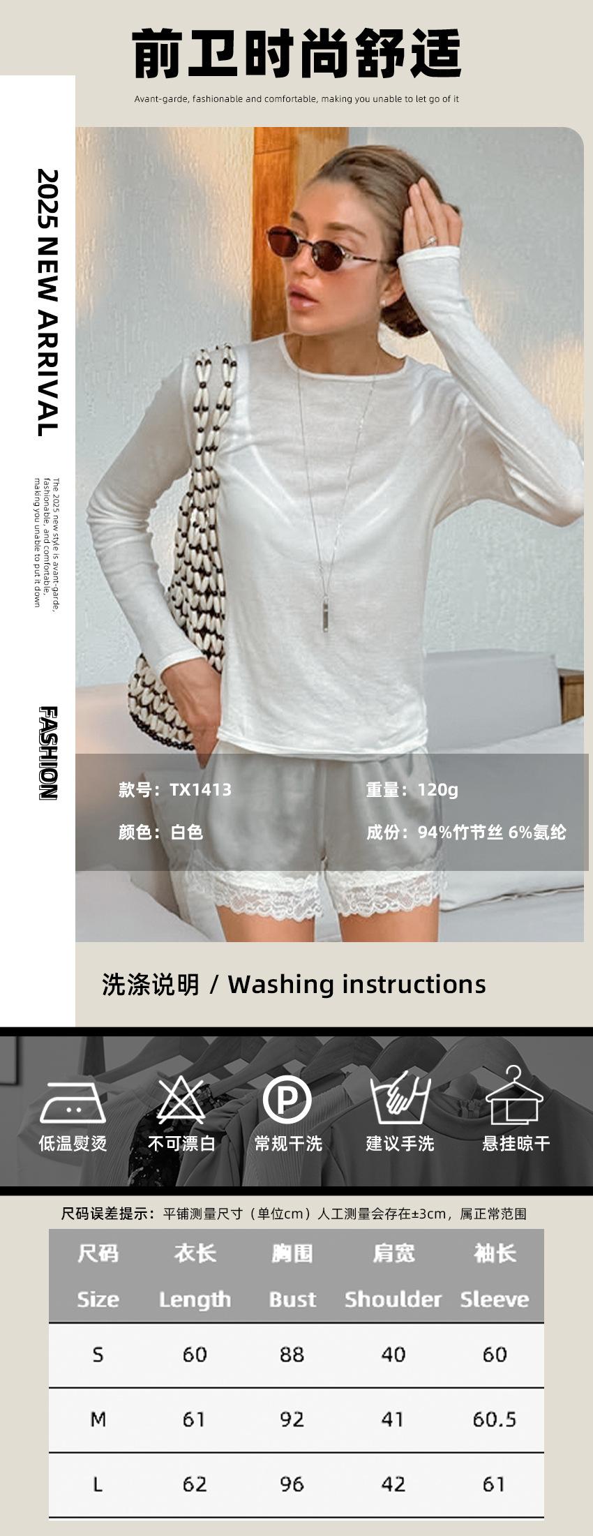 Playera de manga larga de algodón de bambú blanco, moderna y sencilla, para mujer, otoño 2025, ropa interior de alta gama, camiseta básica de cuello redondo, ropa de mujer