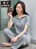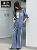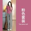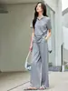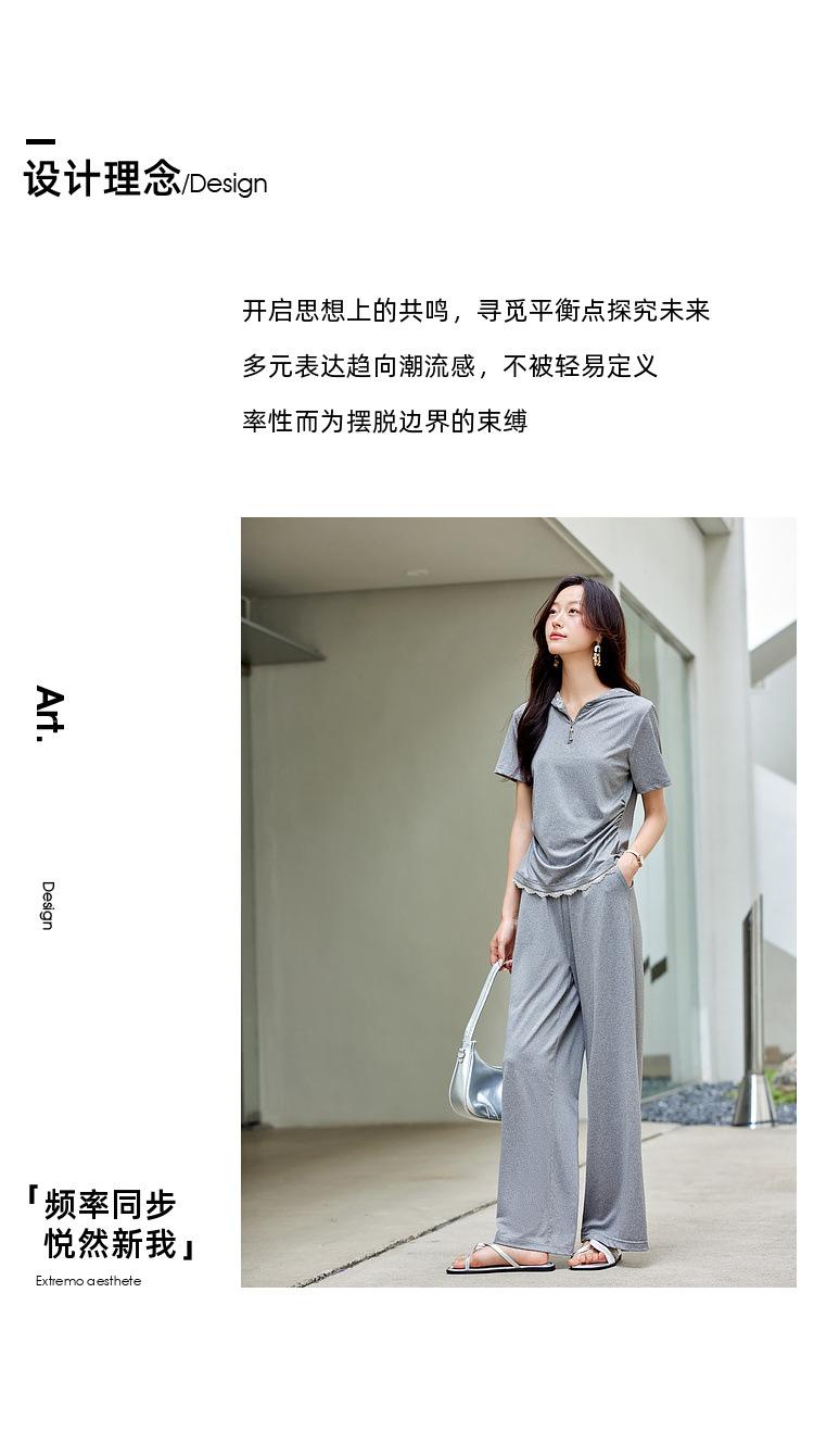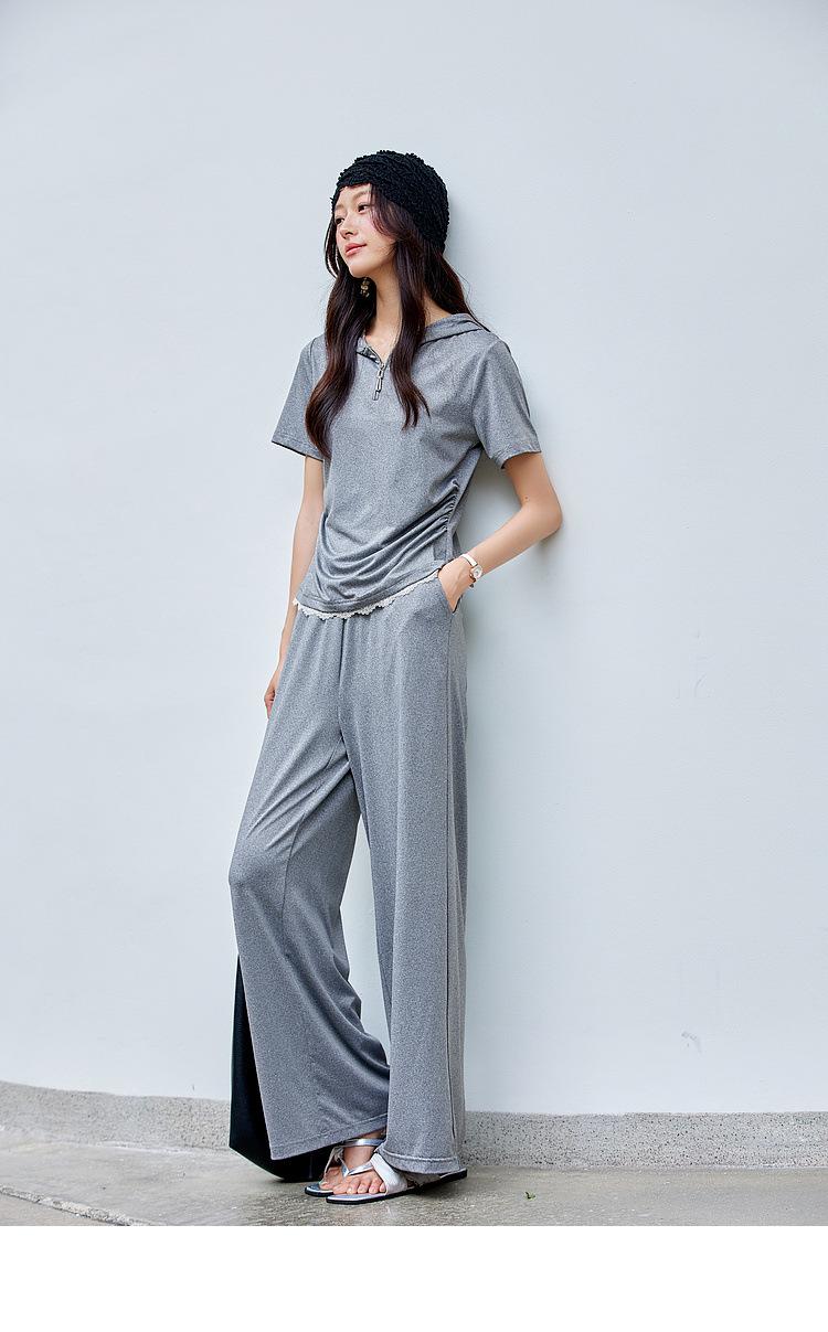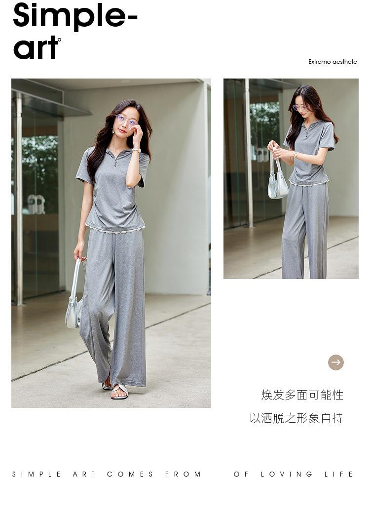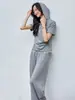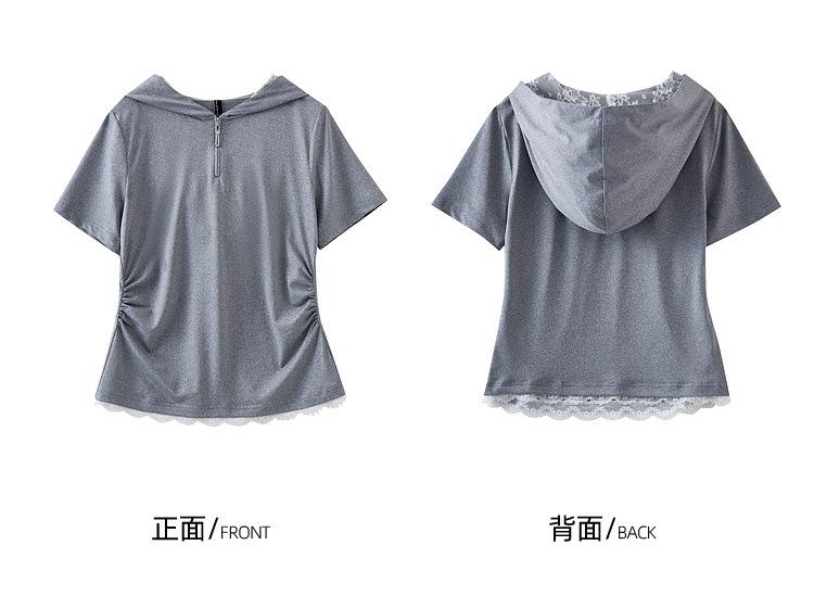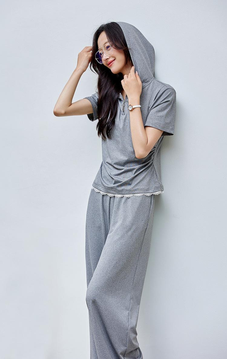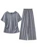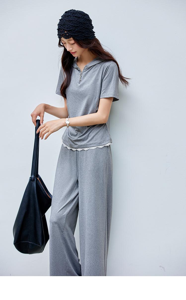 Conjunto de dos piezas casual femenino de Zhenxi con camiseta de manga corta con capucha y encaje y pantalones de pierna ancha Sq917