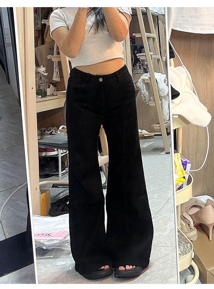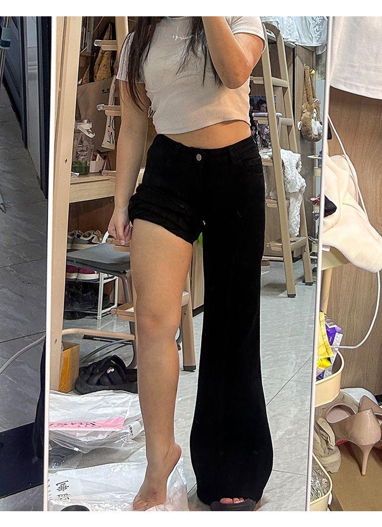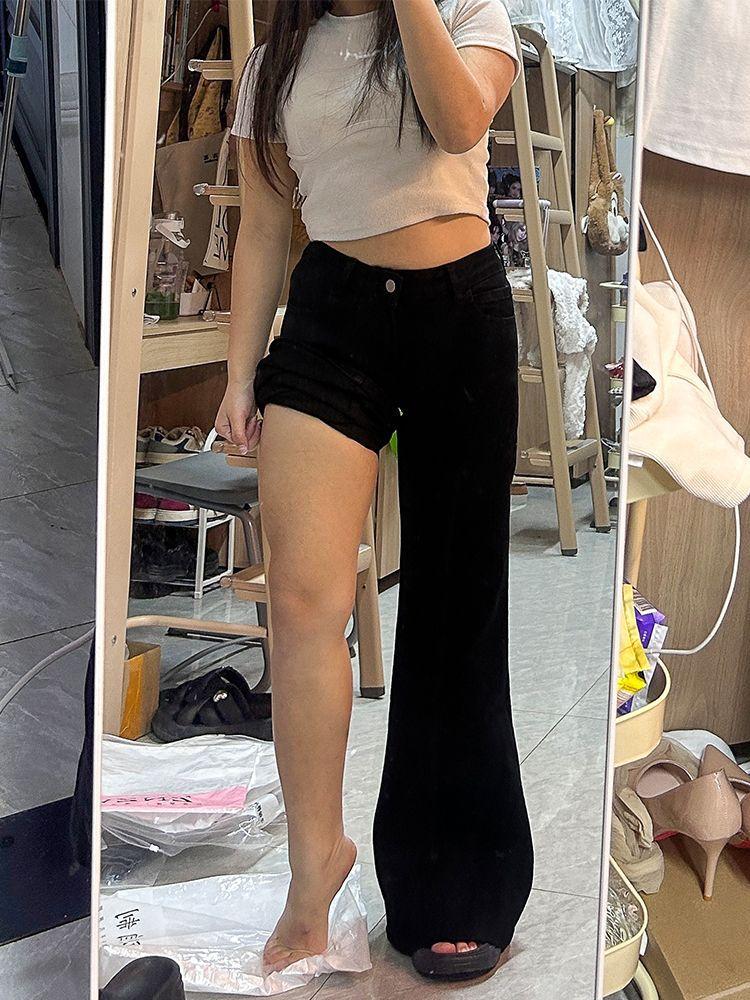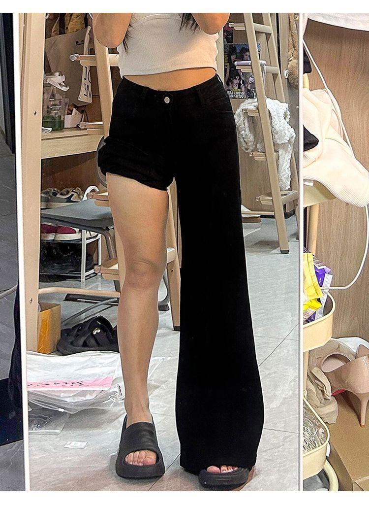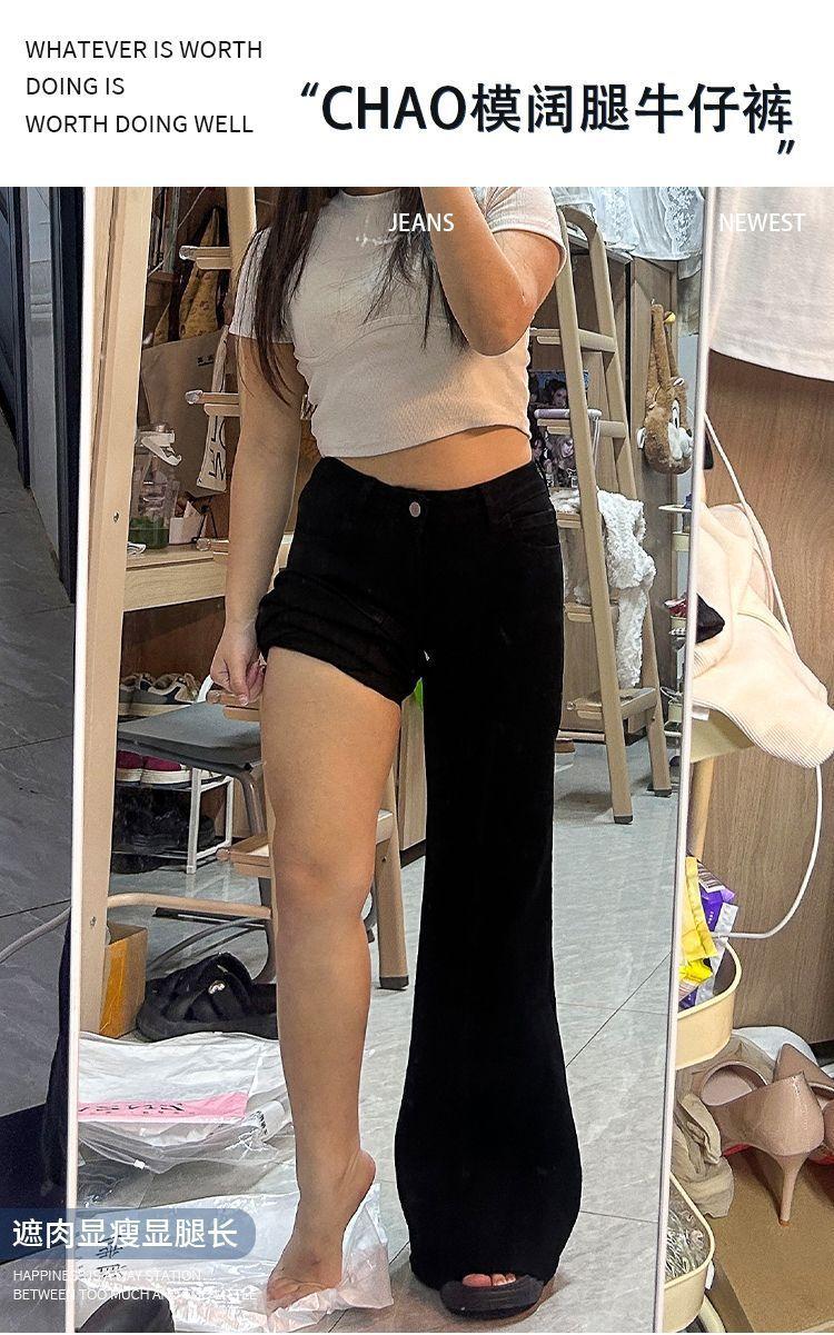 Jeans Negros Slimless para Mujer Primavera Nuevo talla grande chica gordita Sueltos Adelgazantes Sueltos Pantalones de Pierna Ancha