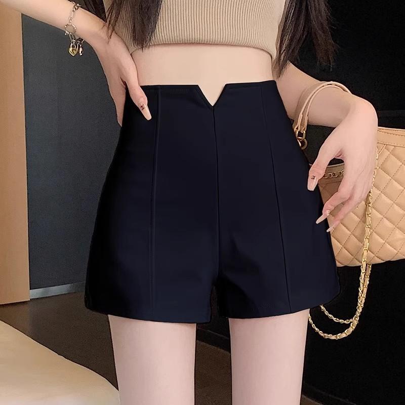 Shorts de traje blanco para mujer verano delgado 2025 nuevo petite cintura alta ajustados elásticos chica hot línea A pantalones calientes