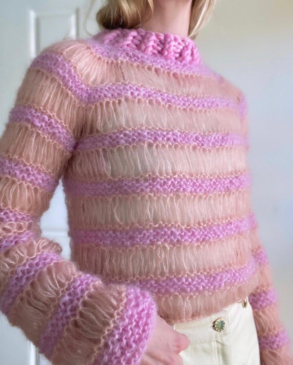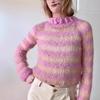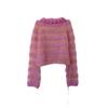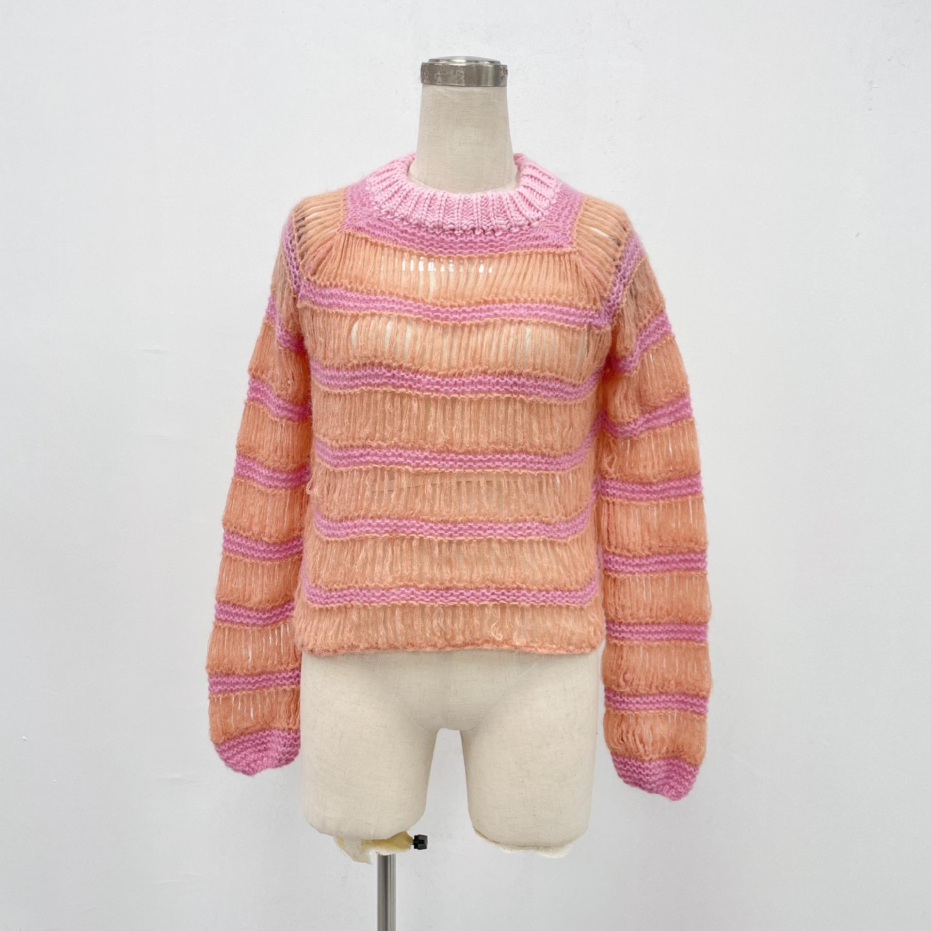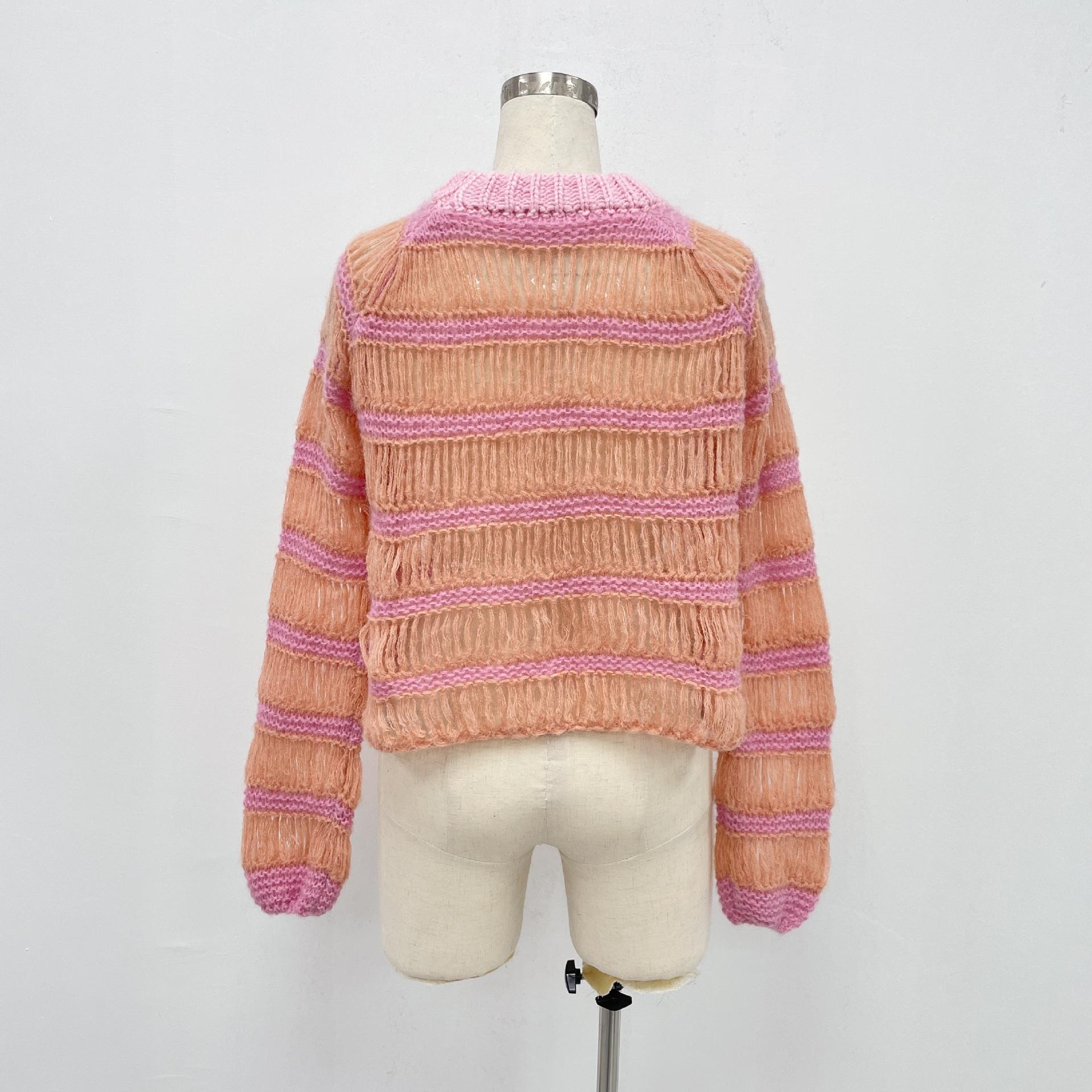 Otoño e Invierno Transfronterizo 2025 Moda Europea y Americana Diseño de Suéter con Textura de Rayas Rosadas Tejido de Punto Cuello Redondo Suéter Jersey para Mujer
