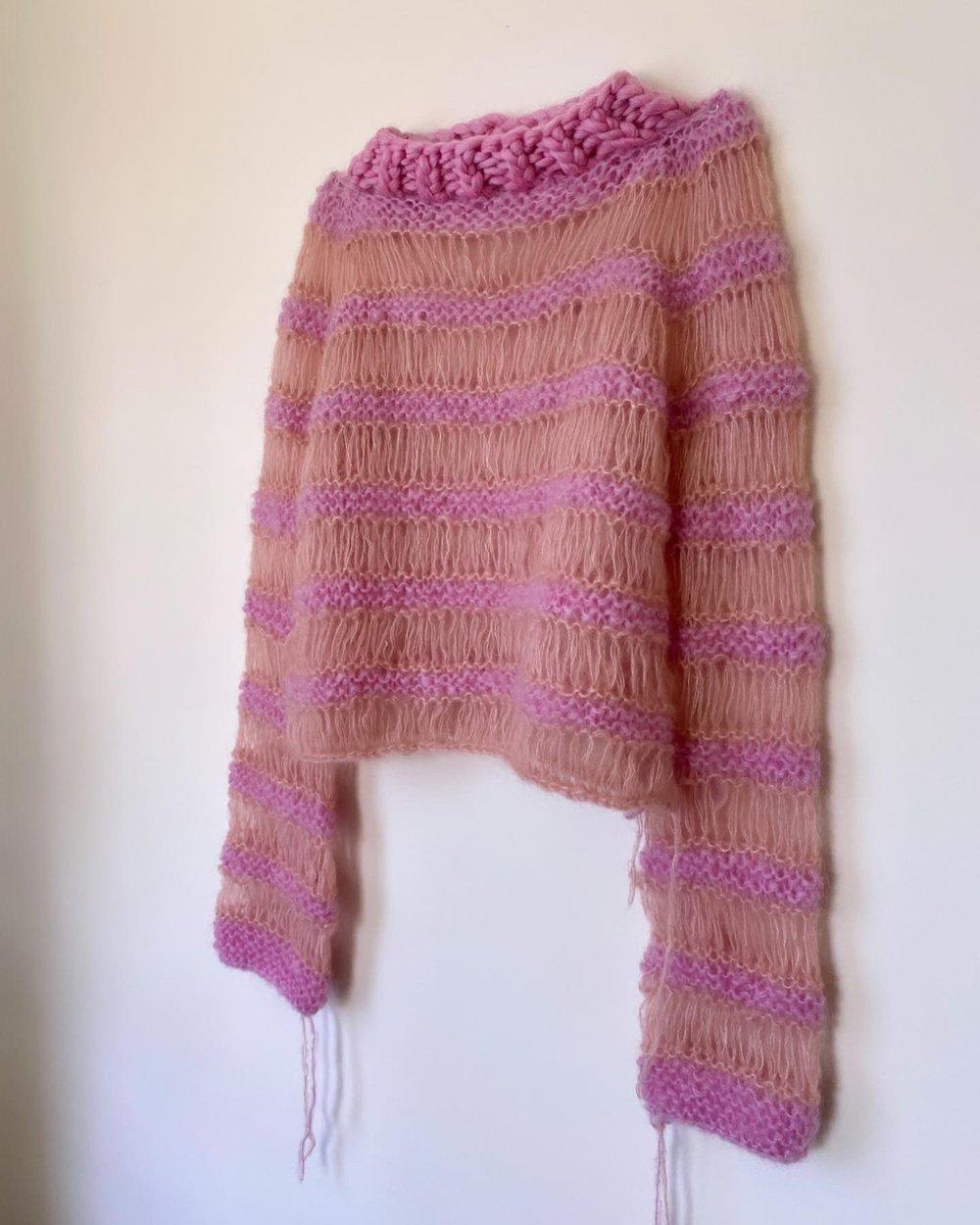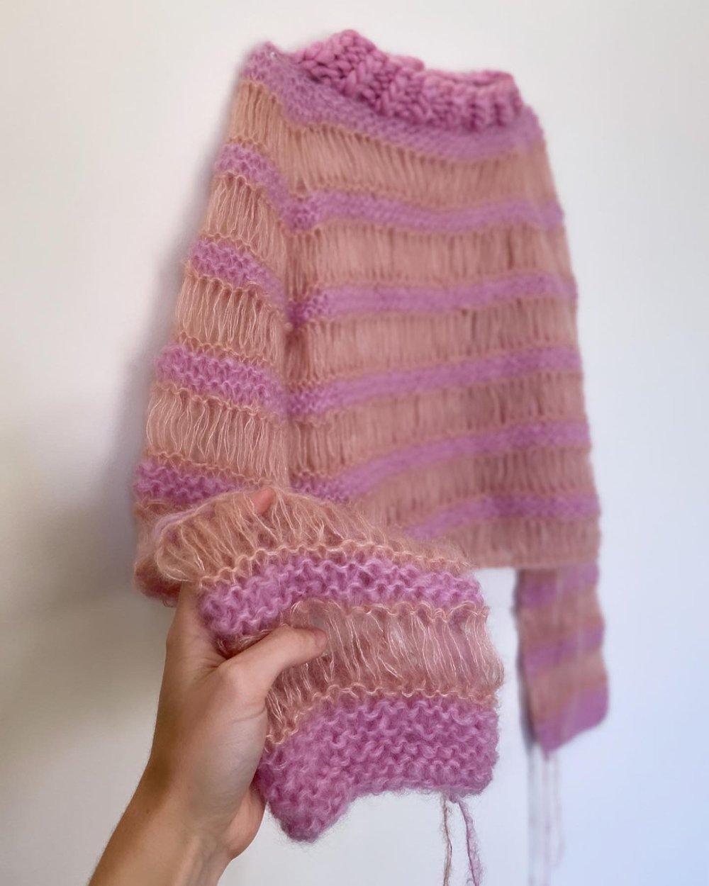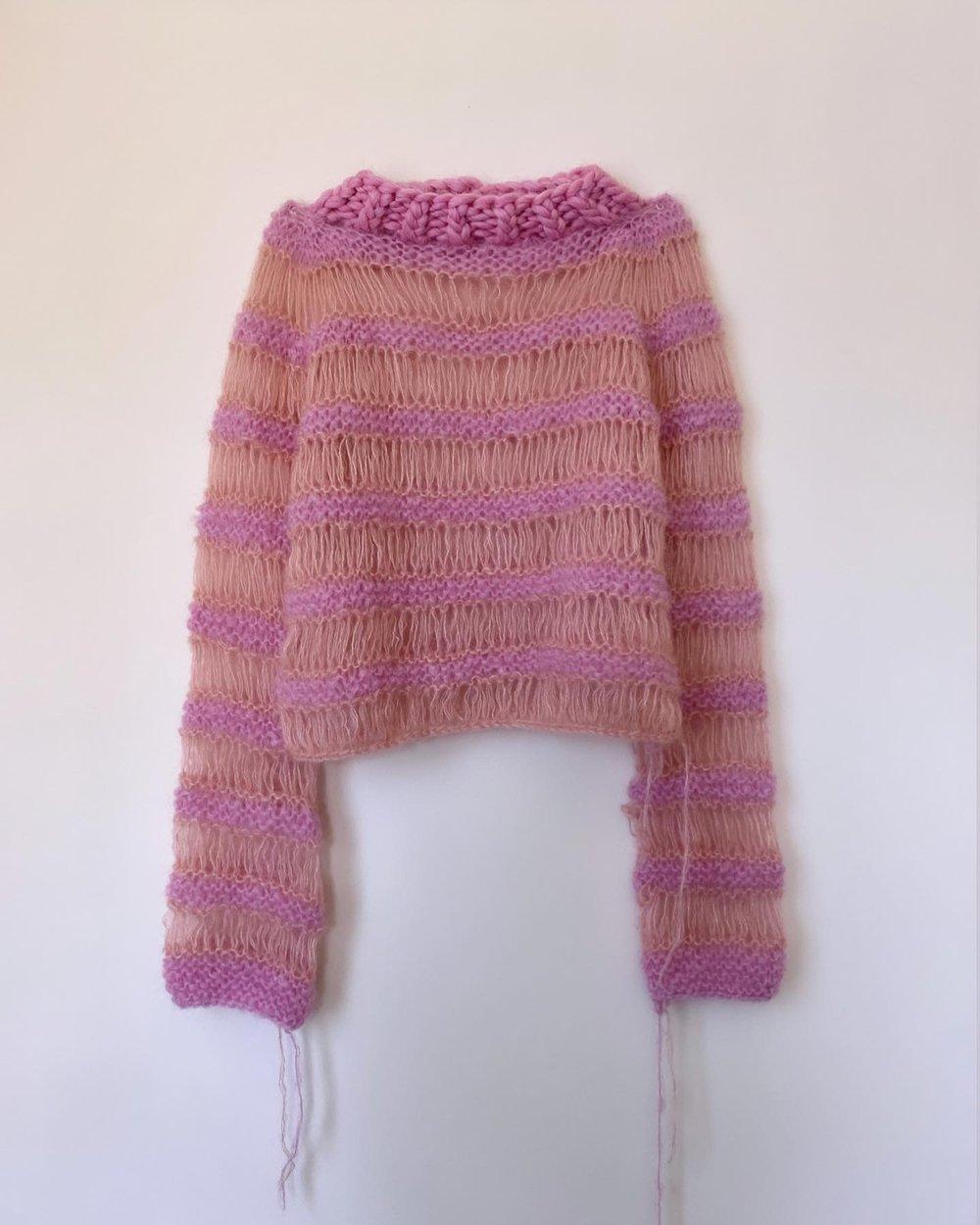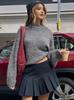Otoño e Invierno Transfronterizo 2025 Moda Europea y Americana Diseño de Suéter con Textura de Rayas Rosadas Tejido de Punto Cuello Redondo Suéter Jersey para Mujer