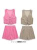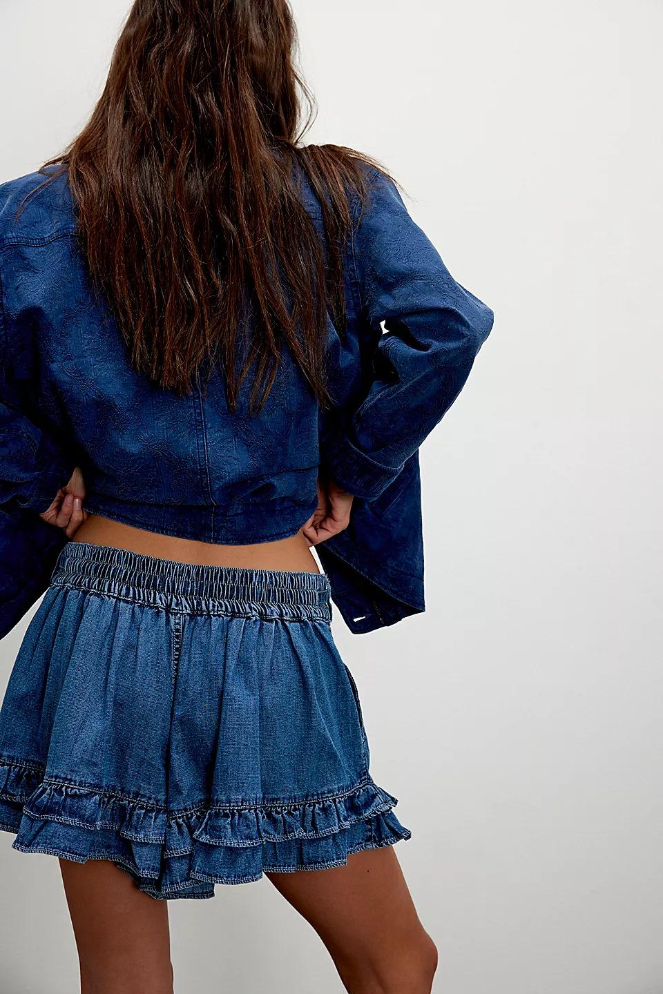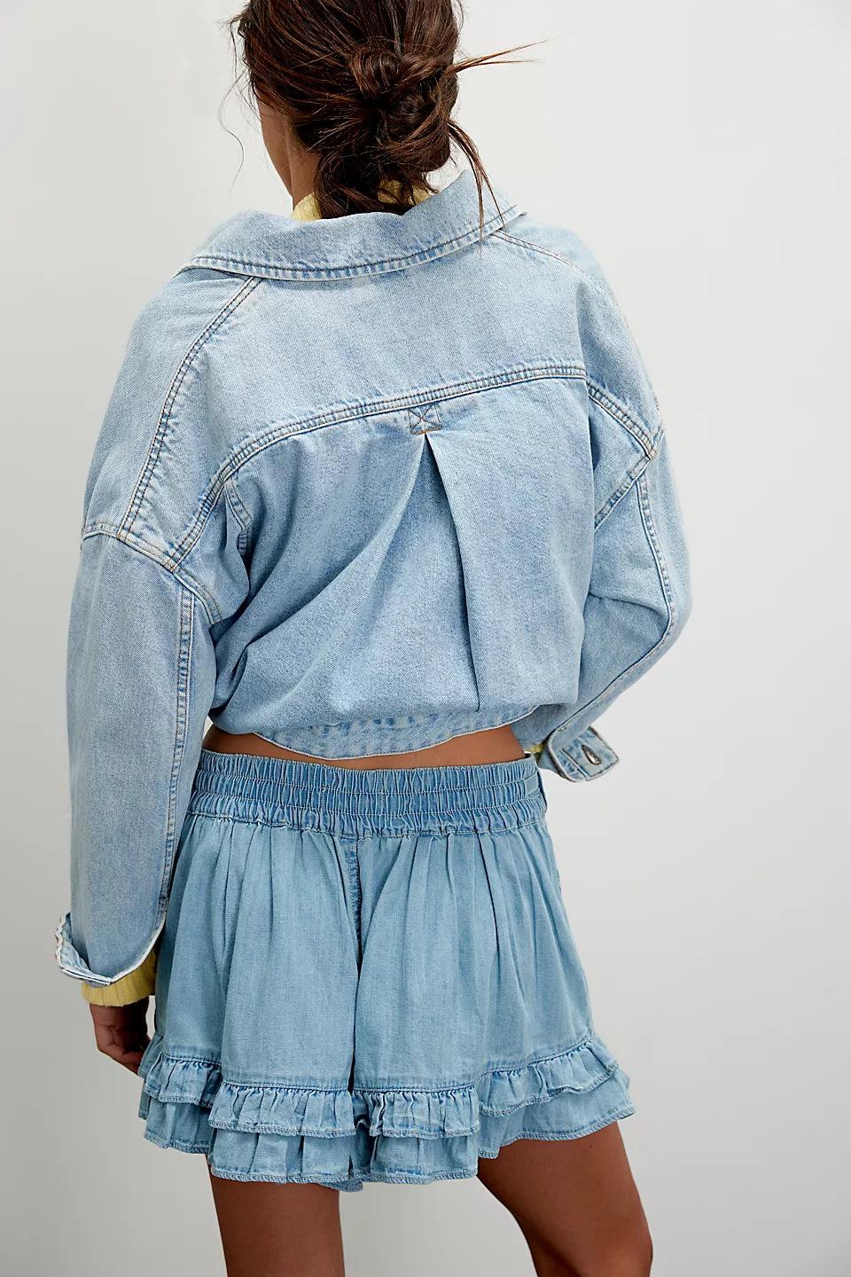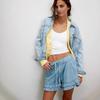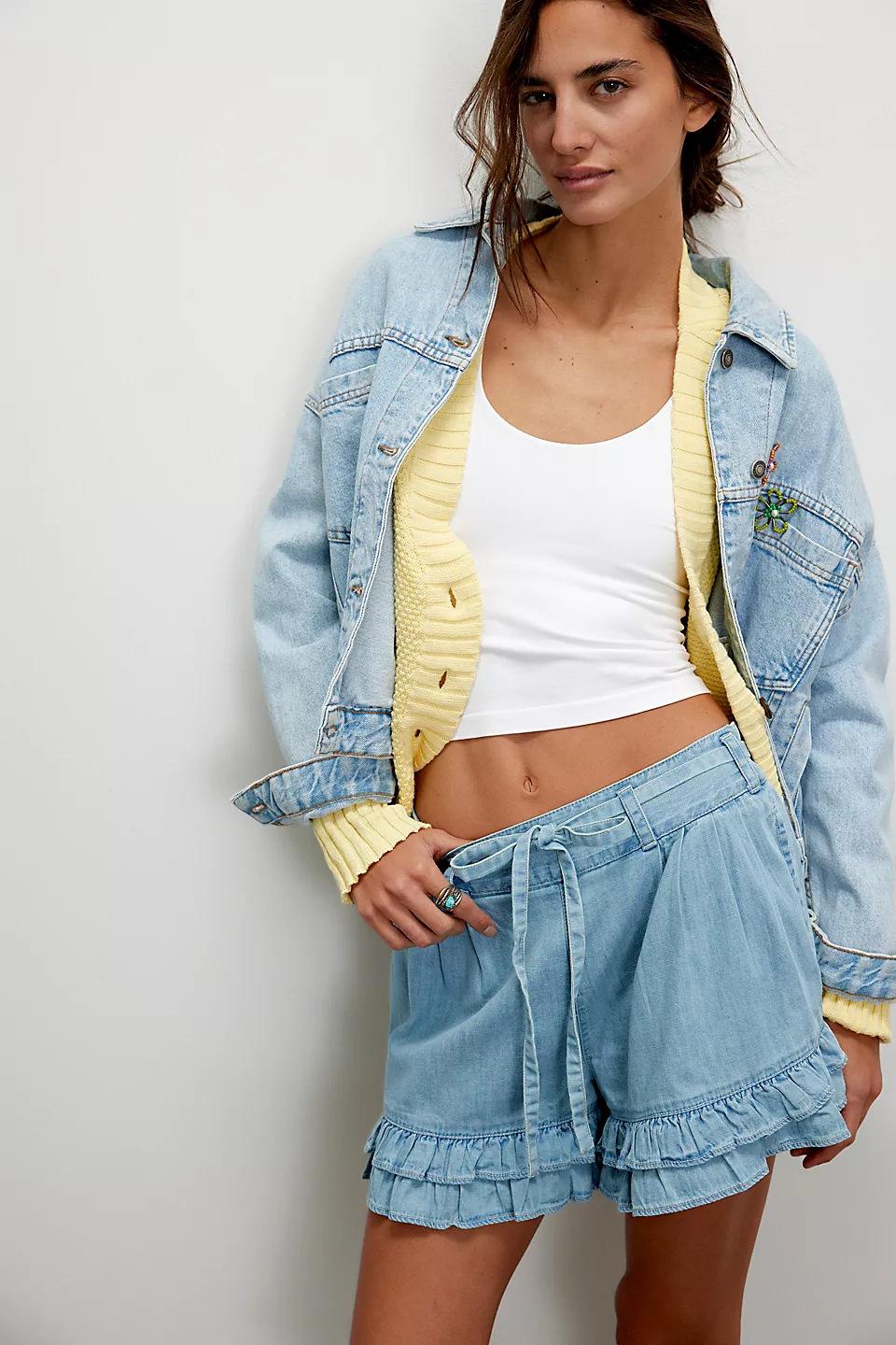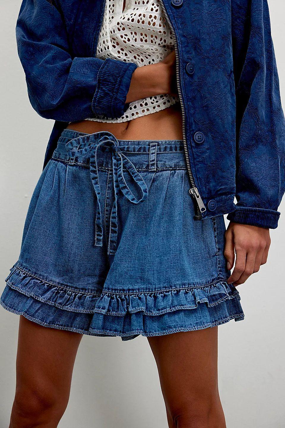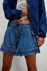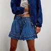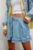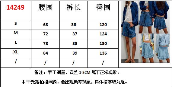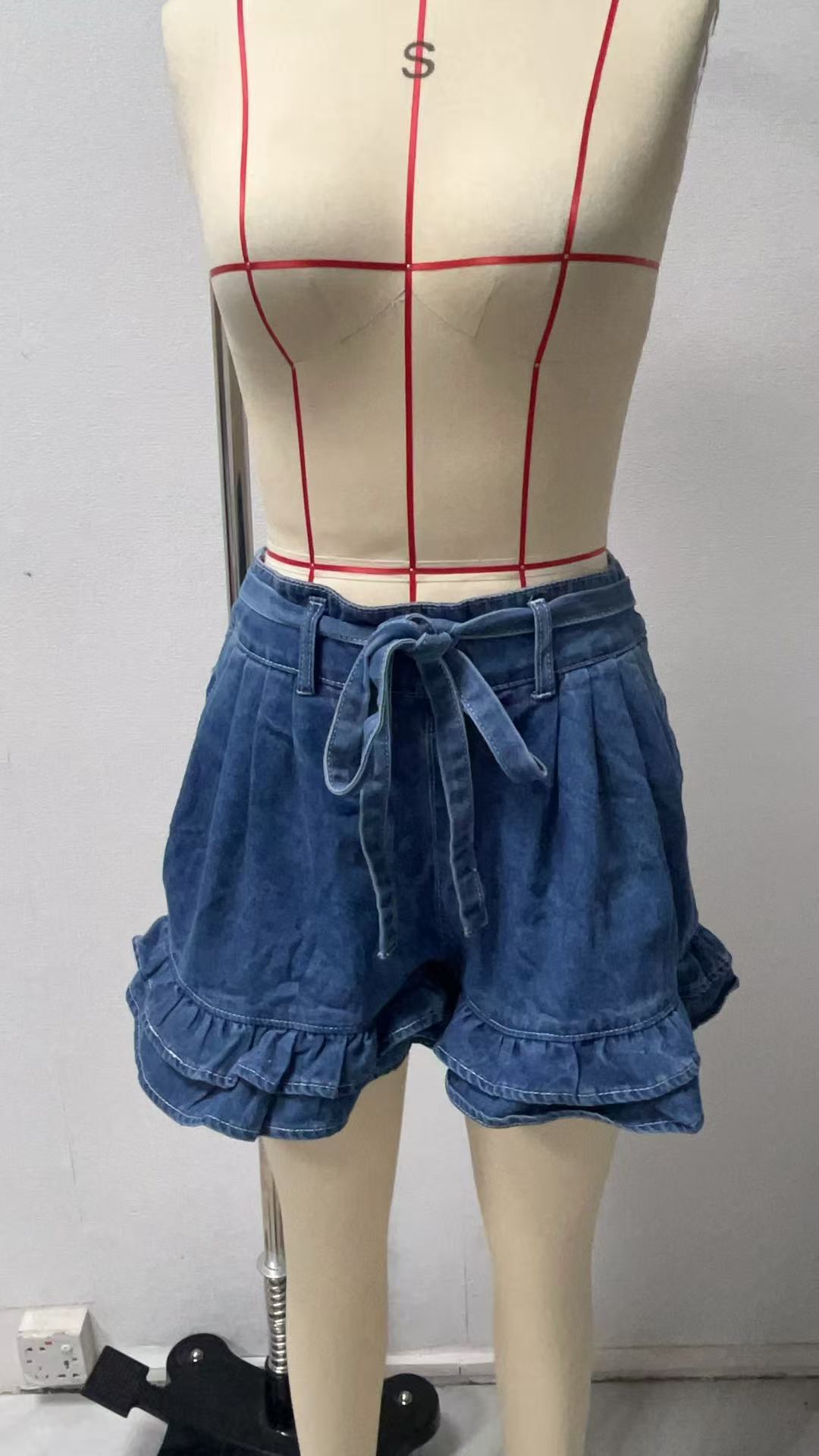 Exportación Transfronteriza 2025 Nuevos Shorts de Mezclilla Plisados con Encaje y Volantes de Cintura Elástica Media para Mujer
