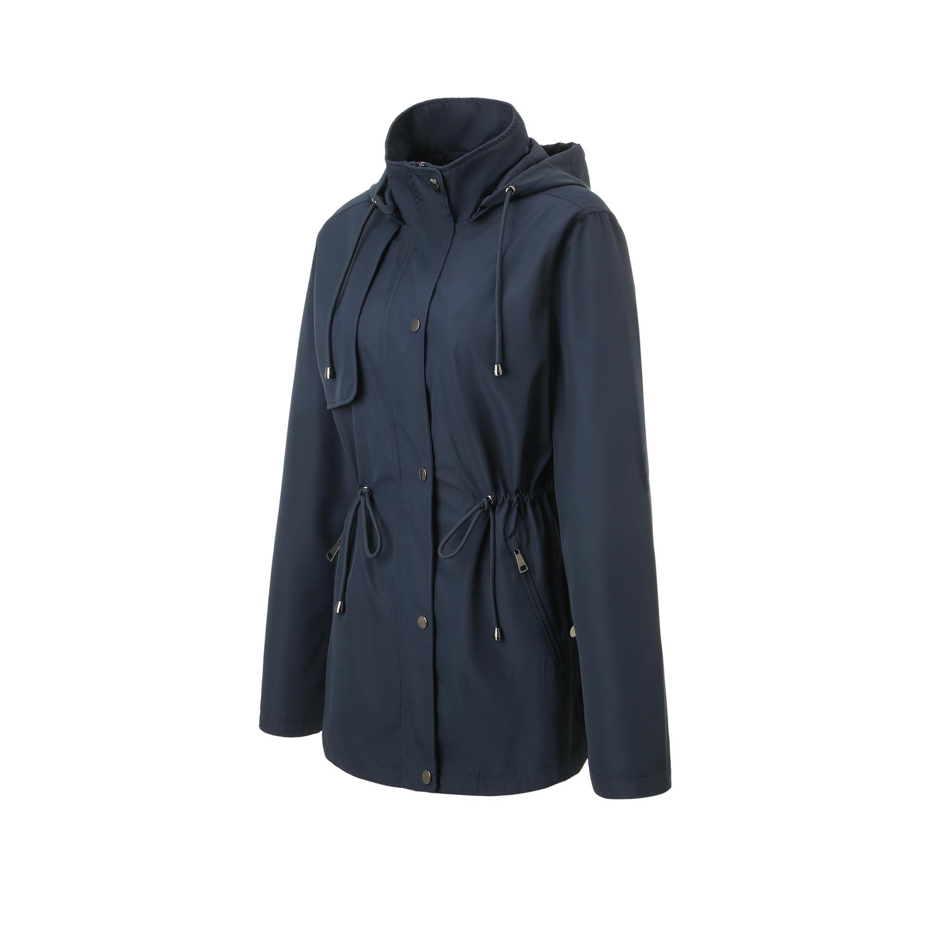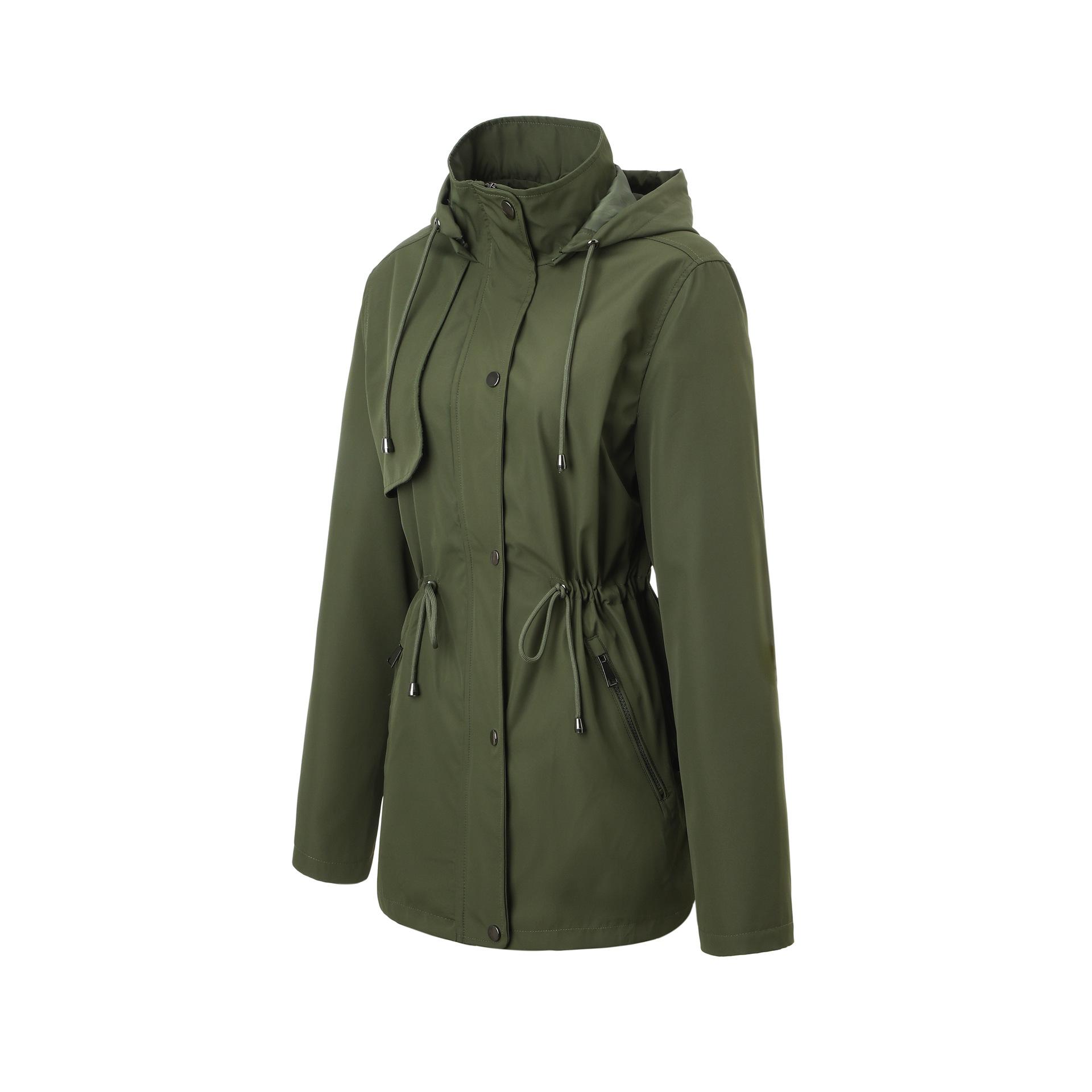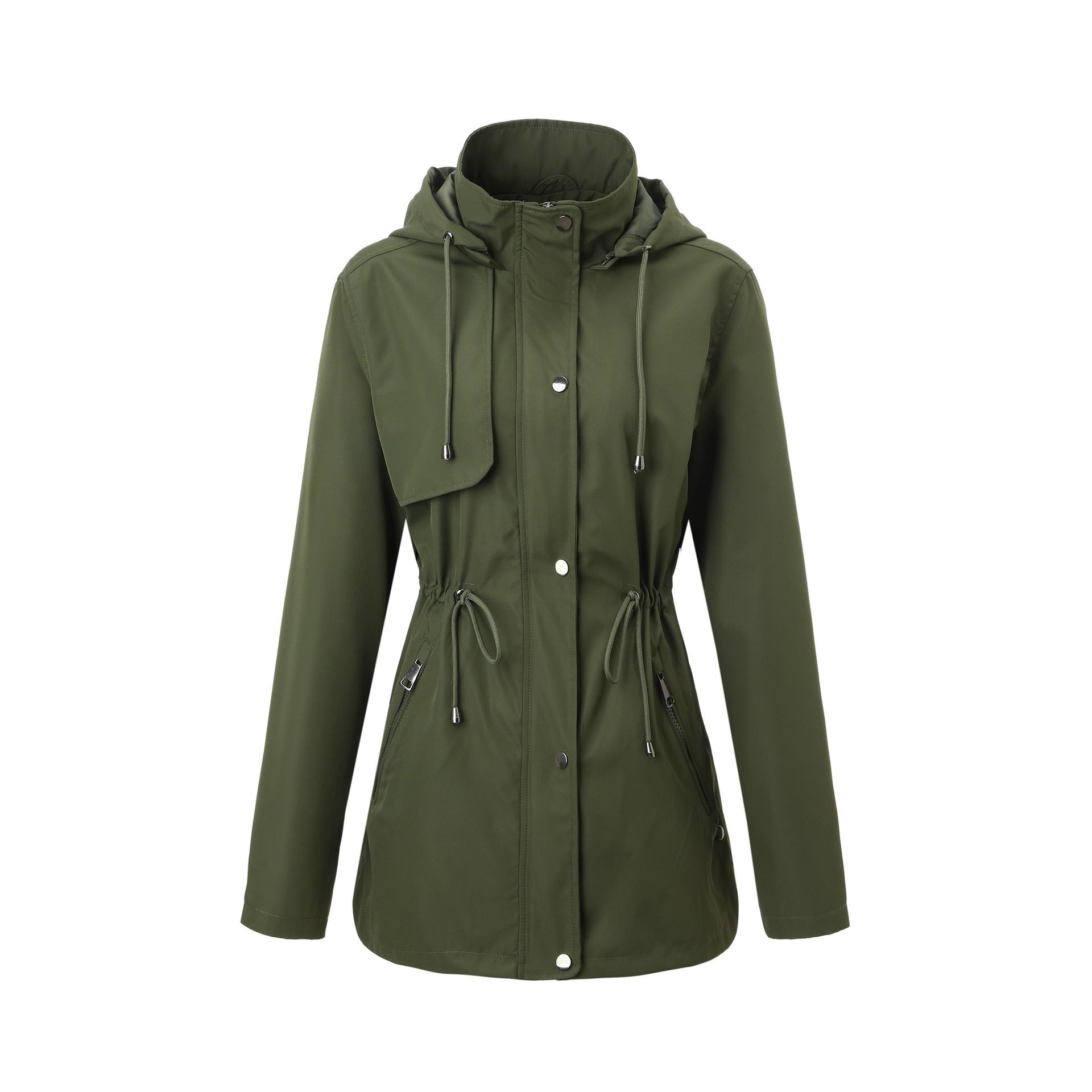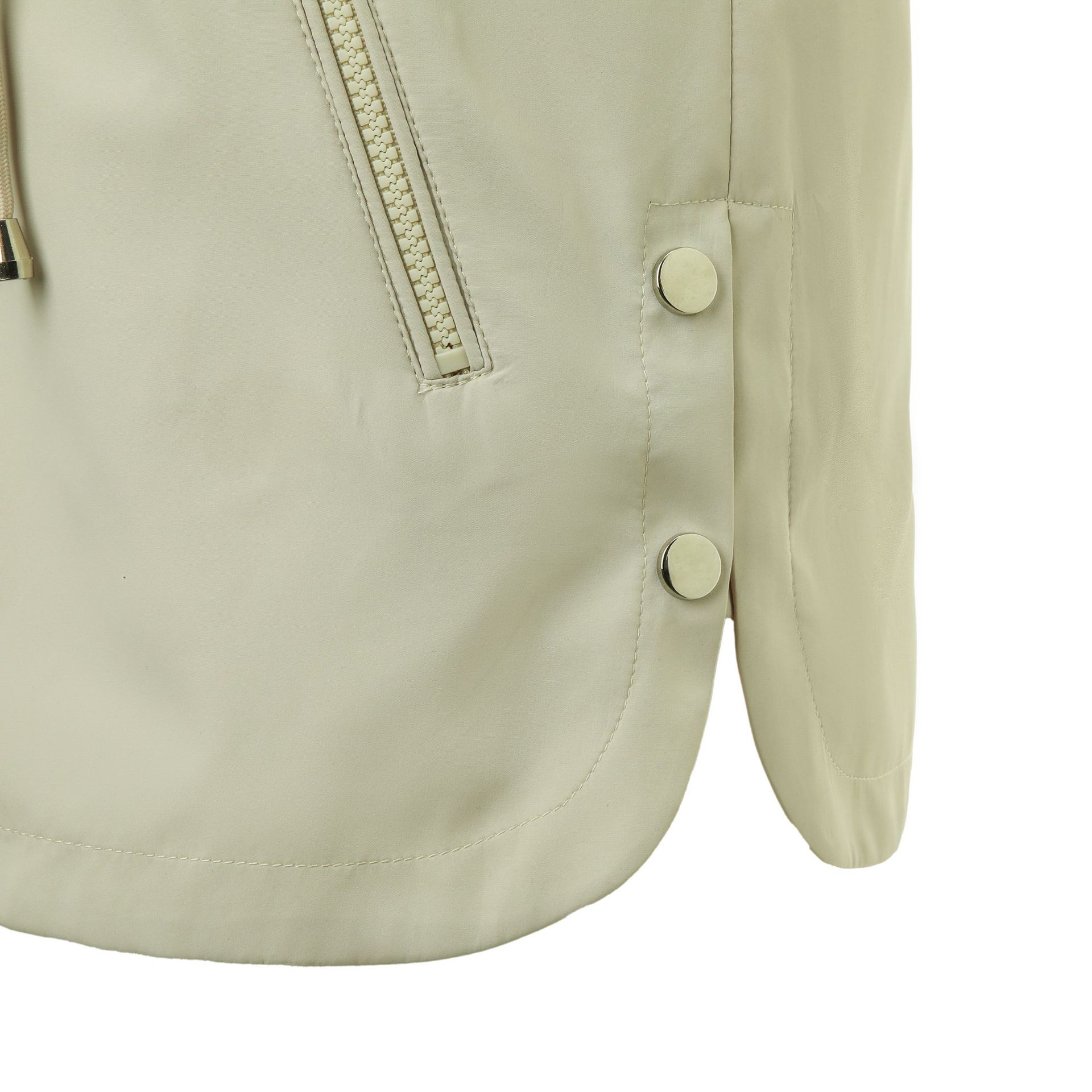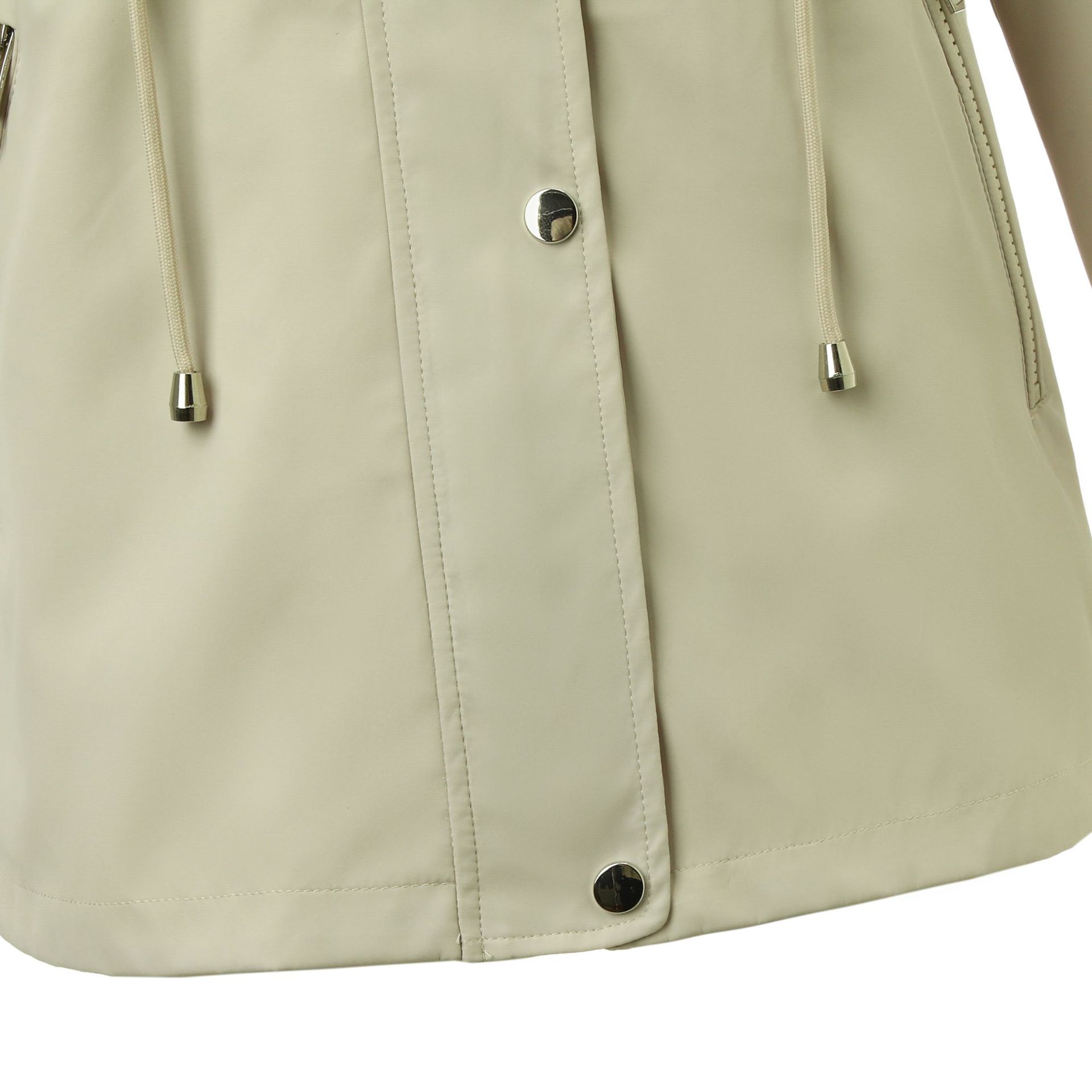Abrigo trench beige de gran venta para mujer con capucha y solapa, doble tapeta con cremallera + cintura con cordón, tres colores en stock, fábrica directa al por mayor