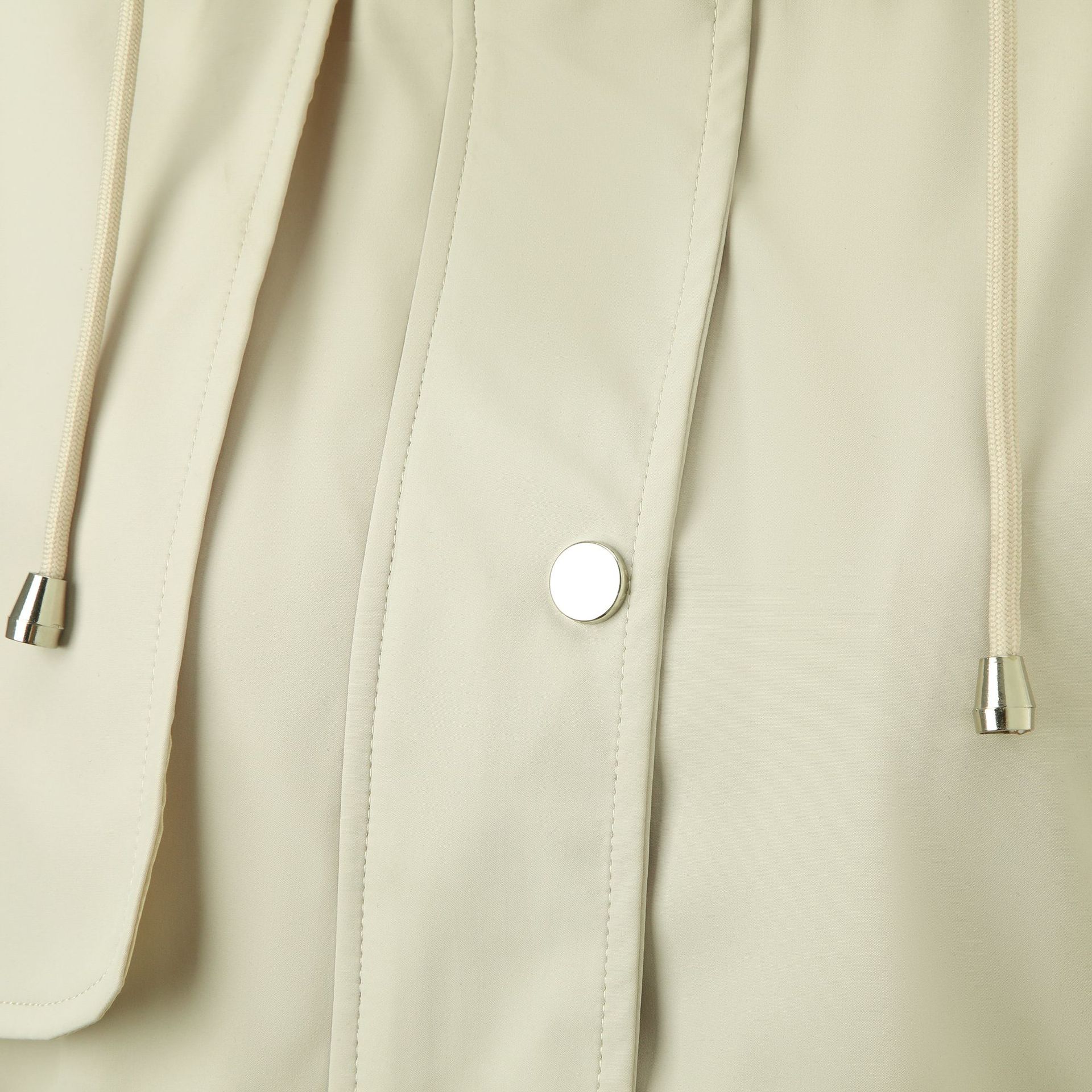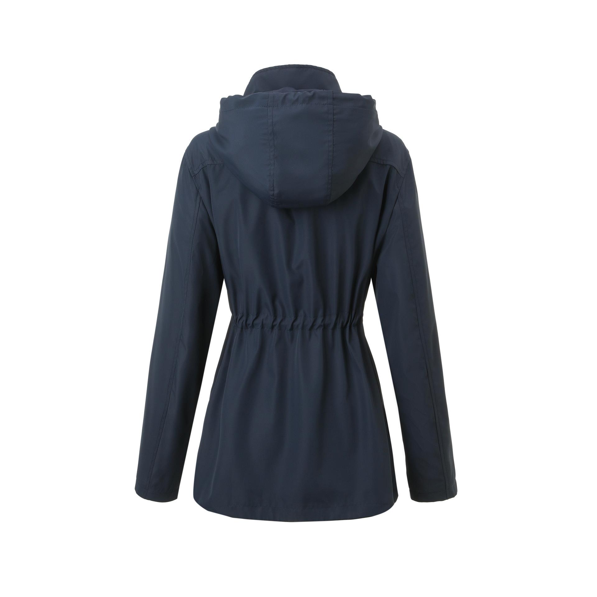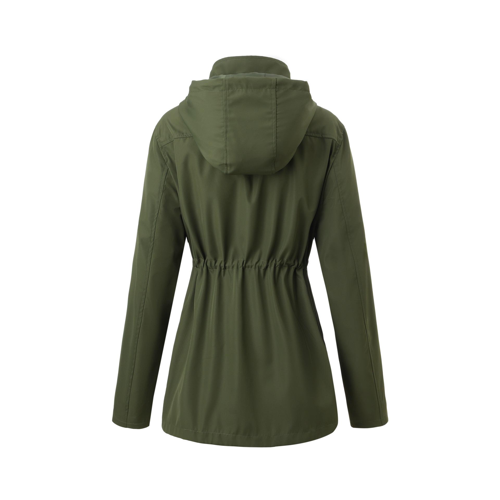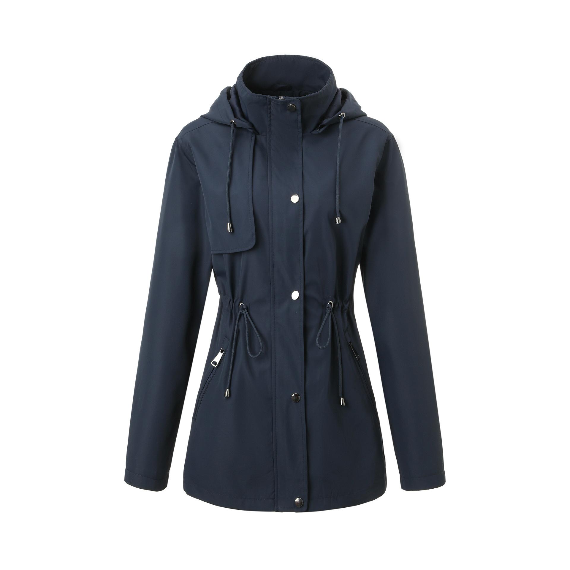 Abrigo trench beige de gran venta para mujer con capucha y solapa, doble tapeta con cremallera + cintura con cordón, tres colores en stock, fábrica directa al por mayor