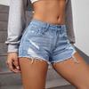 Shorts de mezclilla de exportación Xintang para mujer 2025 Nuevos pantalones capri elásticos rasgados de gran venta Shorts de mezclilla lavados a la moda