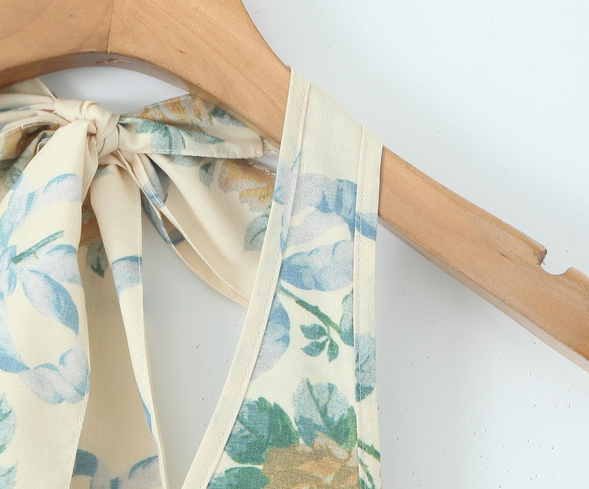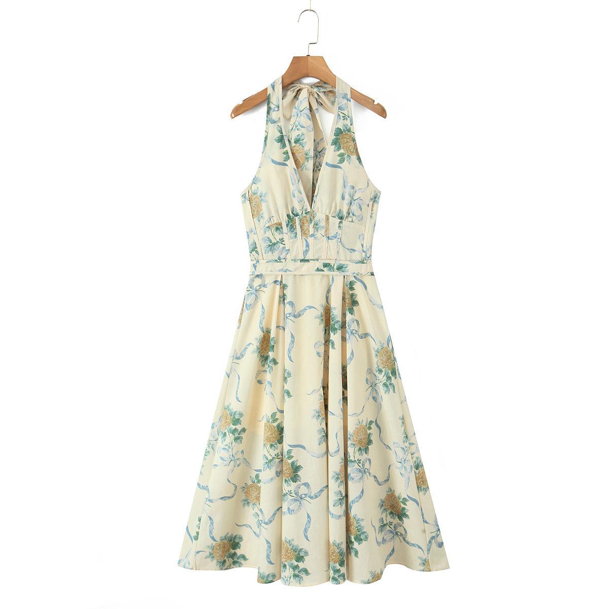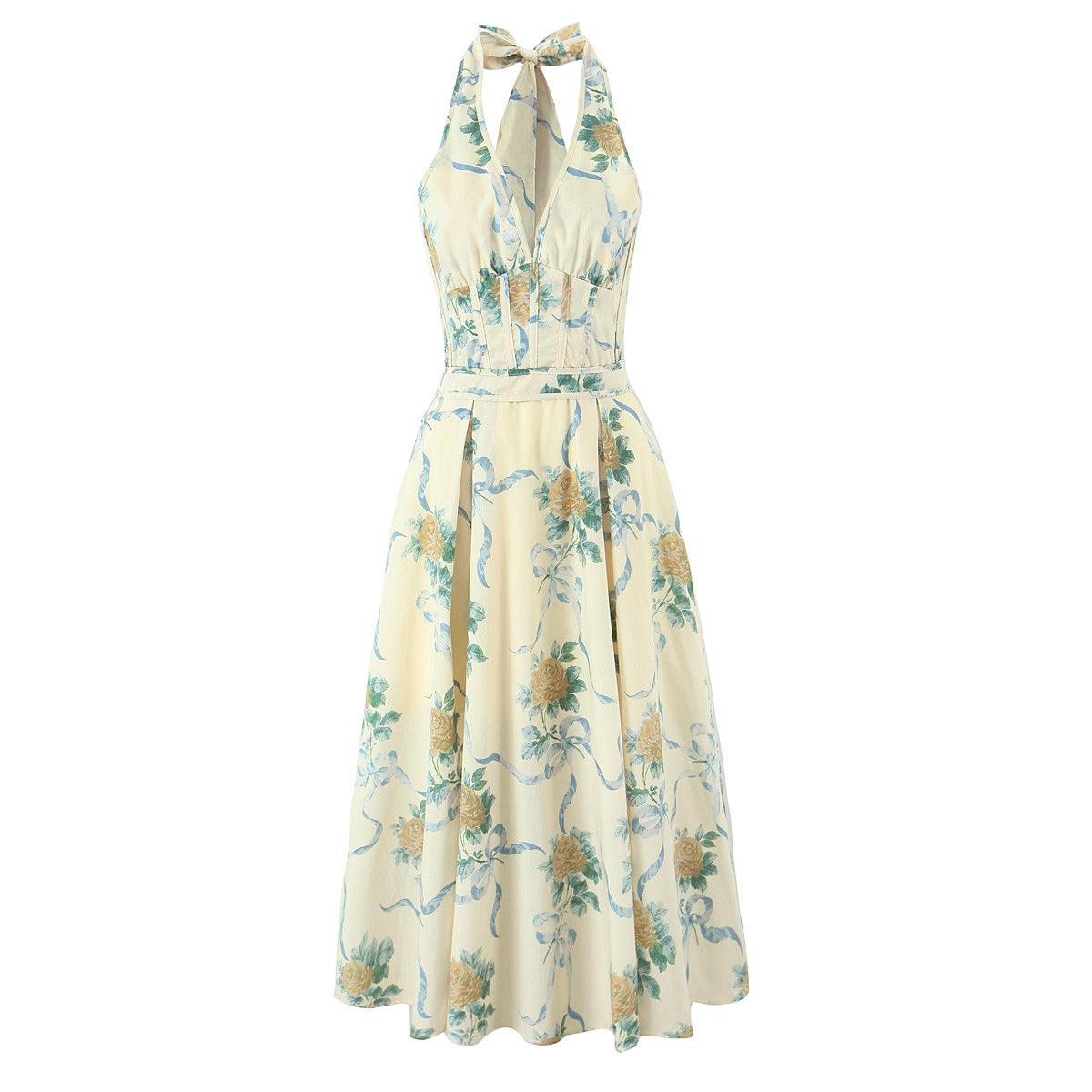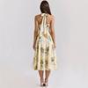 Casa Mismo Estilo Estilo Francés Estilo Vacacional Cuello Colgante Cuello en V Profundo Sin Espalda Tirantes Cintura Ceñida Estampado Vestido Midi-Largo Verano de Mujer