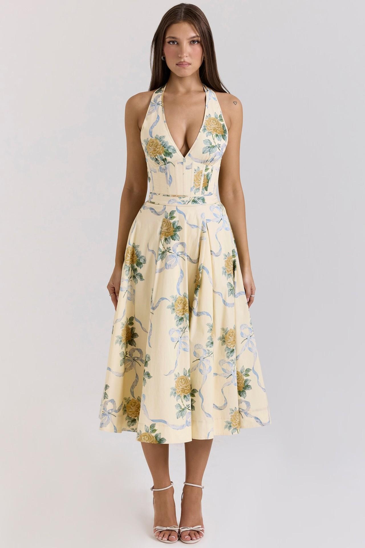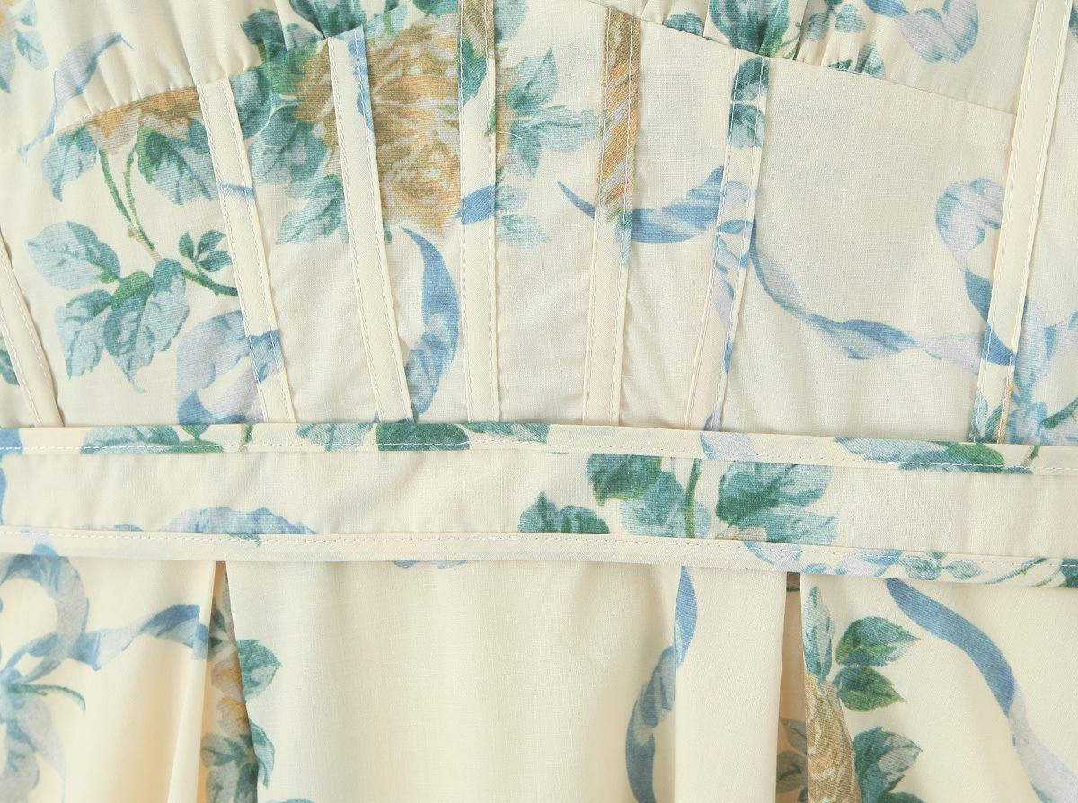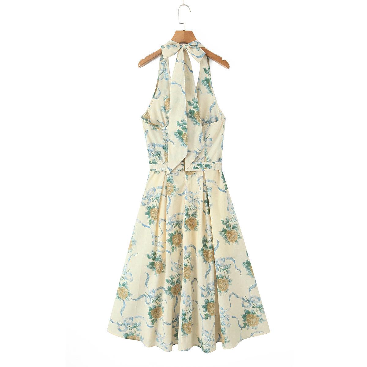 Casa Mismo Estilo Estilo Francés Estilo Vacacional Cuello Colgante Cuello en V Profundo Sin Espalda Tirantes Cintura Ceñida Estampado Vestido Midi-Largo Verano de Mujer