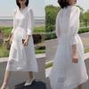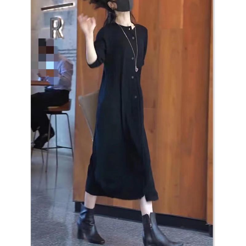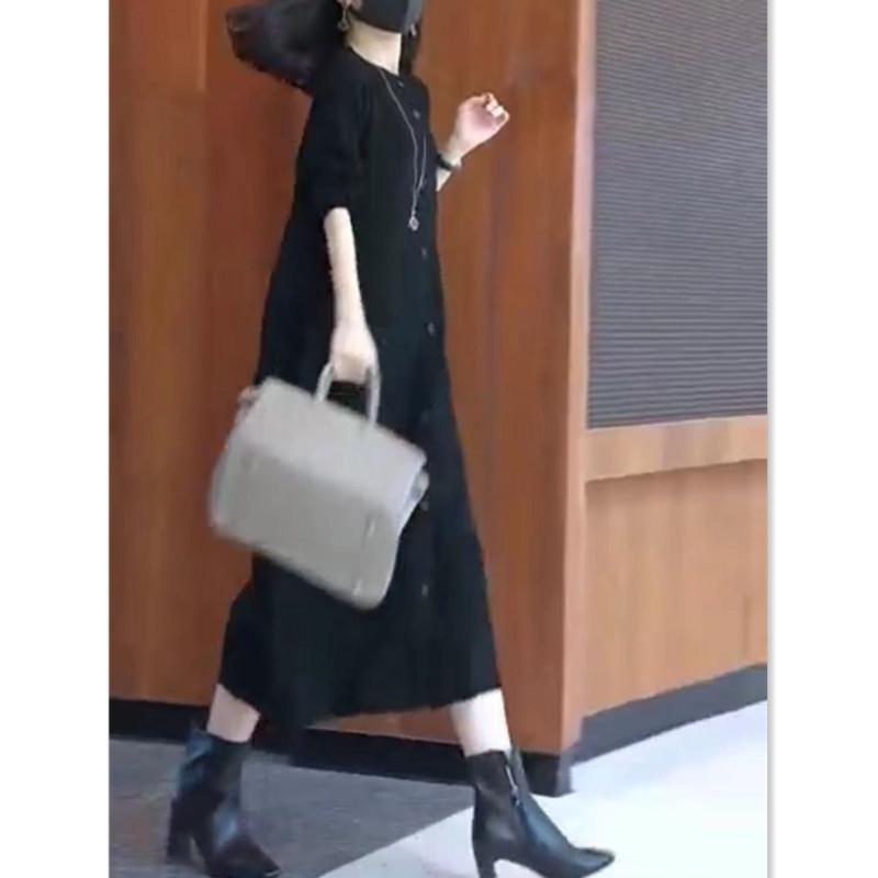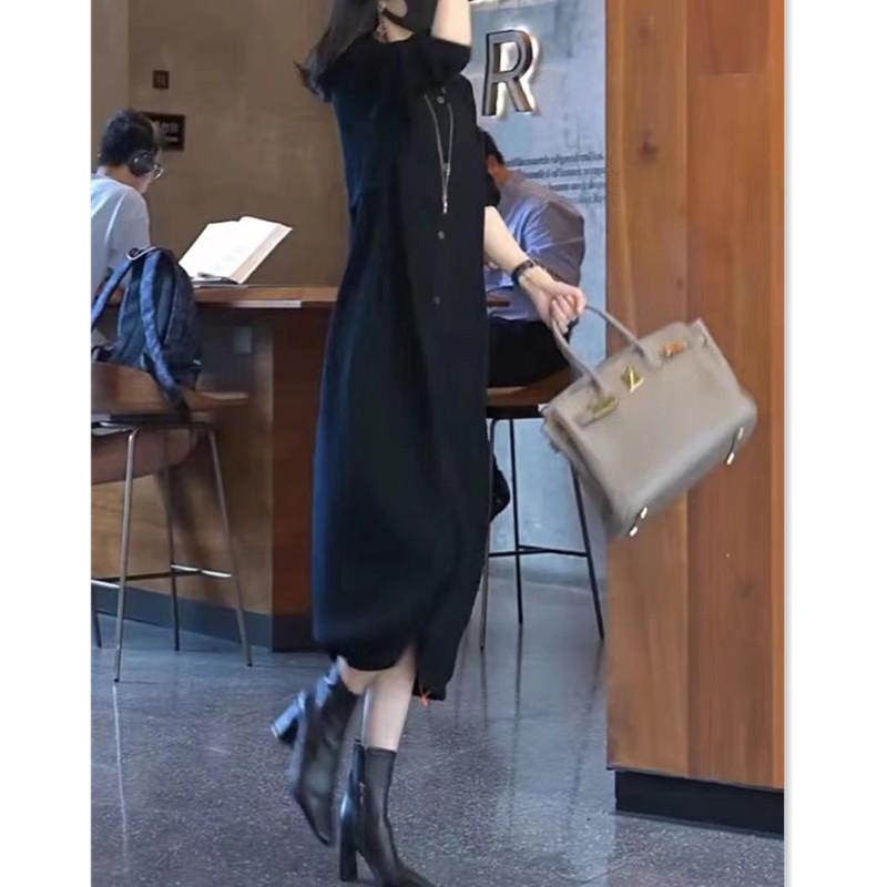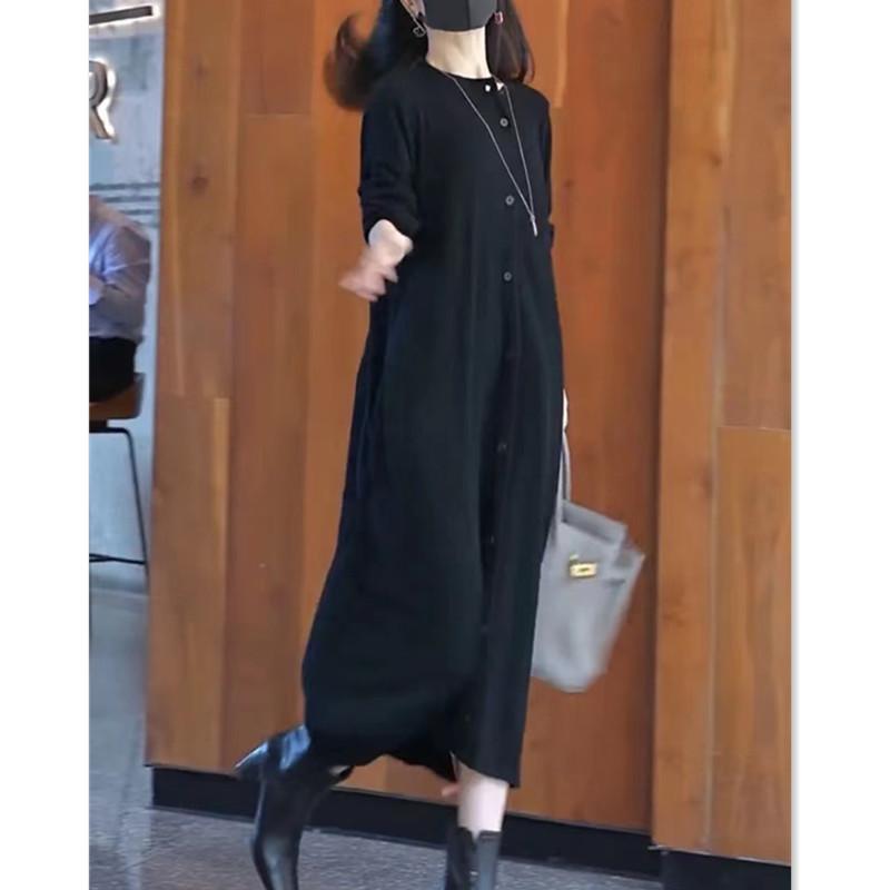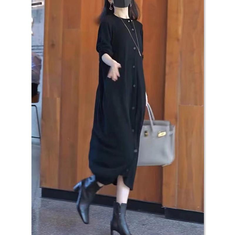 Vestido de otoño 22780 Big Beauty Yiyuan 2023, sencillo, de un solo pecho, holgado y adelgazante, de longitud media para mujer