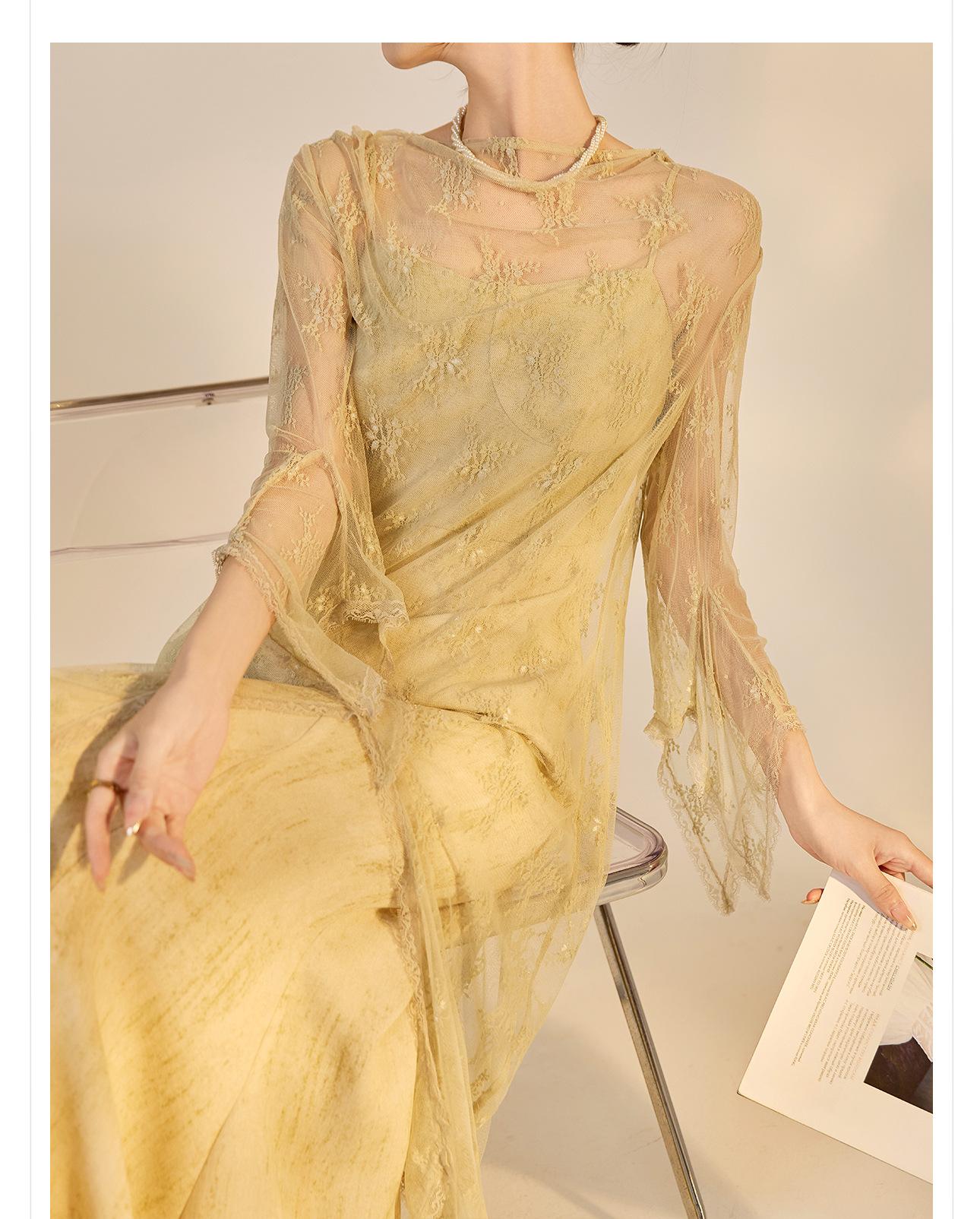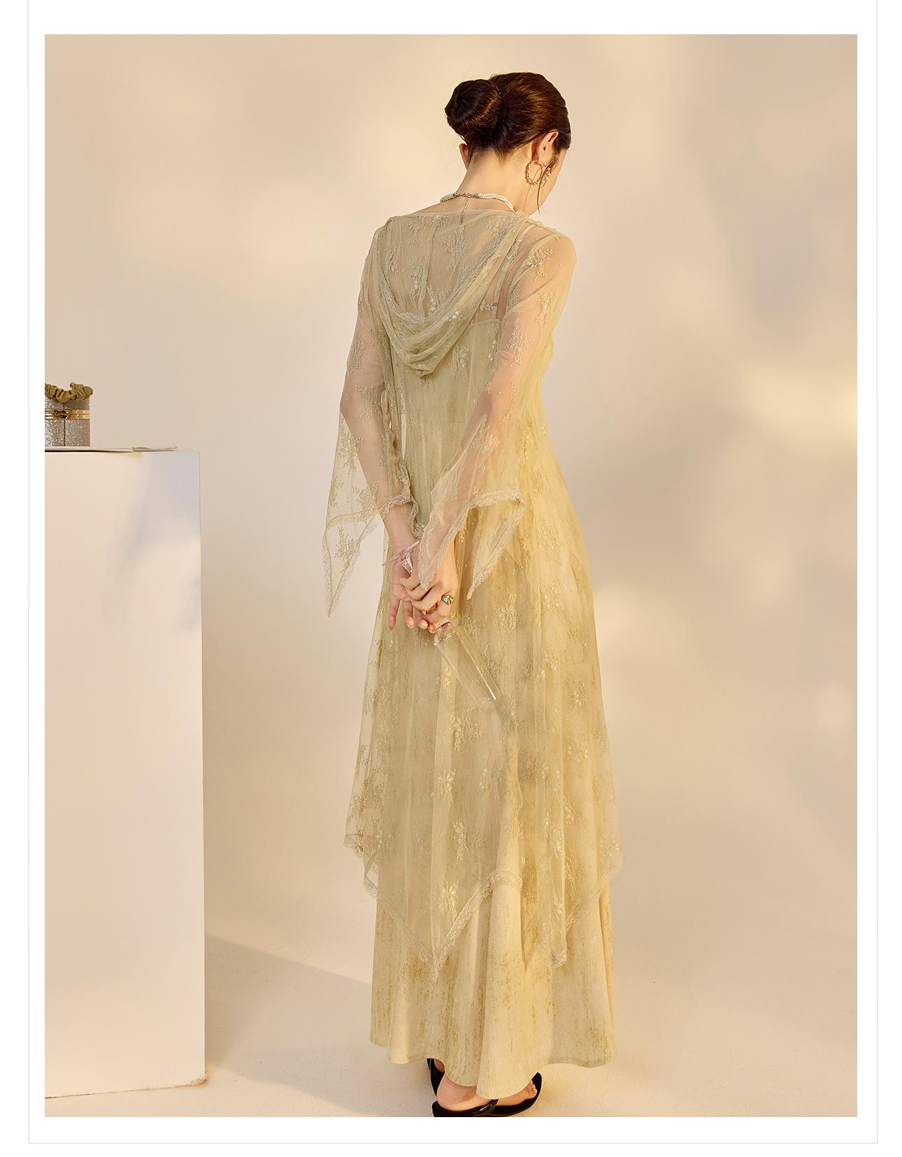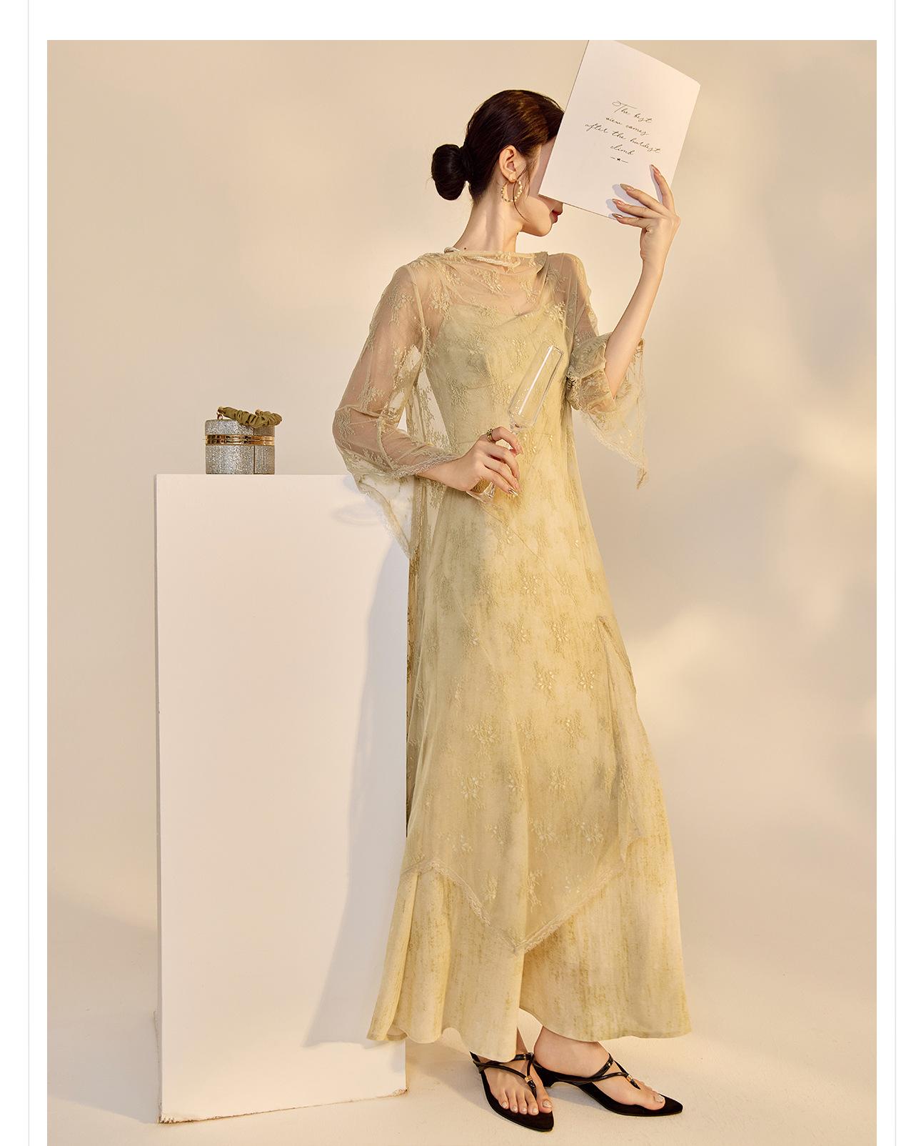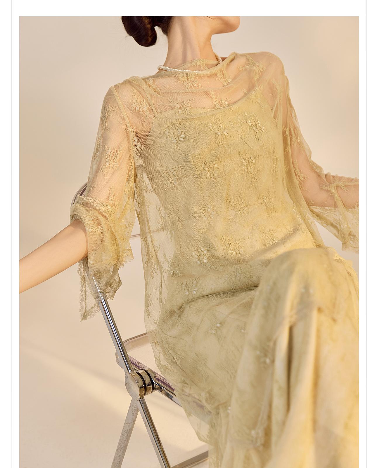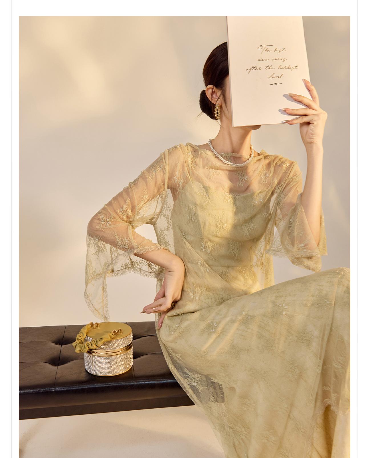 Verano 2025 Estilo Nacional Nuevo Estilo Chino Diseño Elegante de Encaje Temperamento Vestido Largo de Top Conjunto de Dos Piezas N5037