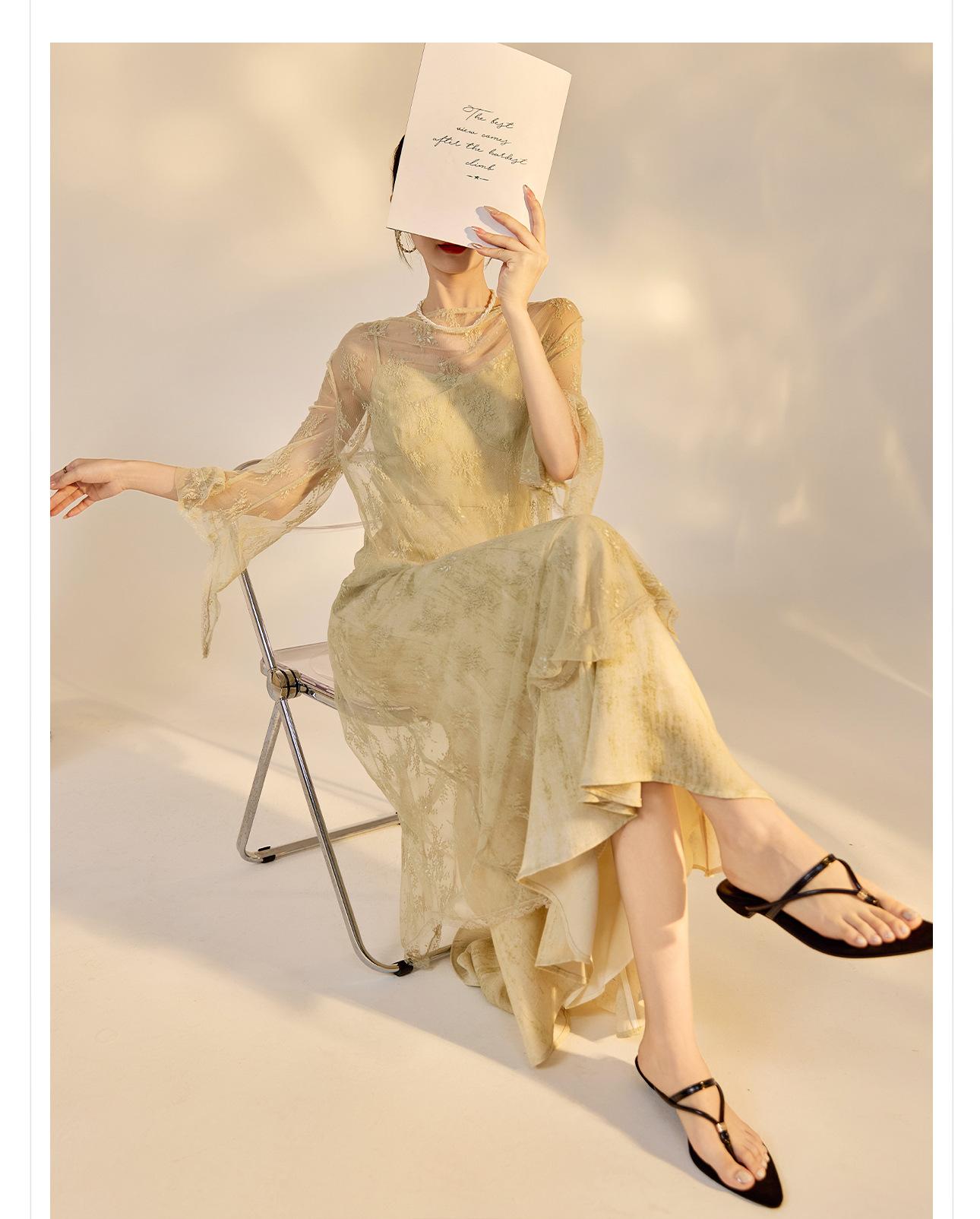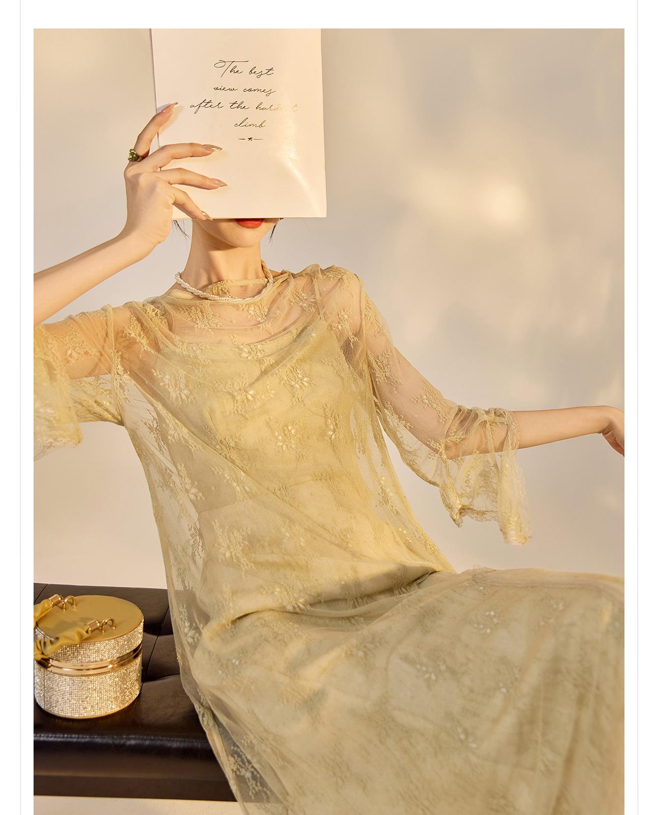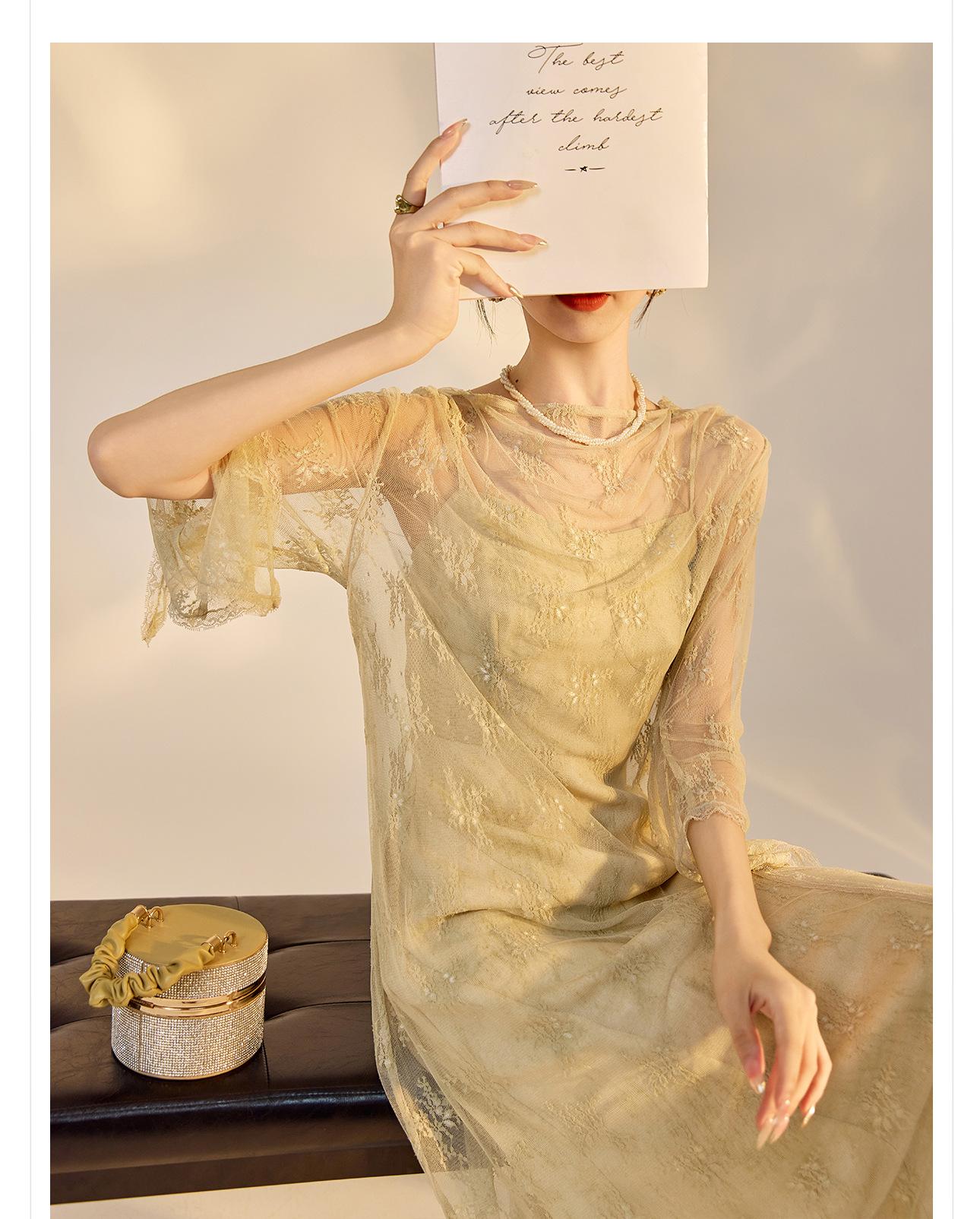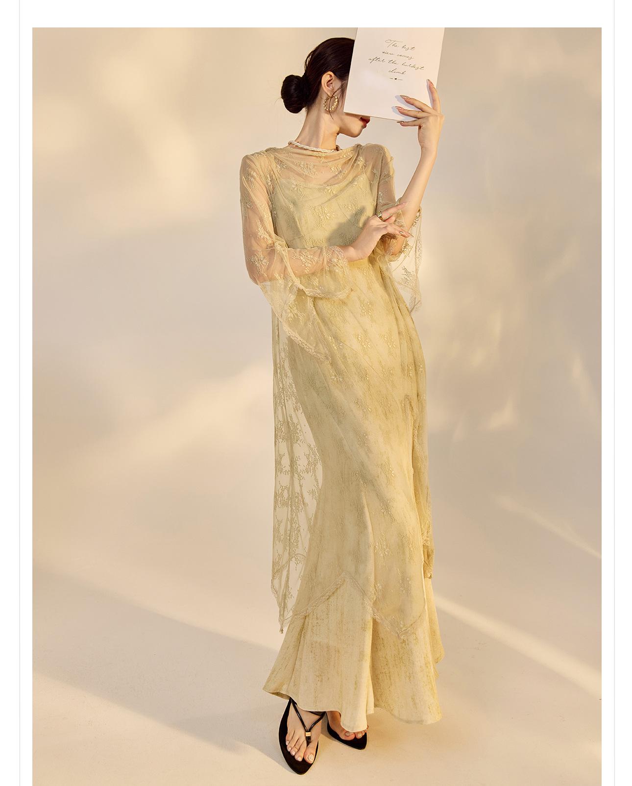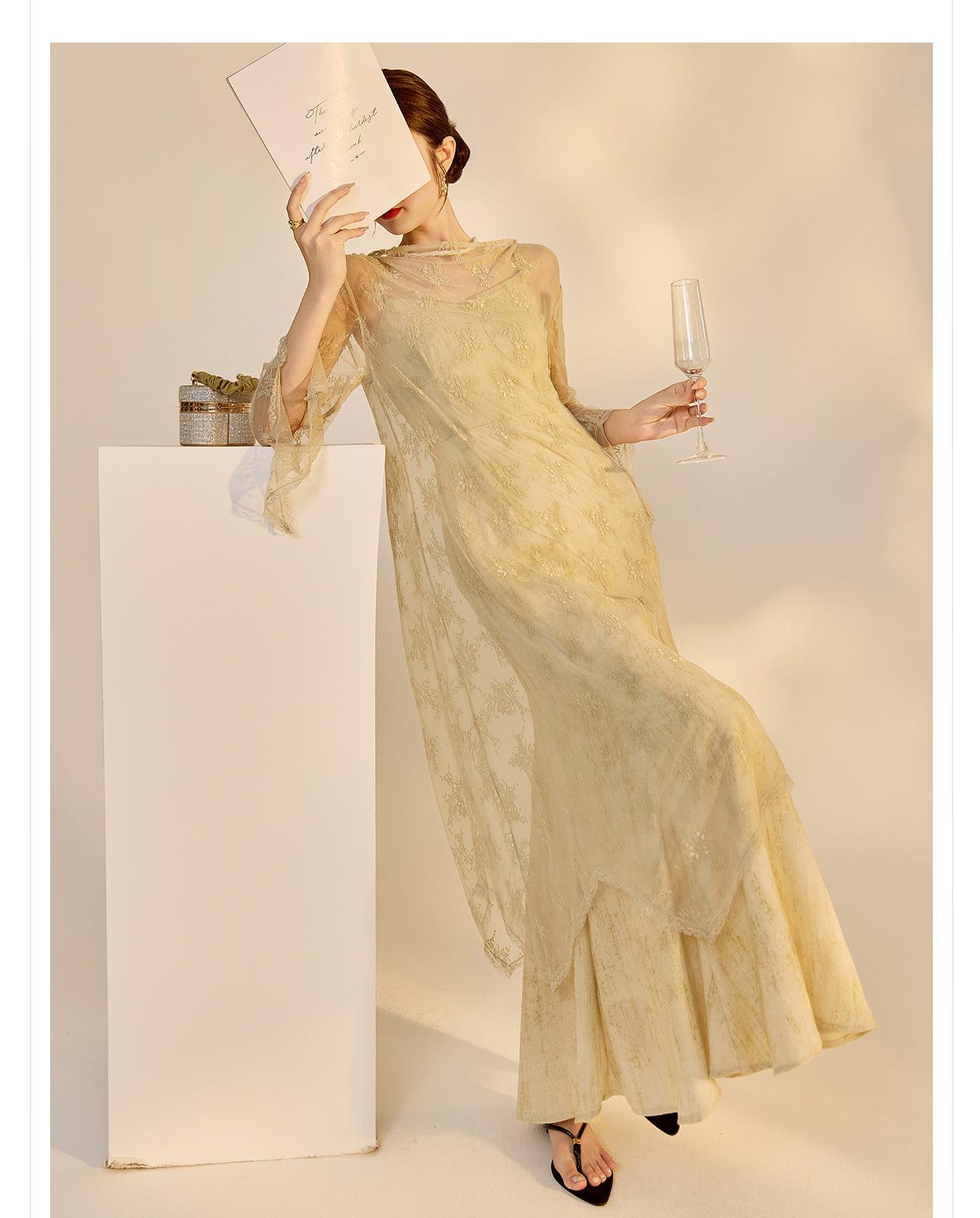 Verano 2025 Estilo Nacional Nuevo Estilo Chino Diseño Elegante de Encaje Temperamento Vestido Largo de Top Conjunto de Dos Piezas N5037