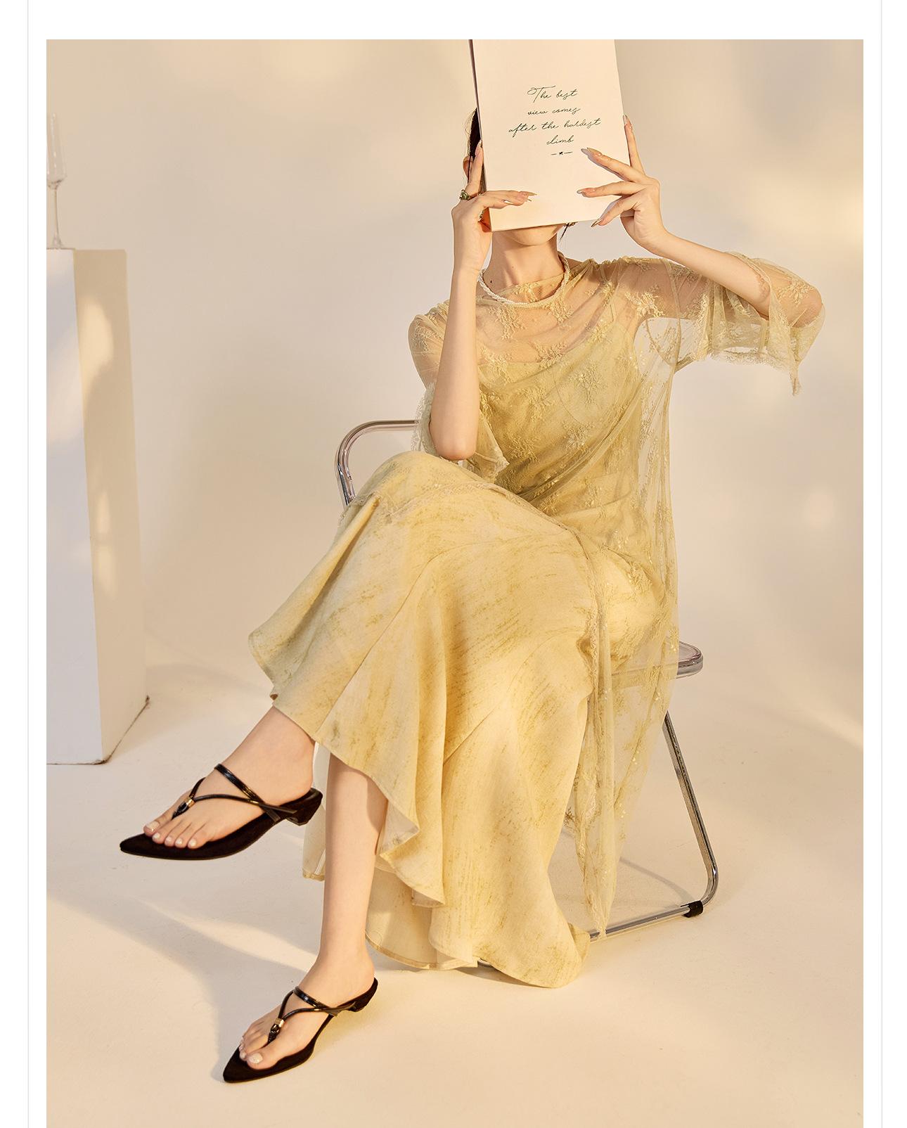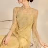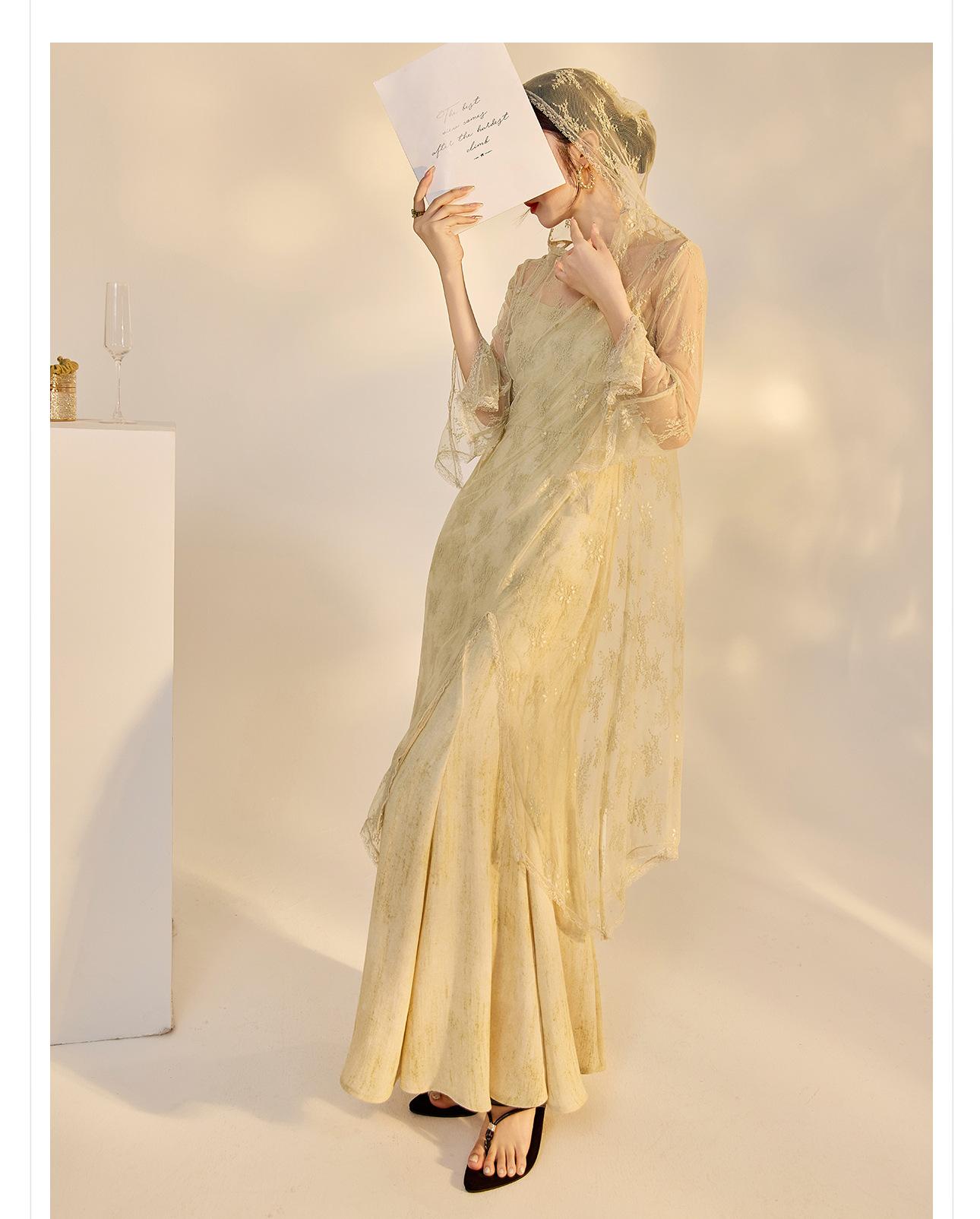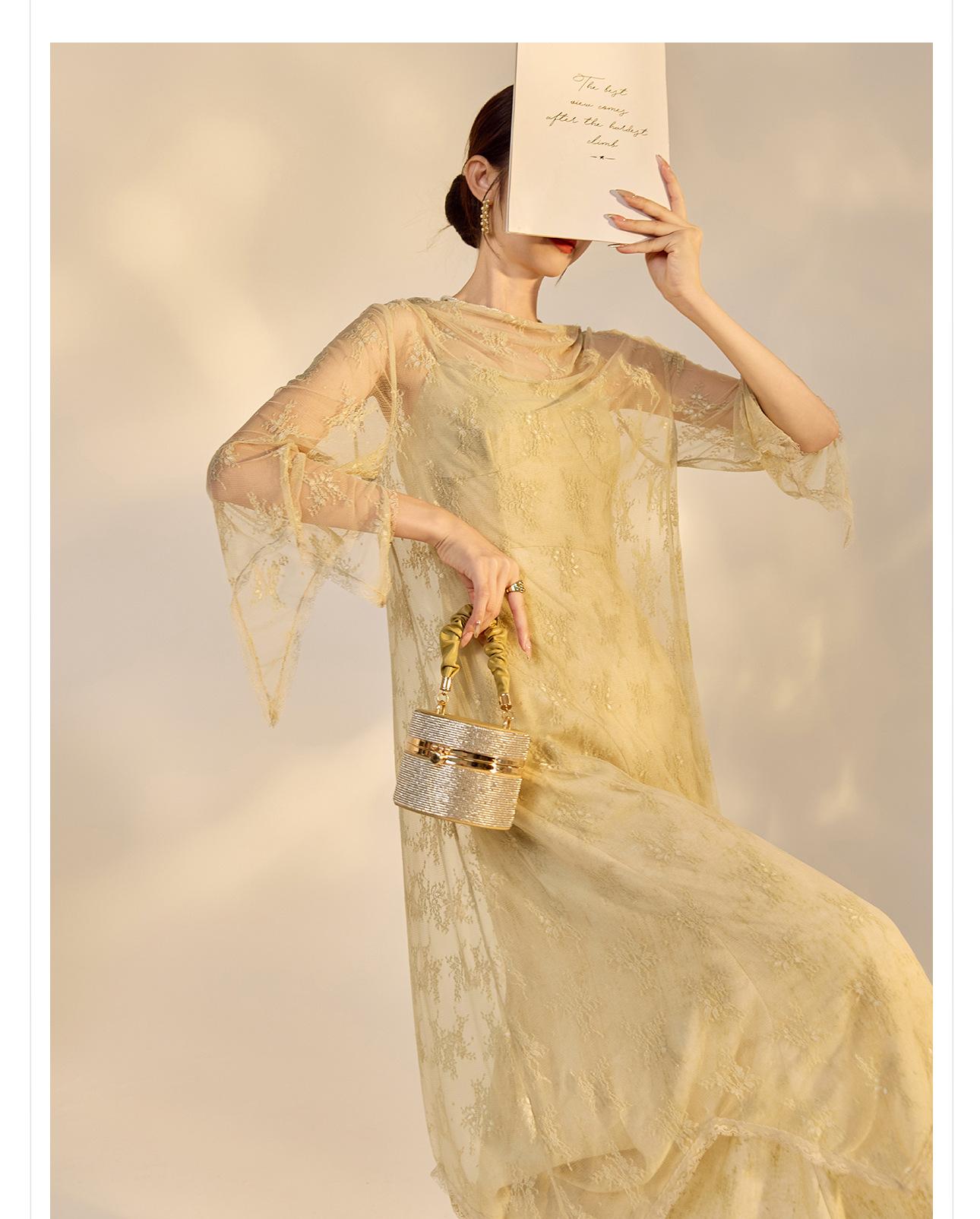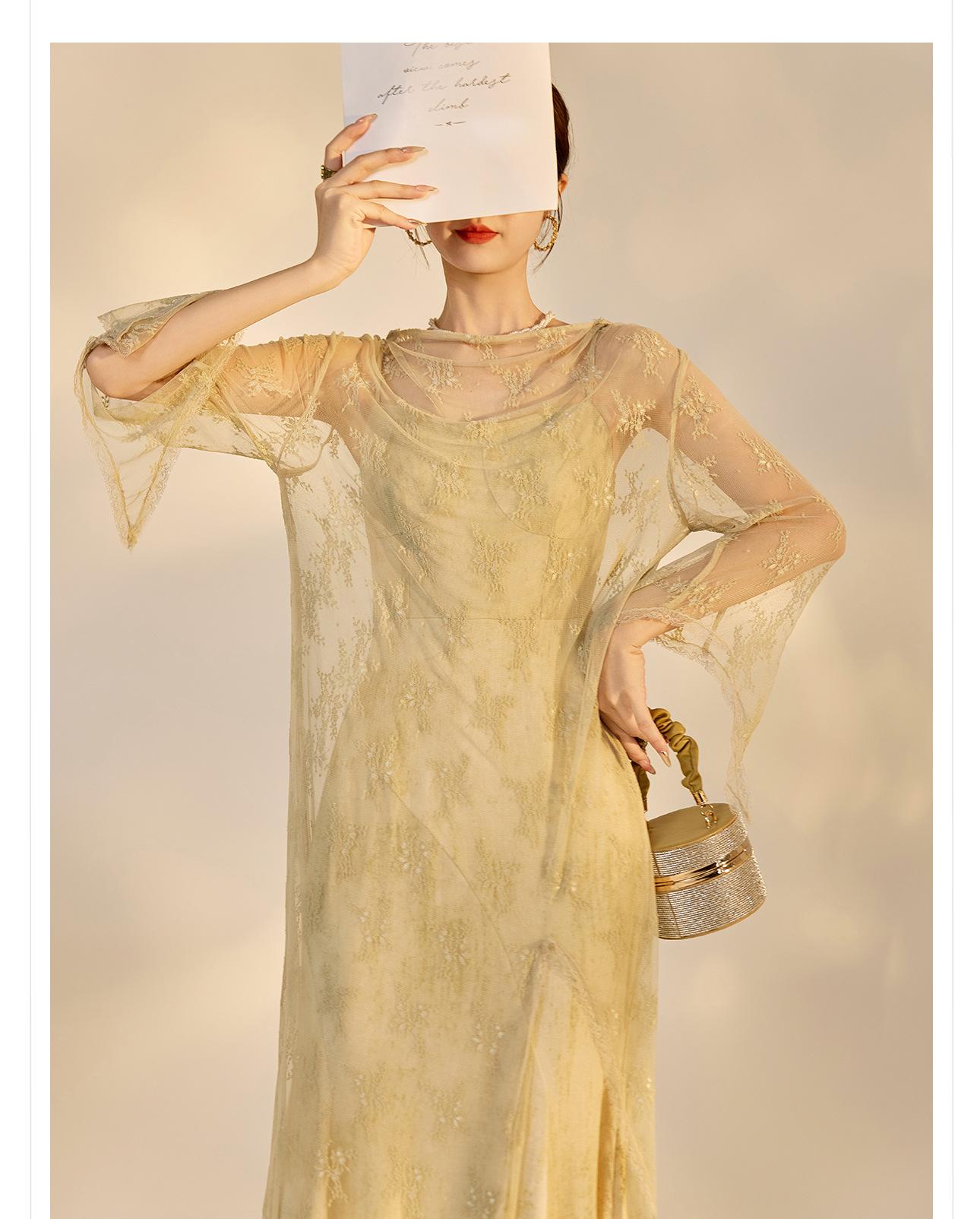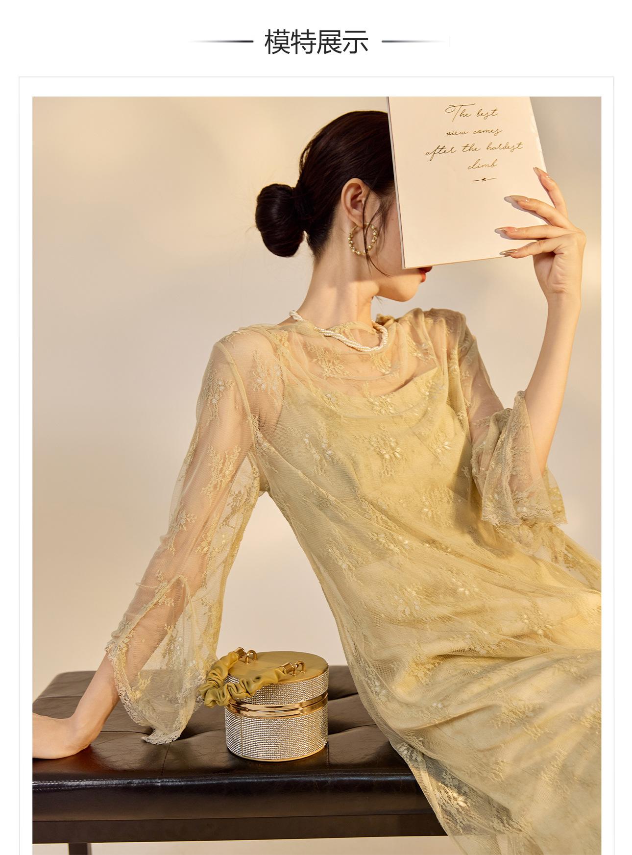 Verano 2025 Estilo Nacional Nuevo Estilo Chino Diseño Elegante de Encaje Temperamento Vestido Largo de Top Conjunto de Dos Piezas N5037