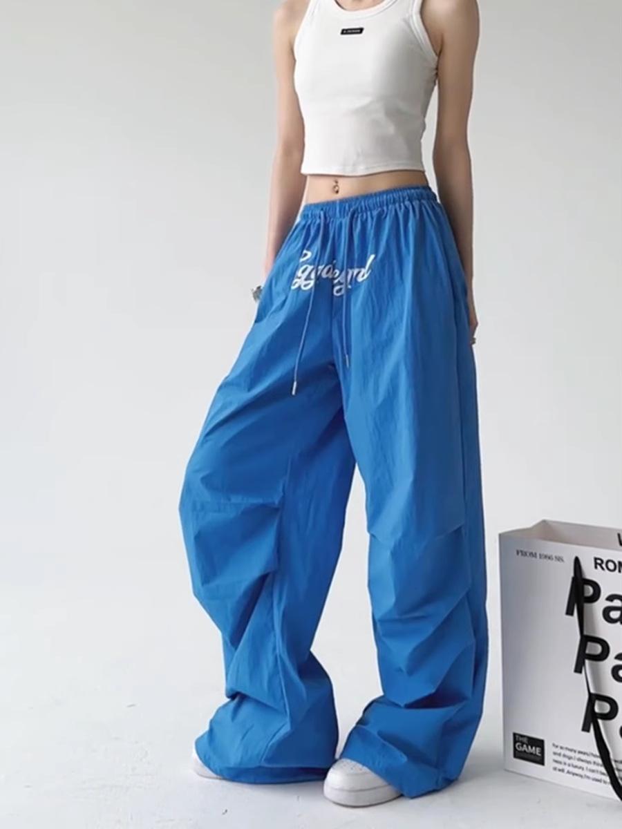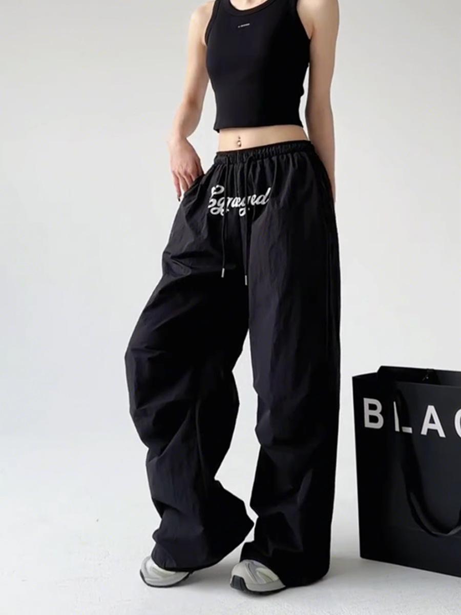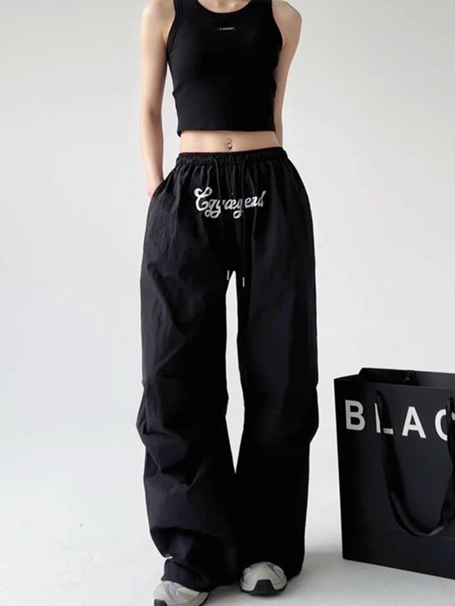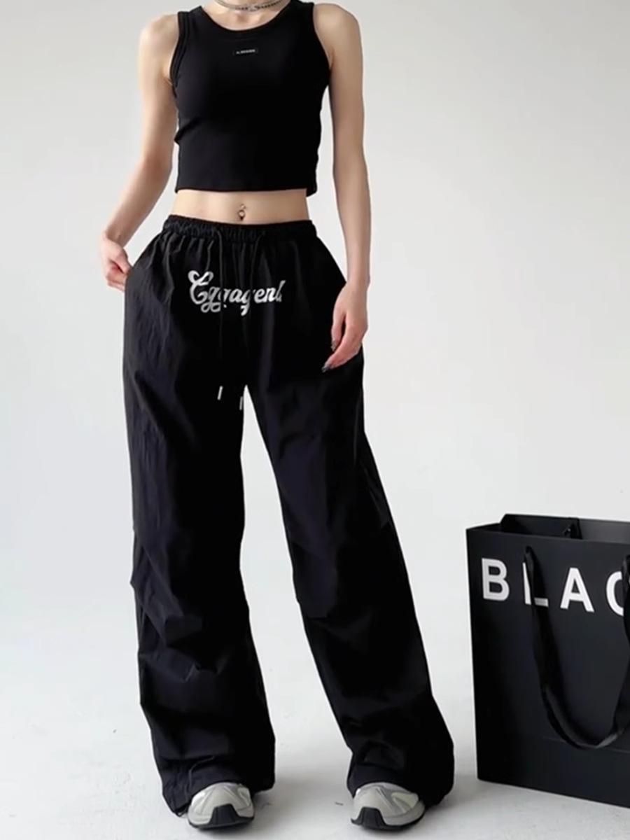 Verano Nuevo Americano Calle Hip Hop Letra Cargo Pantalones Casuales Mujer Sueltos Pierna Ancha Jazz Danza Pantalones Largos