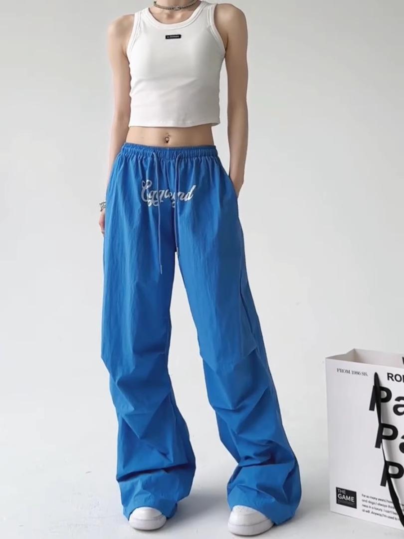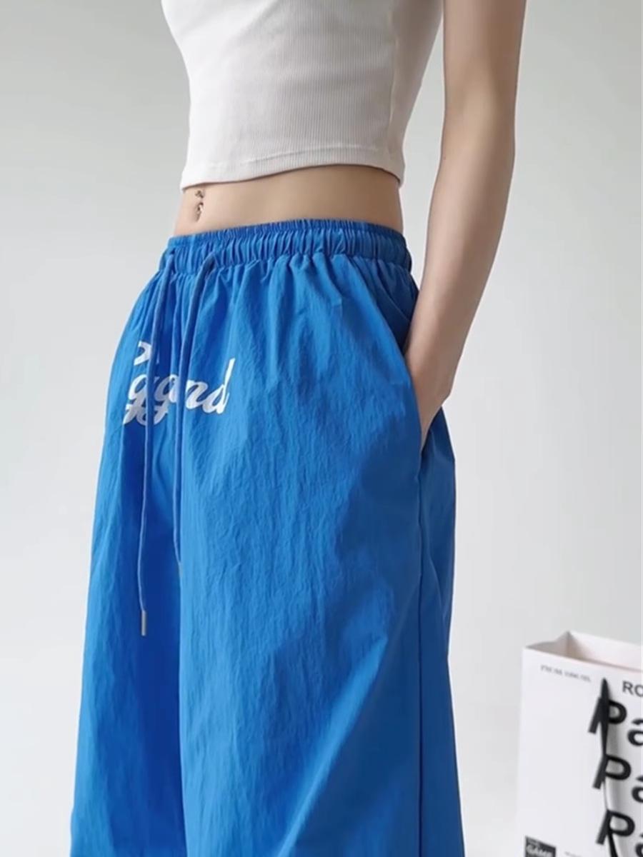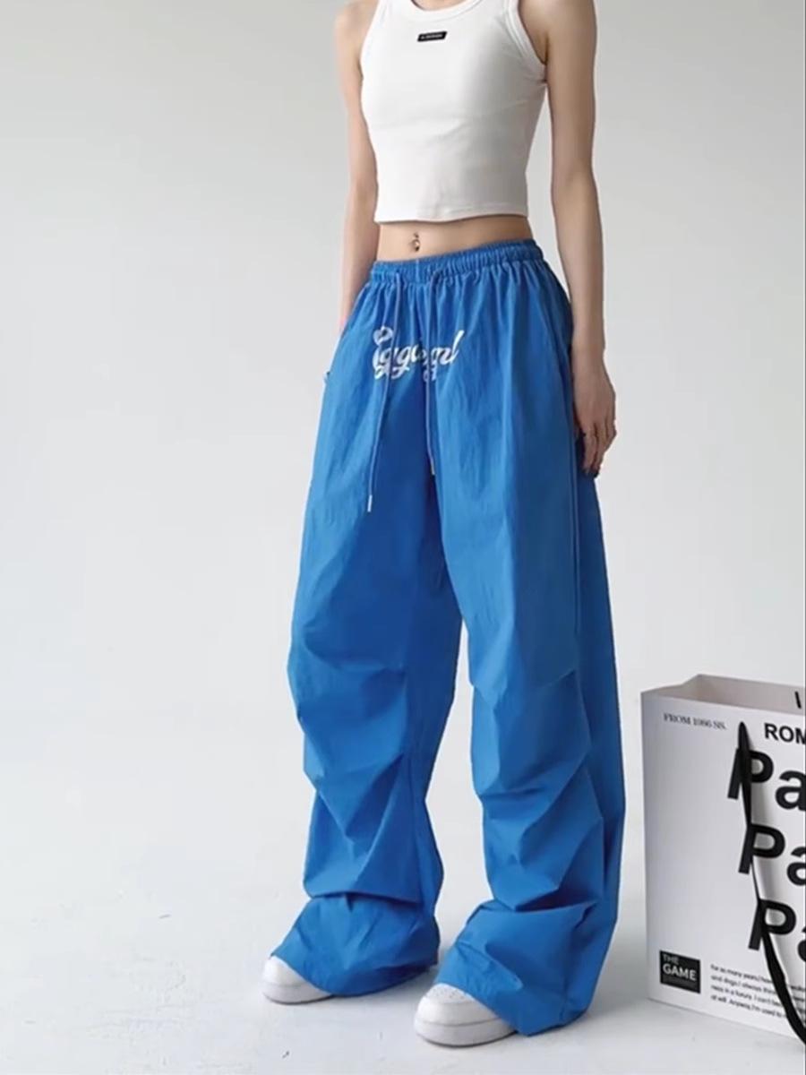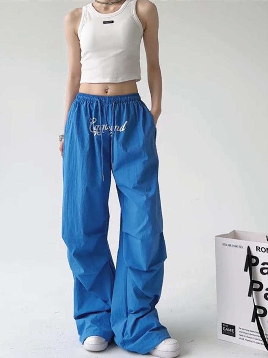 Verano Nuevo Americano Calle Hip Hop Letra Cargo Pantalones Casuales Mujer Sueltos Pierna Ancha Jazz Danza Pantalones Largos