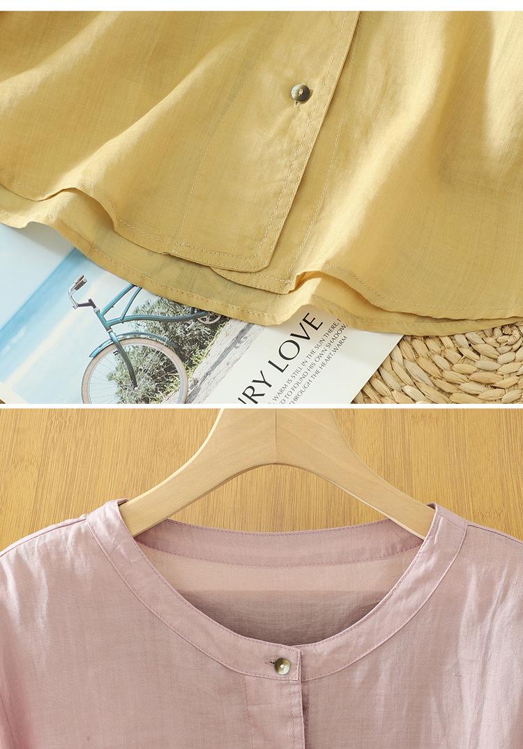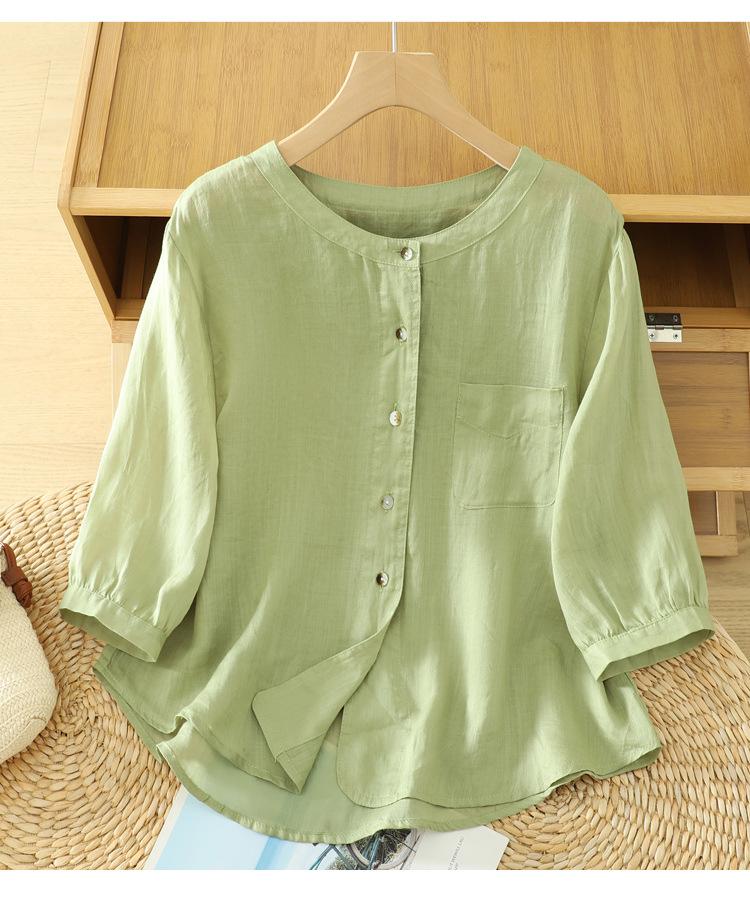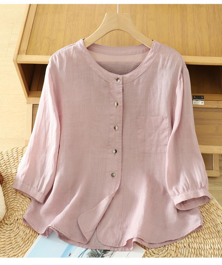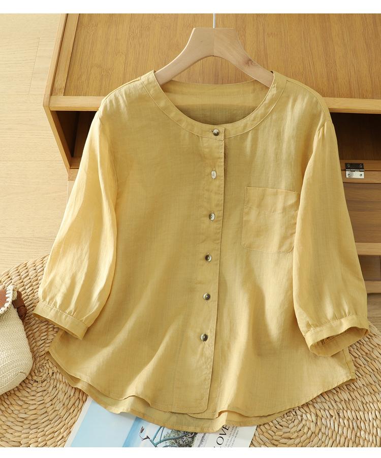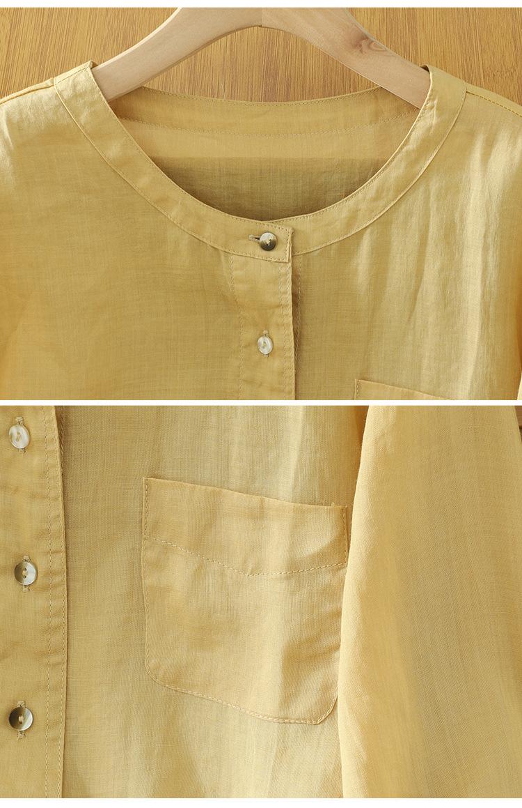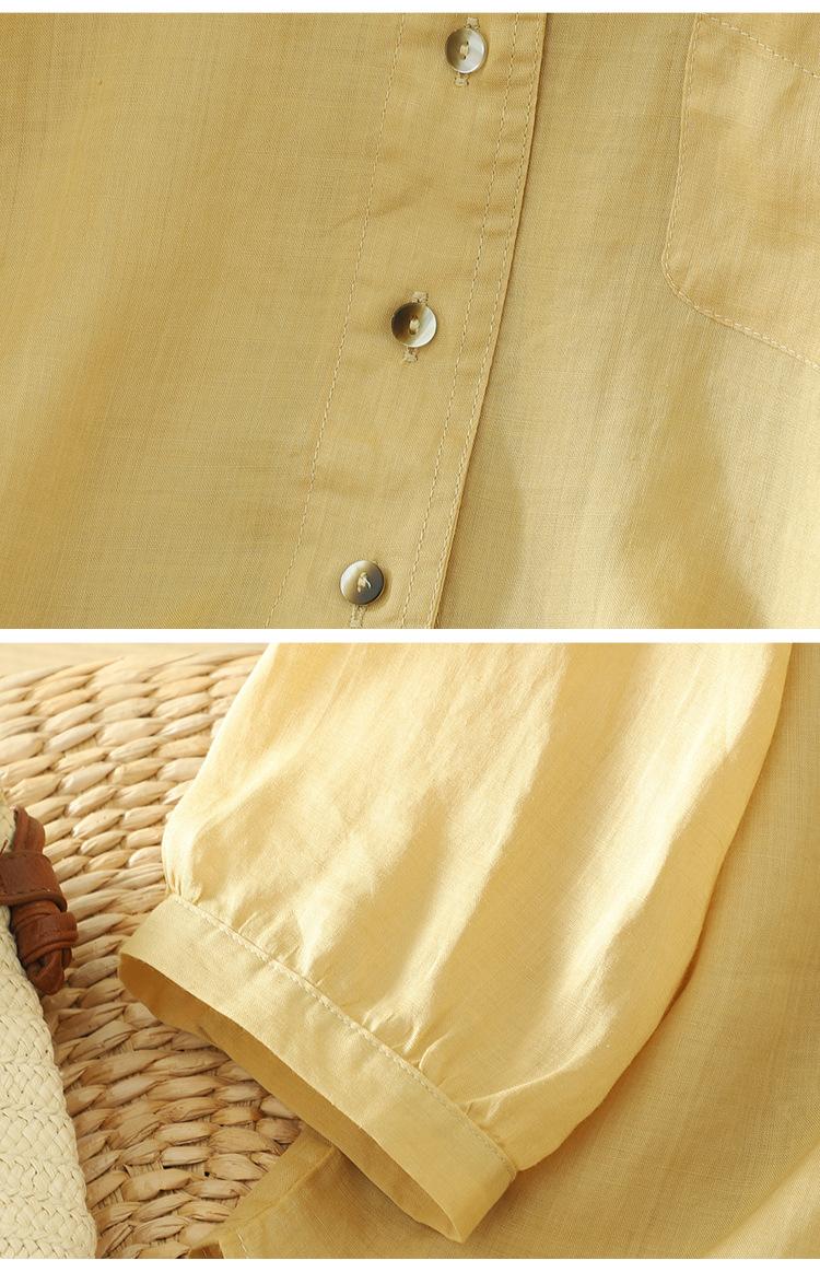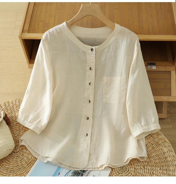 Verano 2025 Color Sólido Corto Nuevo Moderno Casual Versátil Bolsillo Adelgazante Camisa de Mujer