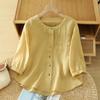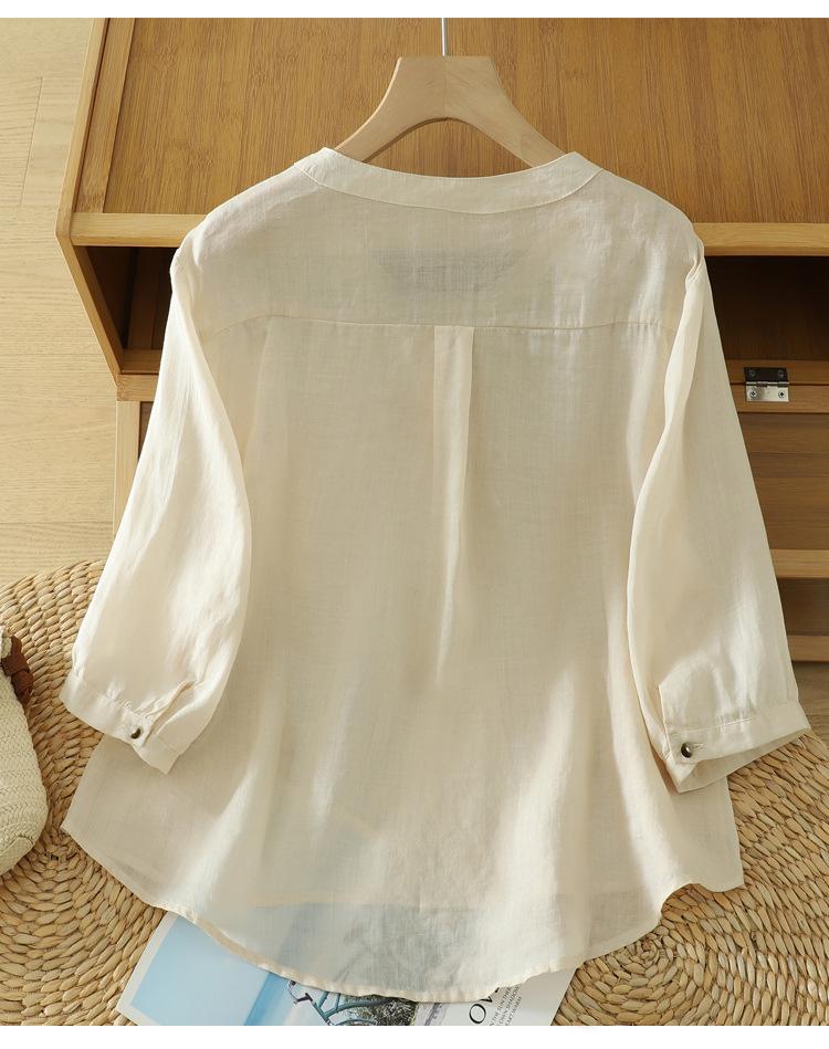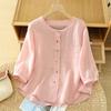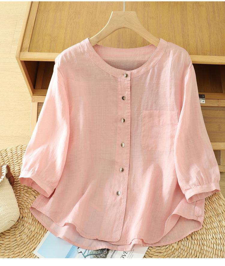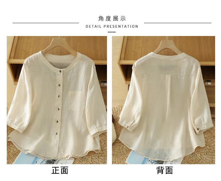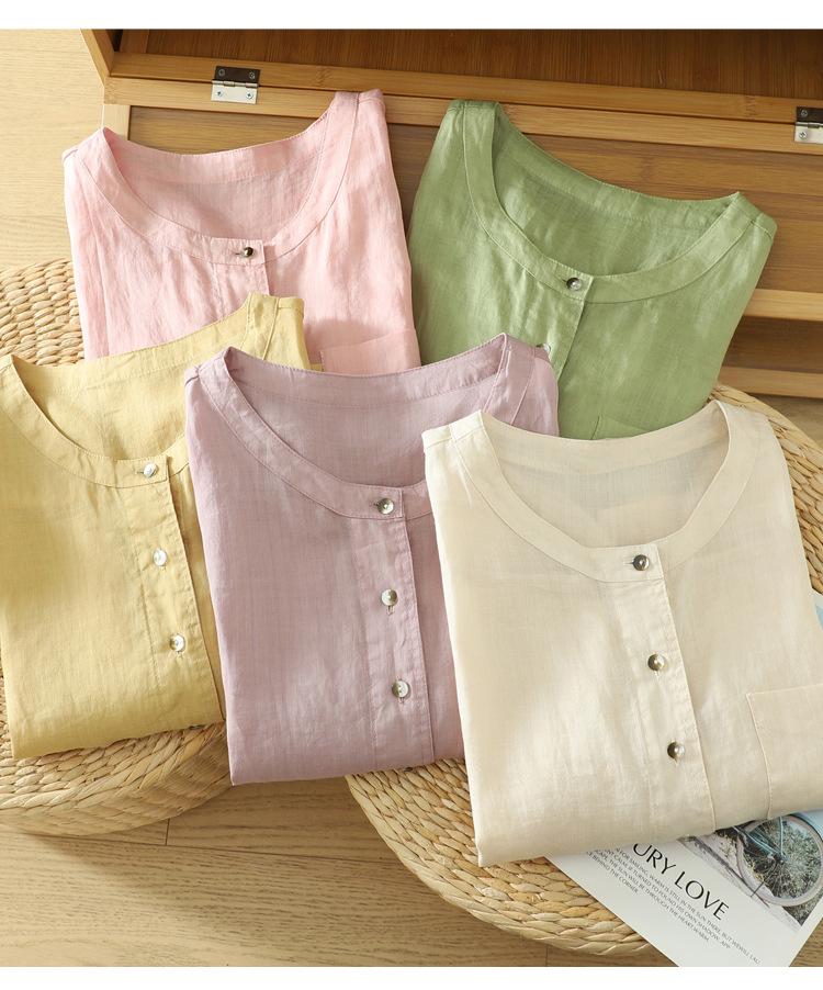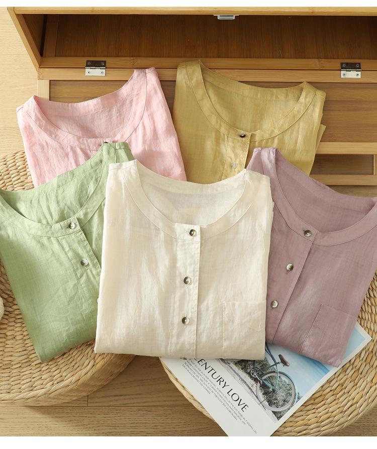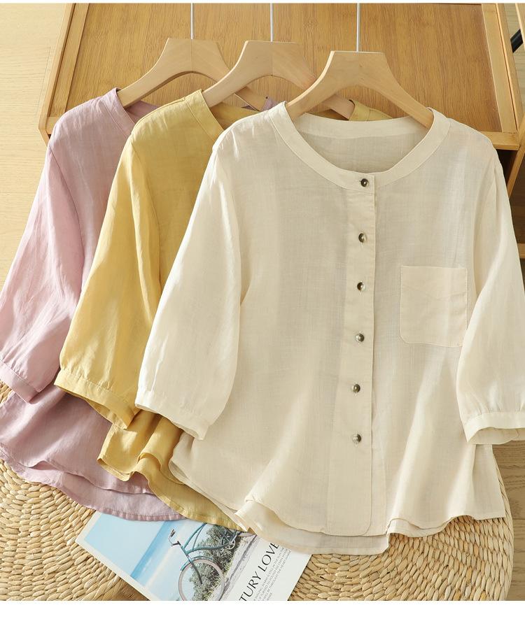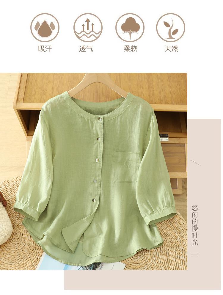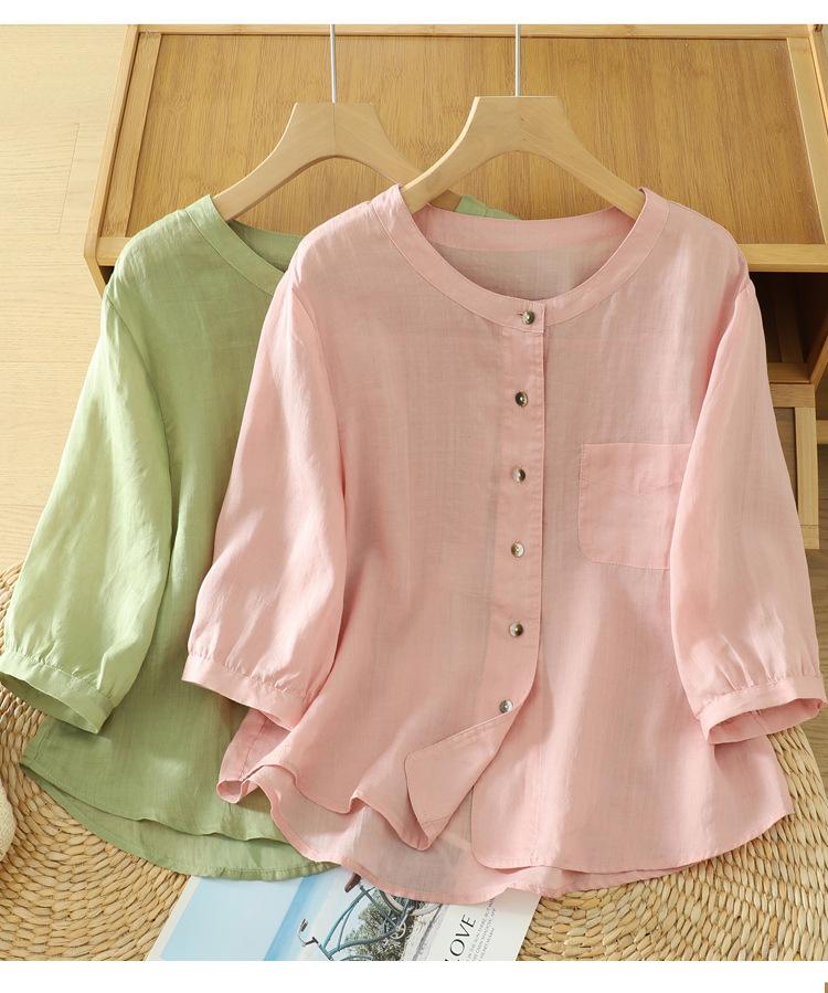 Verano 2025 Color Sólido Corto Nuevo Moderno Casual Versátil Bolsillo Adelgazante Camisa de Mujer